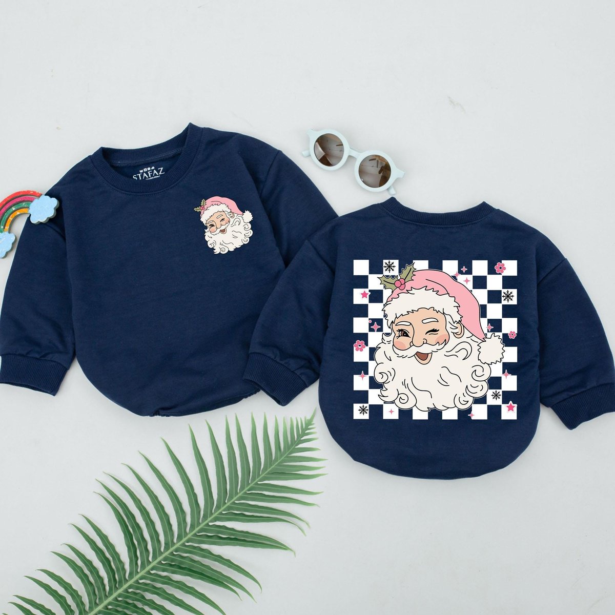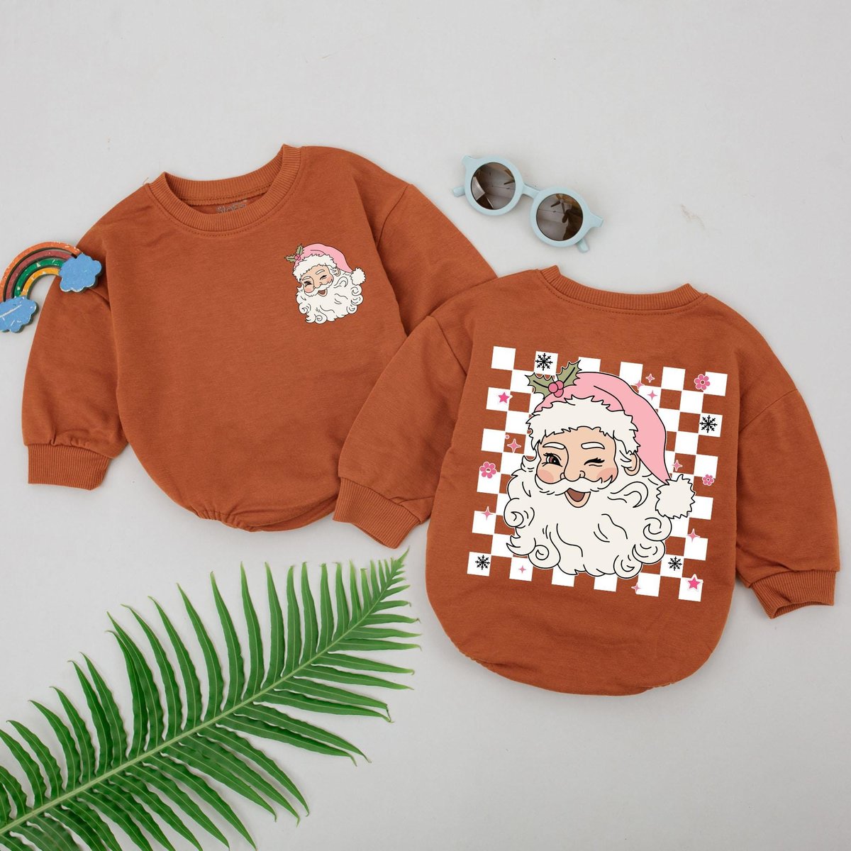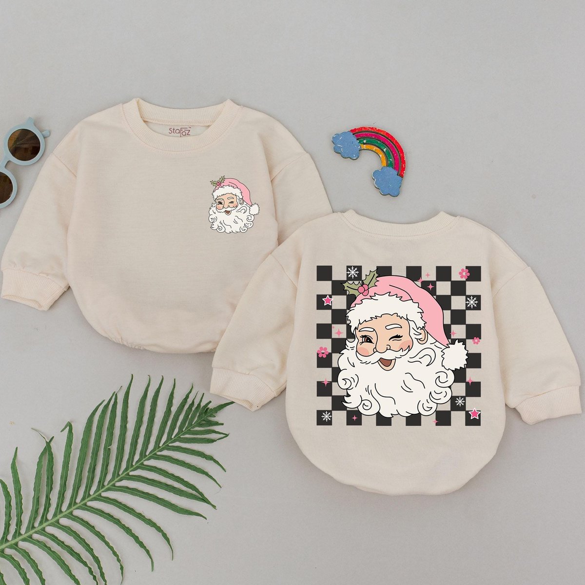 Retro Pink Santa Claus Romper 1st Christmas Santa Romper Baby Shower Gift Christmas Outfit Newborn f