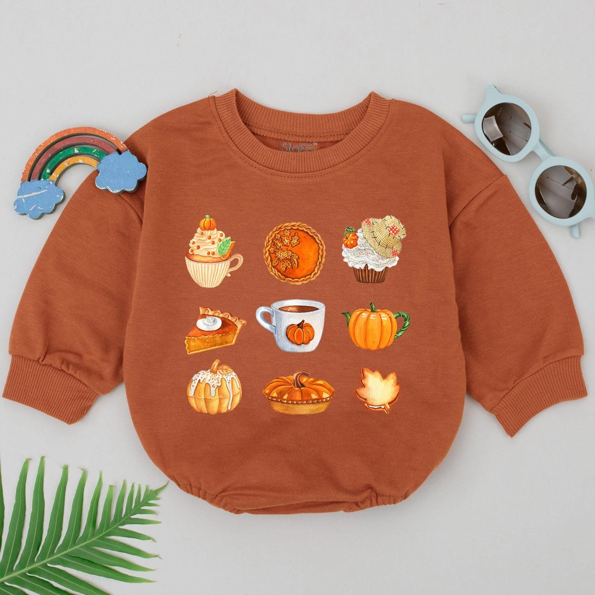 Retro Pumpkin Thanksgiving Romper Fall Baby Outfits Baby Shower Gift Pumpkin Spice Outfit Newborn fo