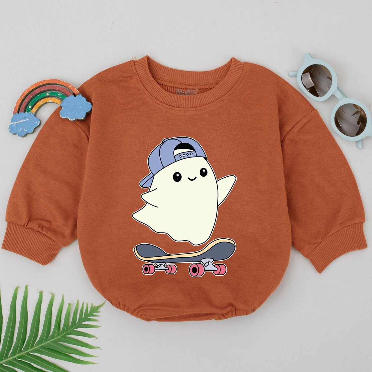 Retro Skateboard Ghost Halloween Romper Ghost Skateboard Bodysuit Sport Ghost 1st Halloween Romper B