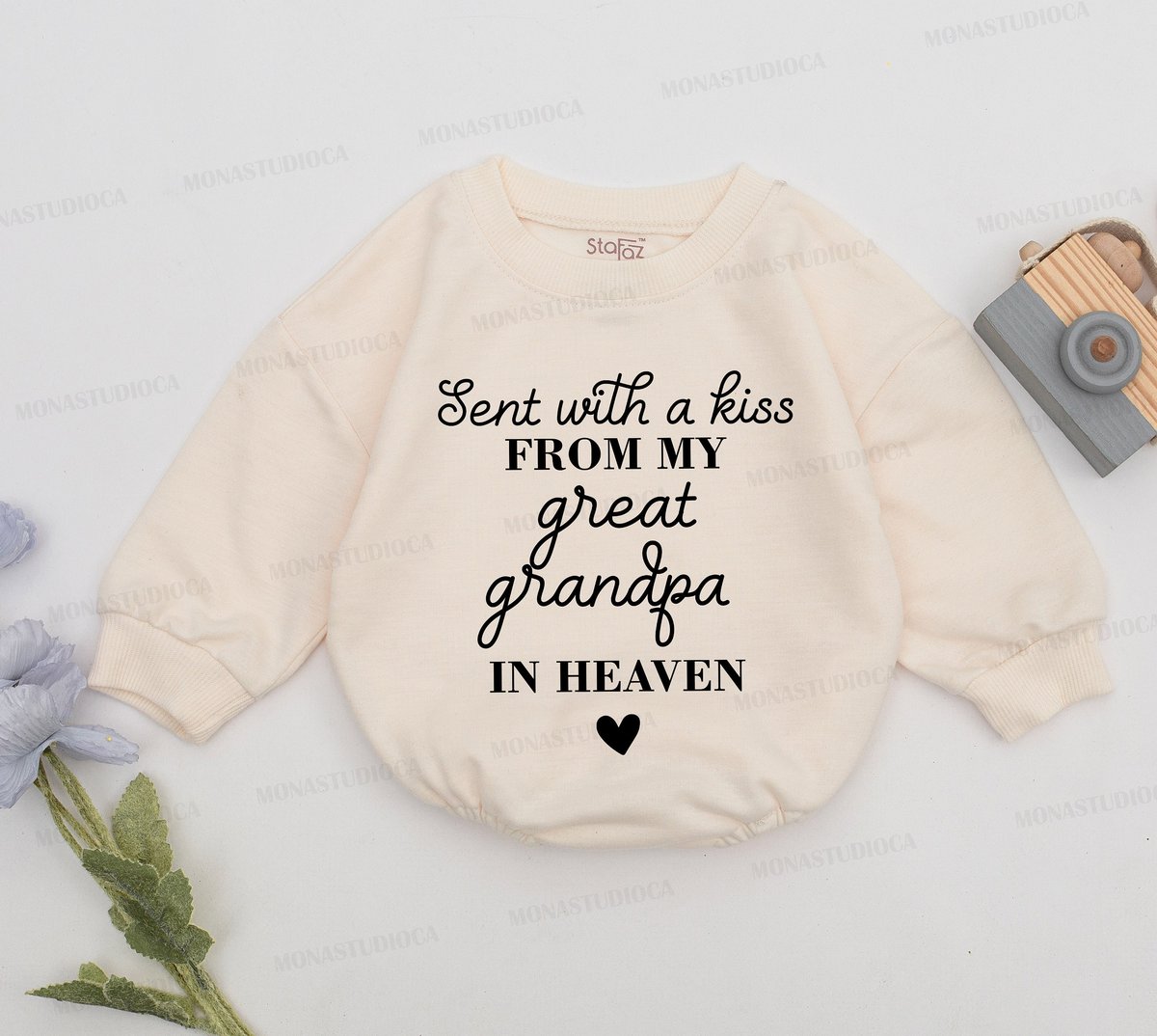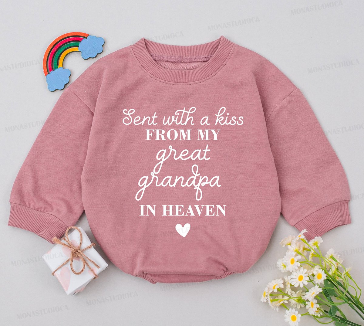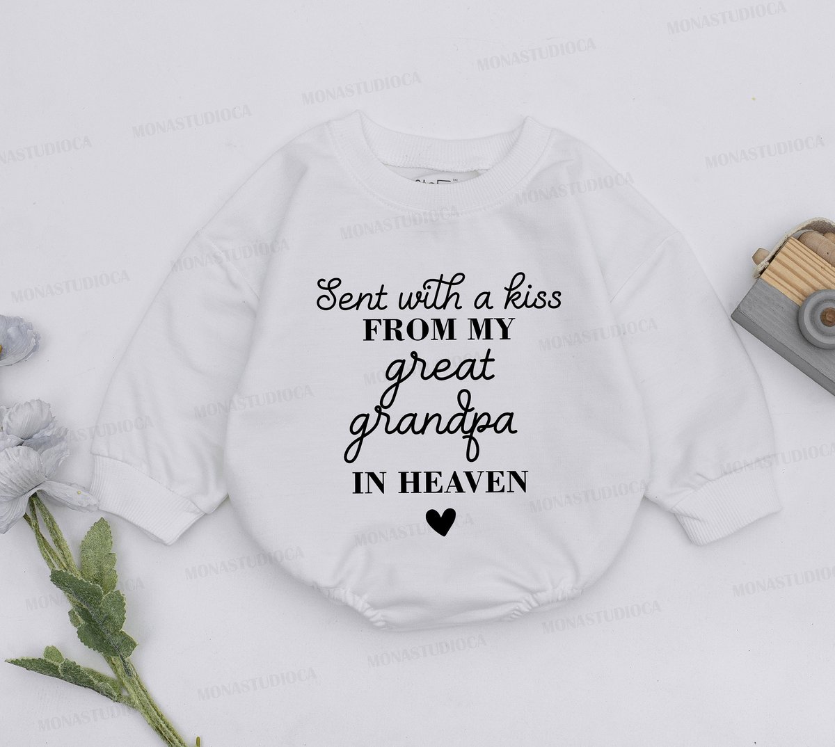 Sent with a Kiss from my Great Grandpa in Heaven Romper Baby Shower Gift Handpicked By Great Grandpa