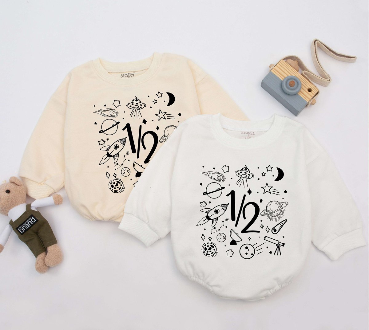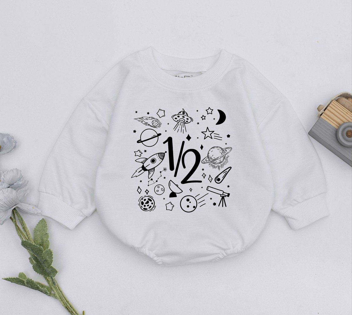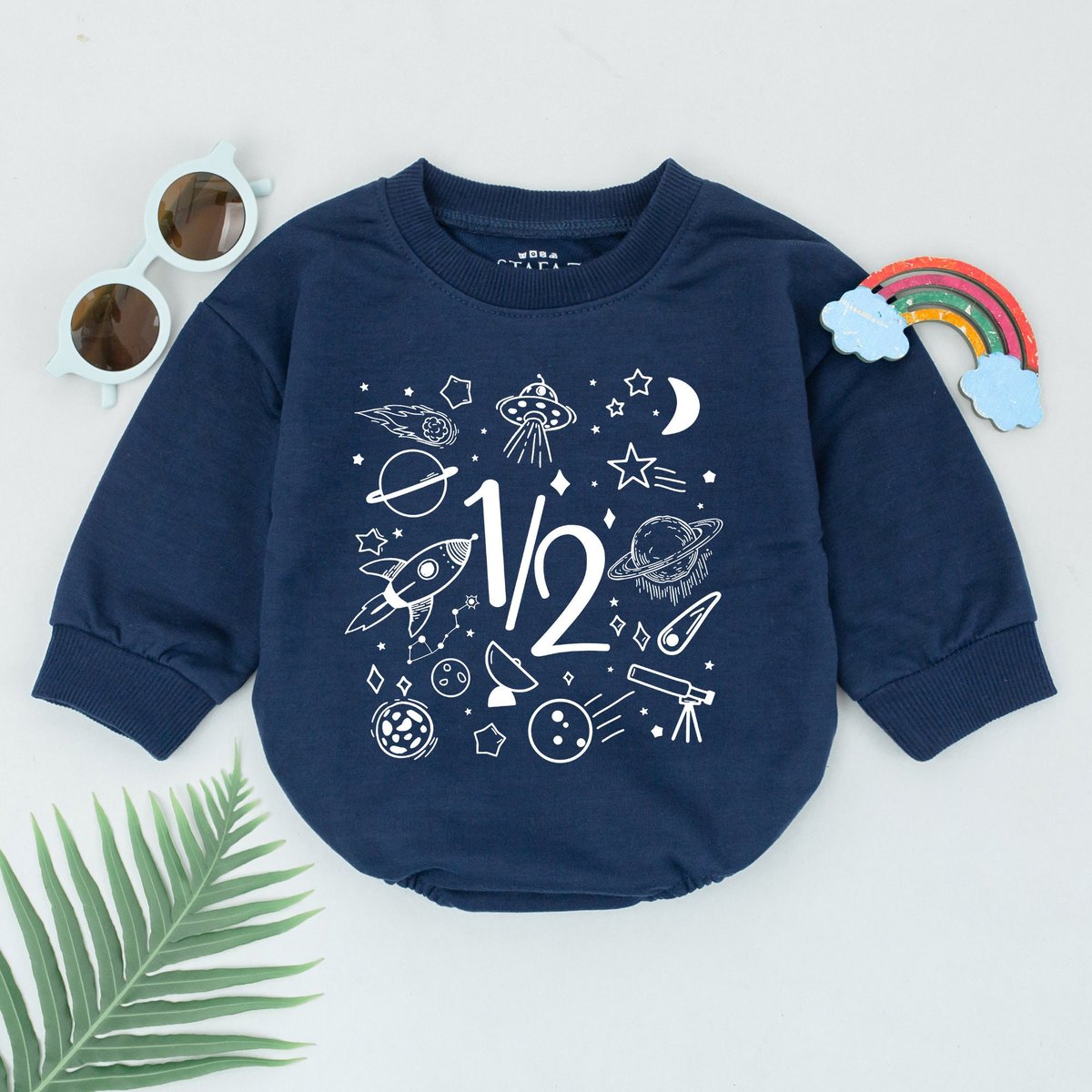 Space Half Birthday Boy Romper Half Way To One Romper 6 Months Birthday Gift 12 Birthday Outfit Newb