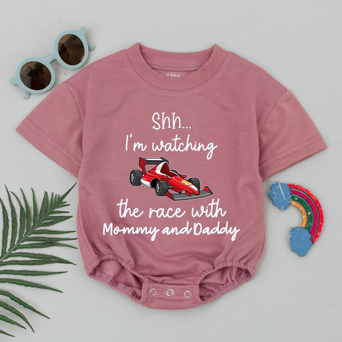 Watching the Race with Mommy and Daddy Romper Funny Racing Baby Bodysuit Baby Boy Girl Race Car Outf