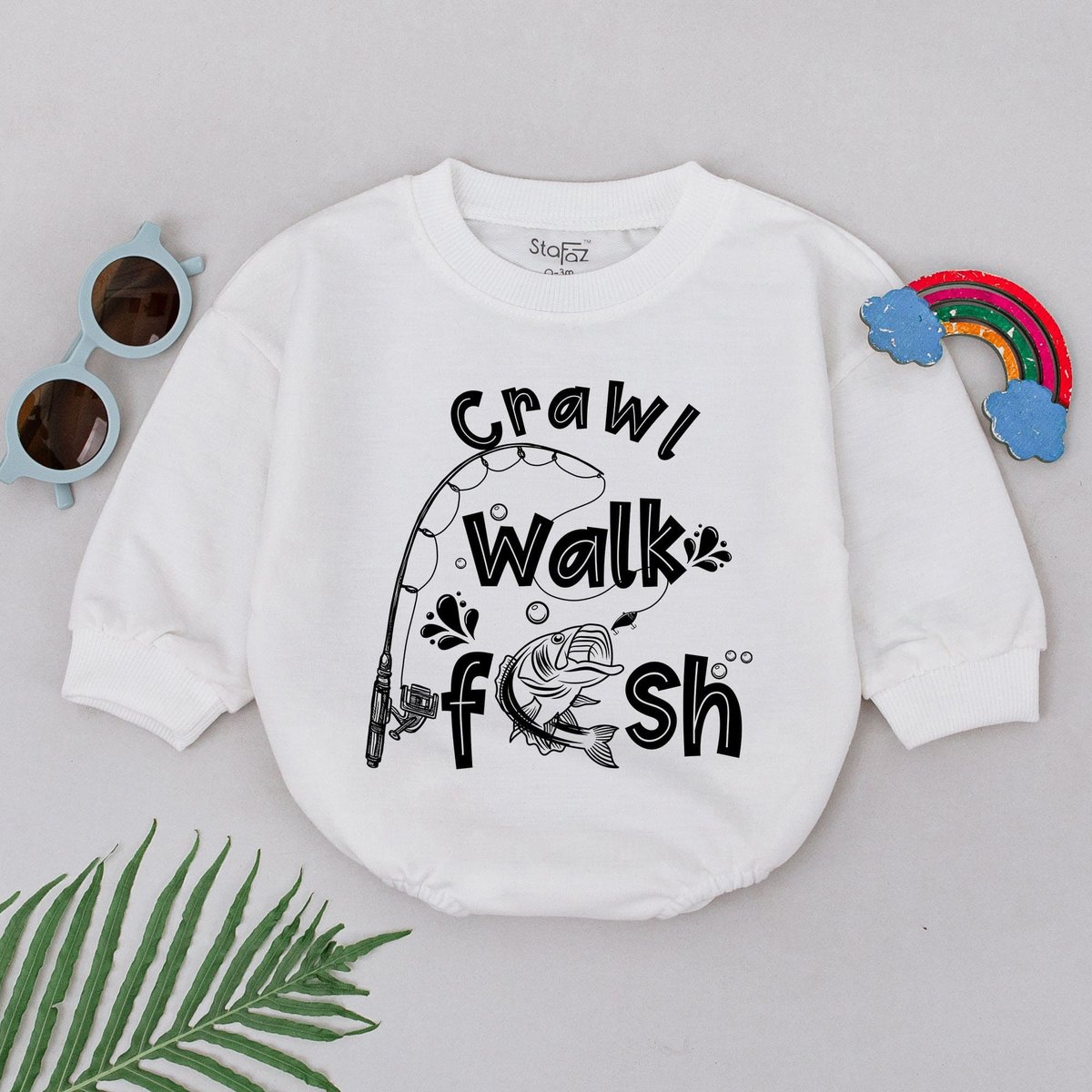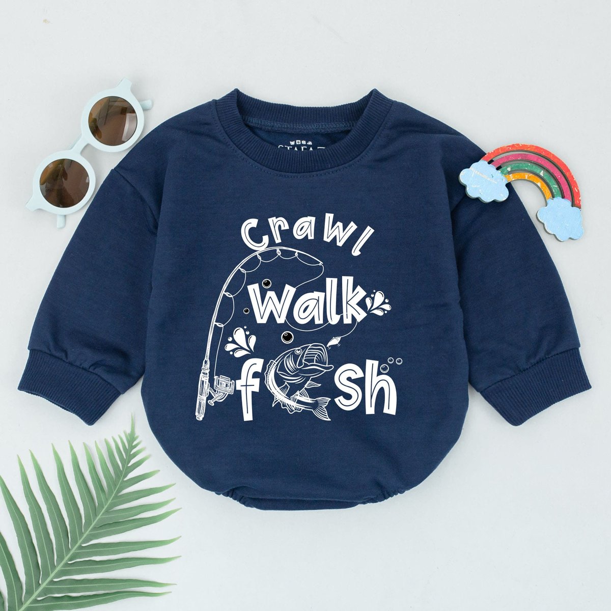 Crawl Walk Fish Romper Little Fishing Buddy Baby Romper Fish Baby Bodysuit Natural Baby Shower Gift