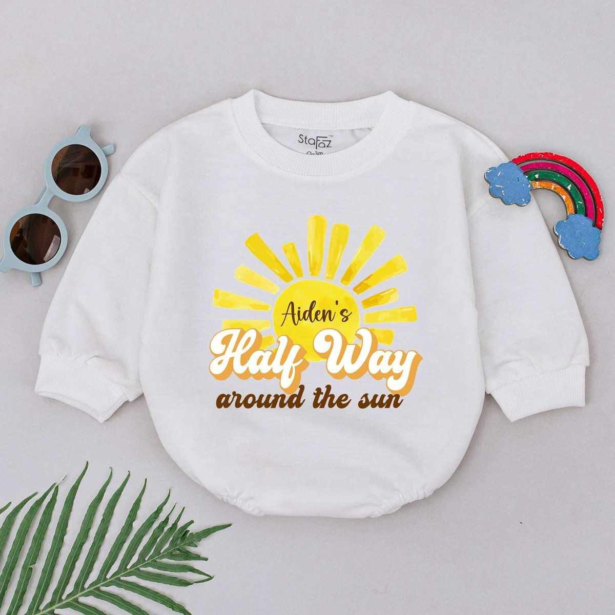 Half Way Around The Sun Romper Half Birthday Romper 6 Months Birthday Gift Natural Birthday Outfit N