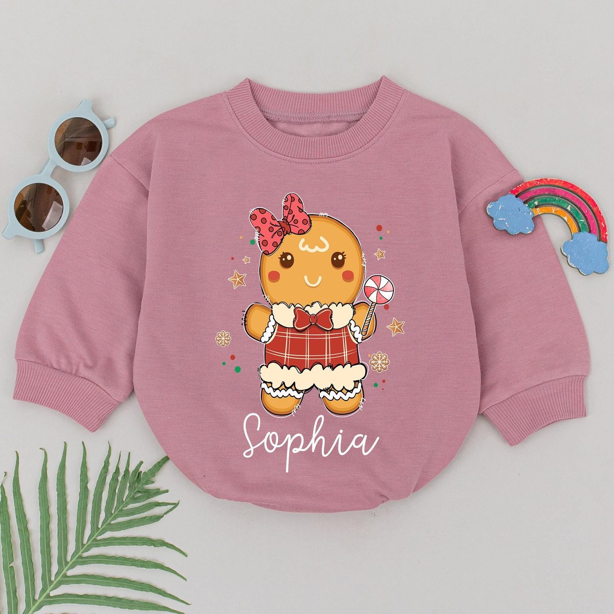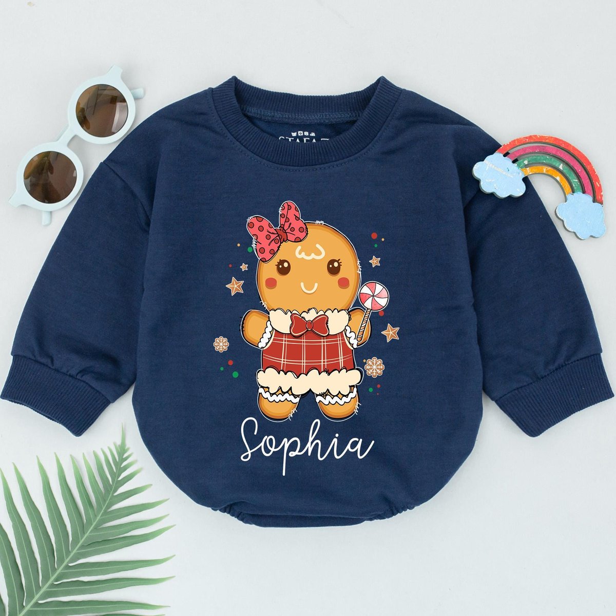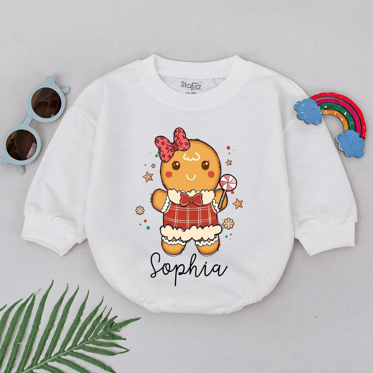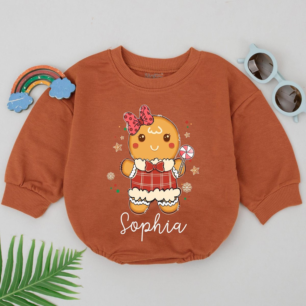 Personalized Name Christmas Romper Gingerbread Christmas Outfits 1st Christmas Romper New Baby Gift