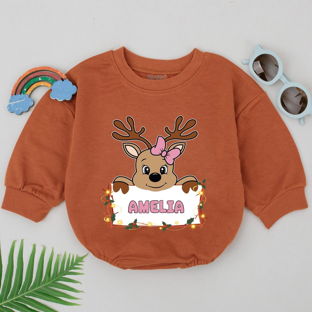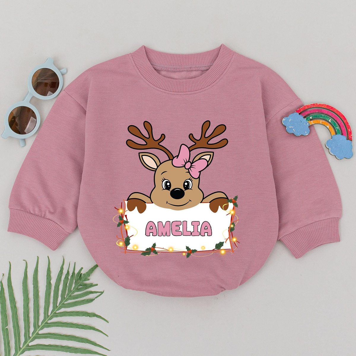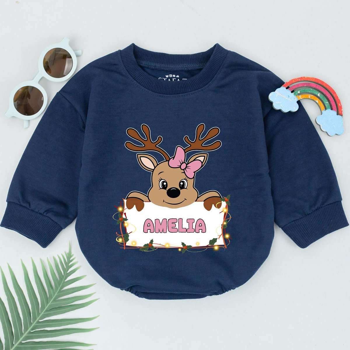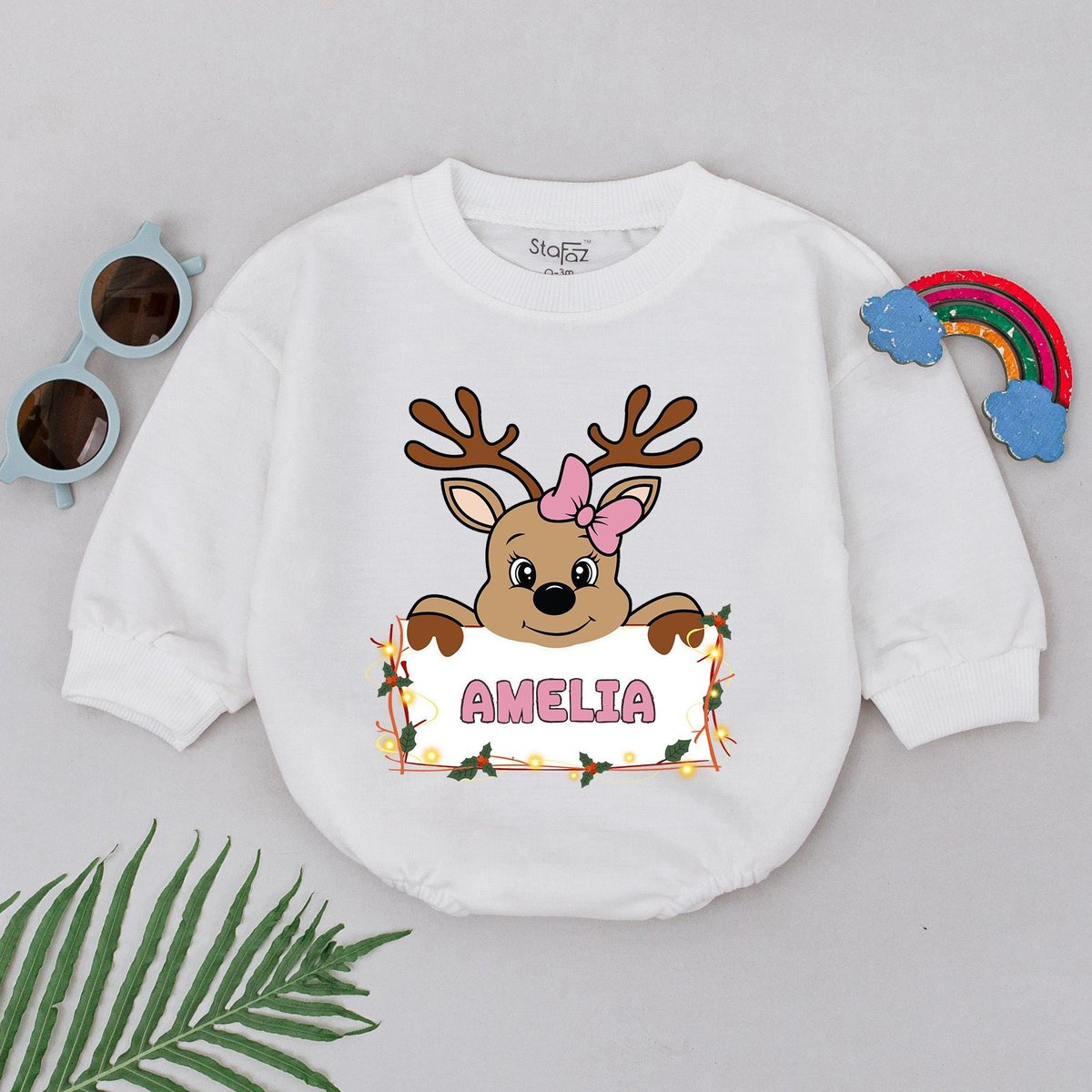 Personalized Name Reindeer Romper 1st Christmas Reindeer Baby Romper Baby Shower Gift Christmas Outf