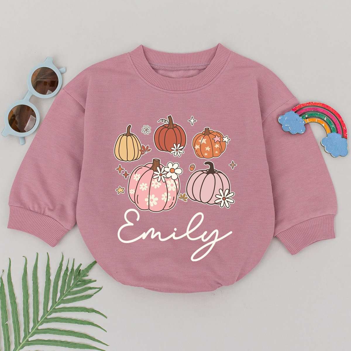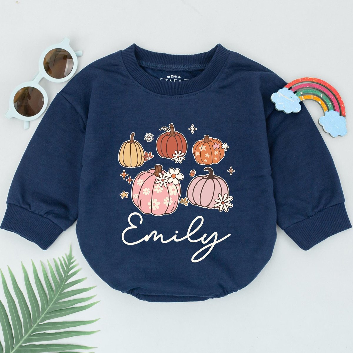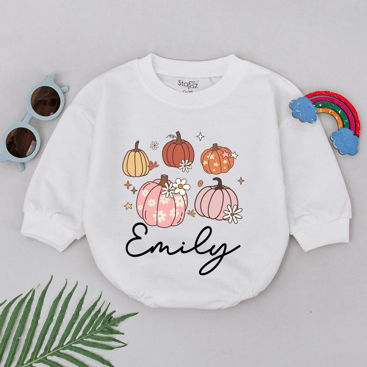 Personalized Retro Pumpkin Romper Custom Name Fall Outfits Baby Shower Gift Pumpkin Spice Outfit New