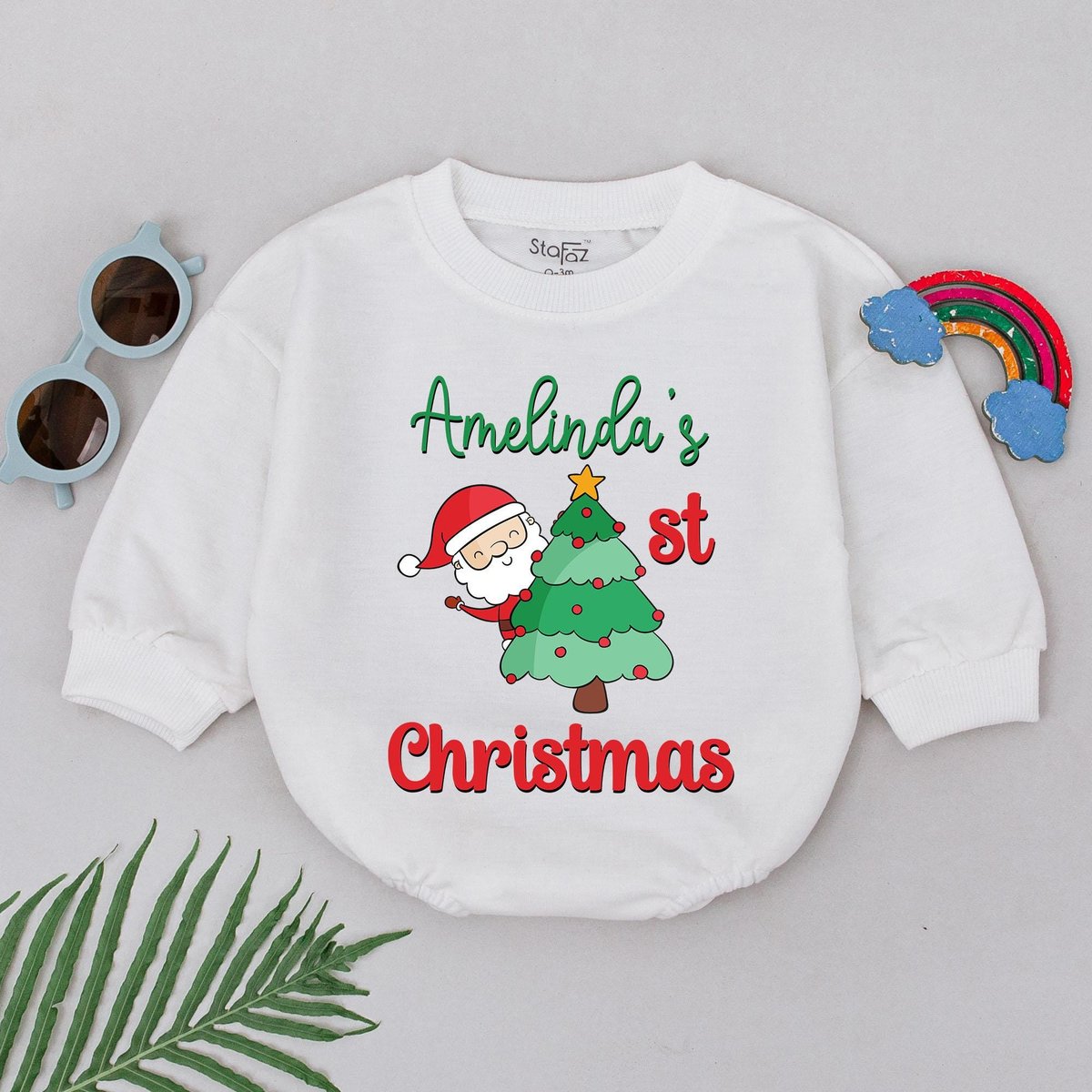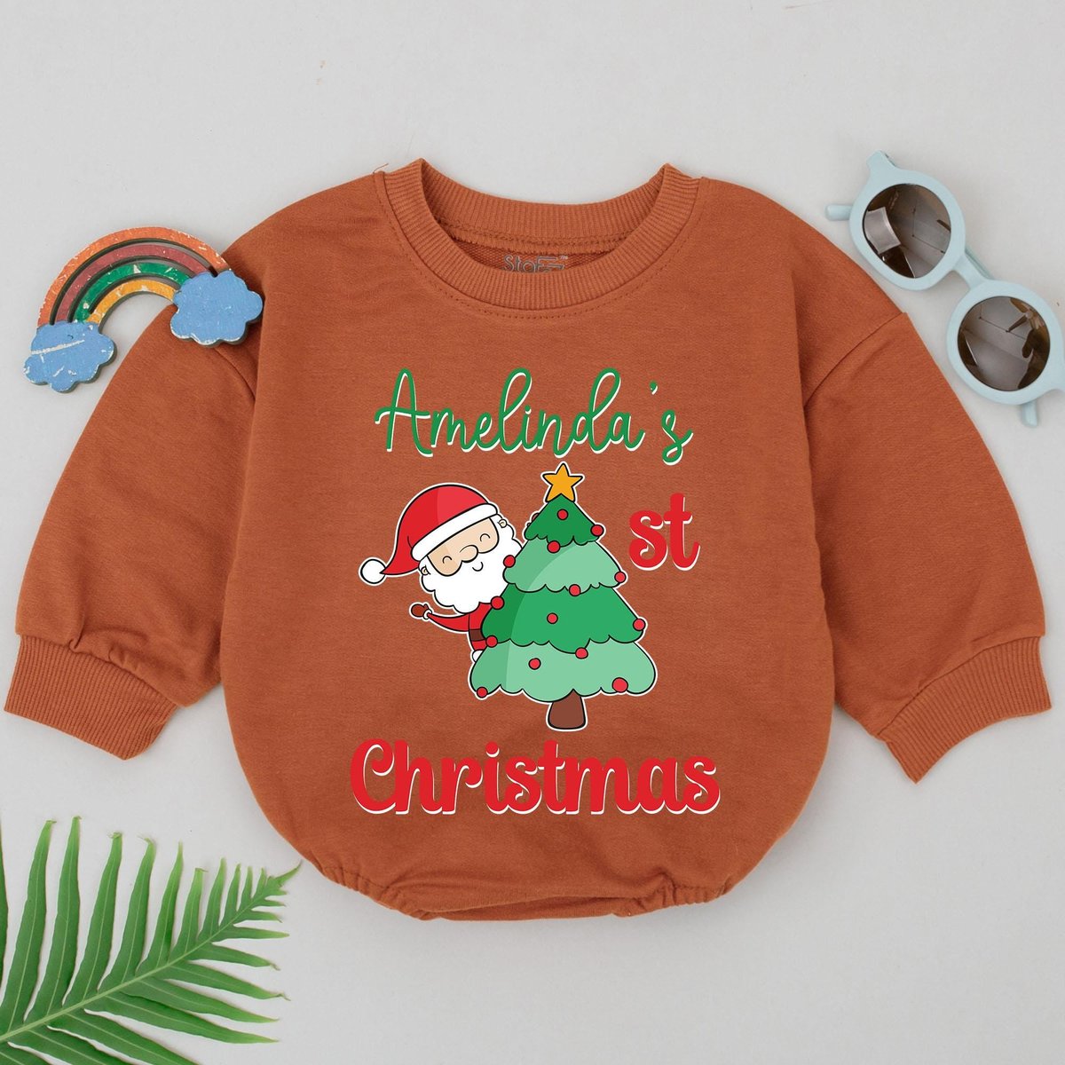 Personalized Name Christmas Romper 1st Christmas Baby Romper Baby Shower Gift Christmas Outfits Newb