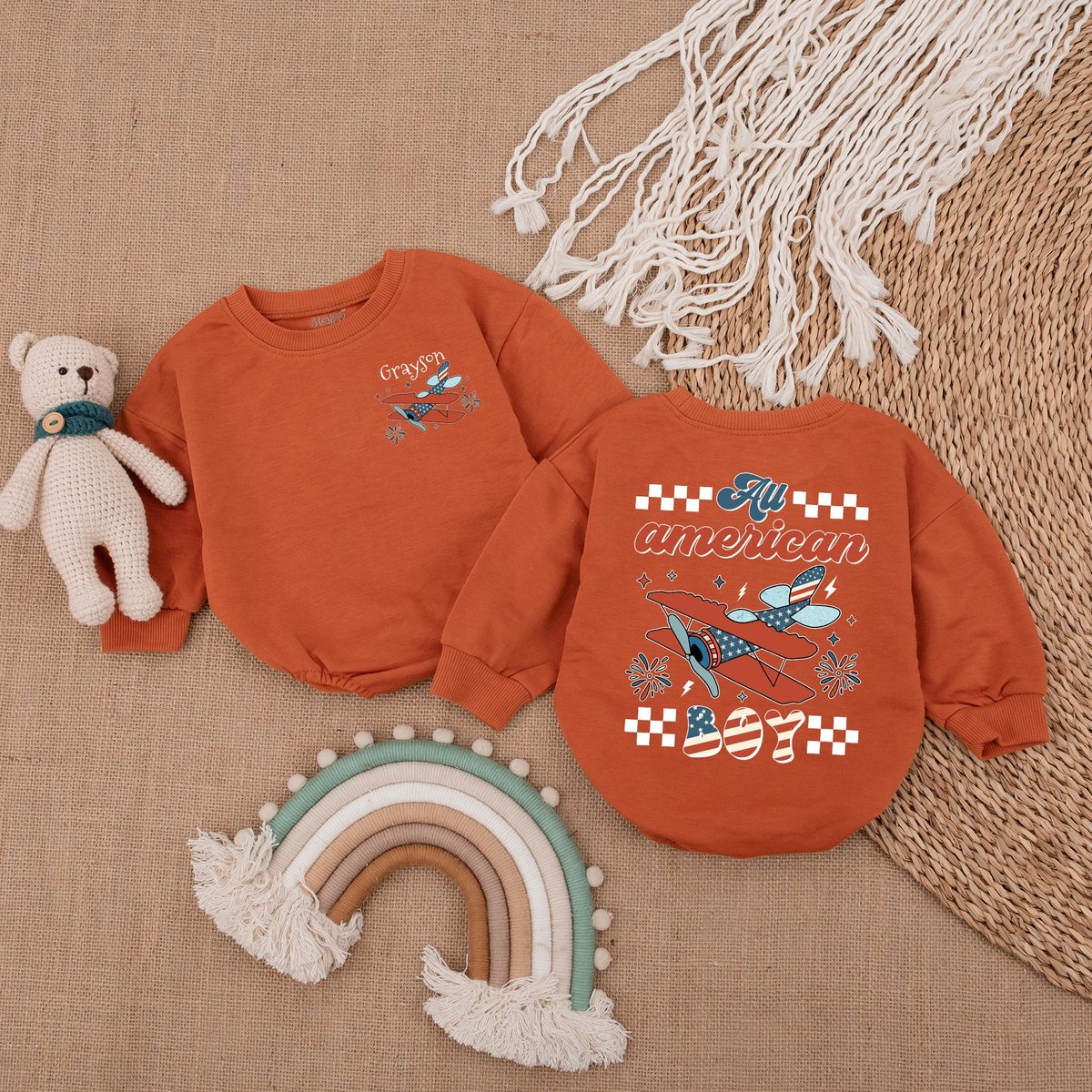 All America Boy Retro Baby Romper Patriotic Baby Boy Bubble Romper 4th of July Bodysuit Baby Clot