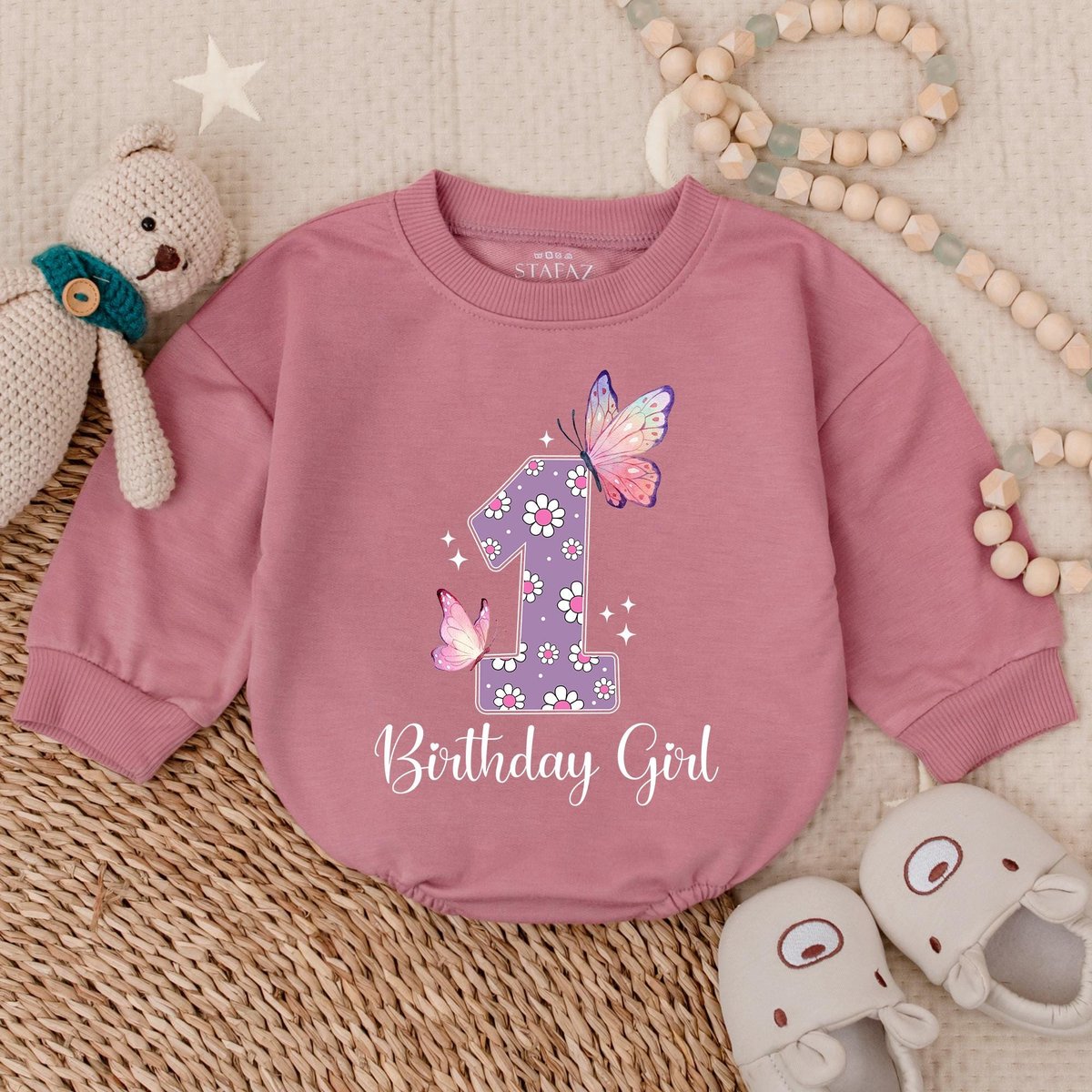 Birthday Girl Butterfly Bubble Romper Baby Bodysuit Birthday Girl Outfit Baby Girl Birthday Outfit B