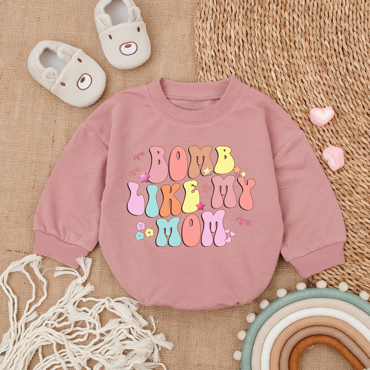 Bomb Like My Mom Romper Mommy Me Bodysuit Mama’s Girl Shirt Romper for Baby Girl Baby Girl Outfit G