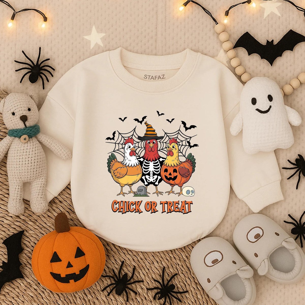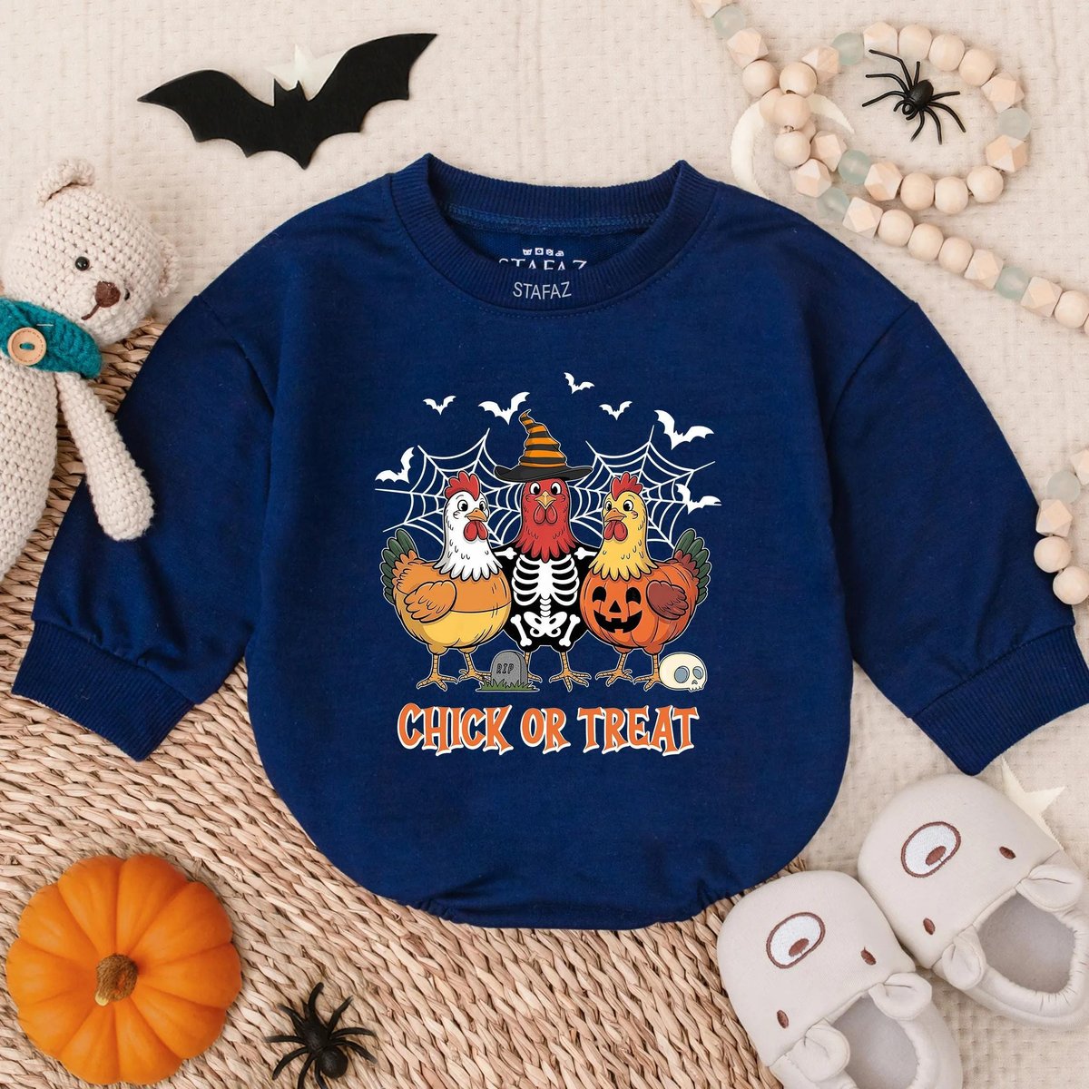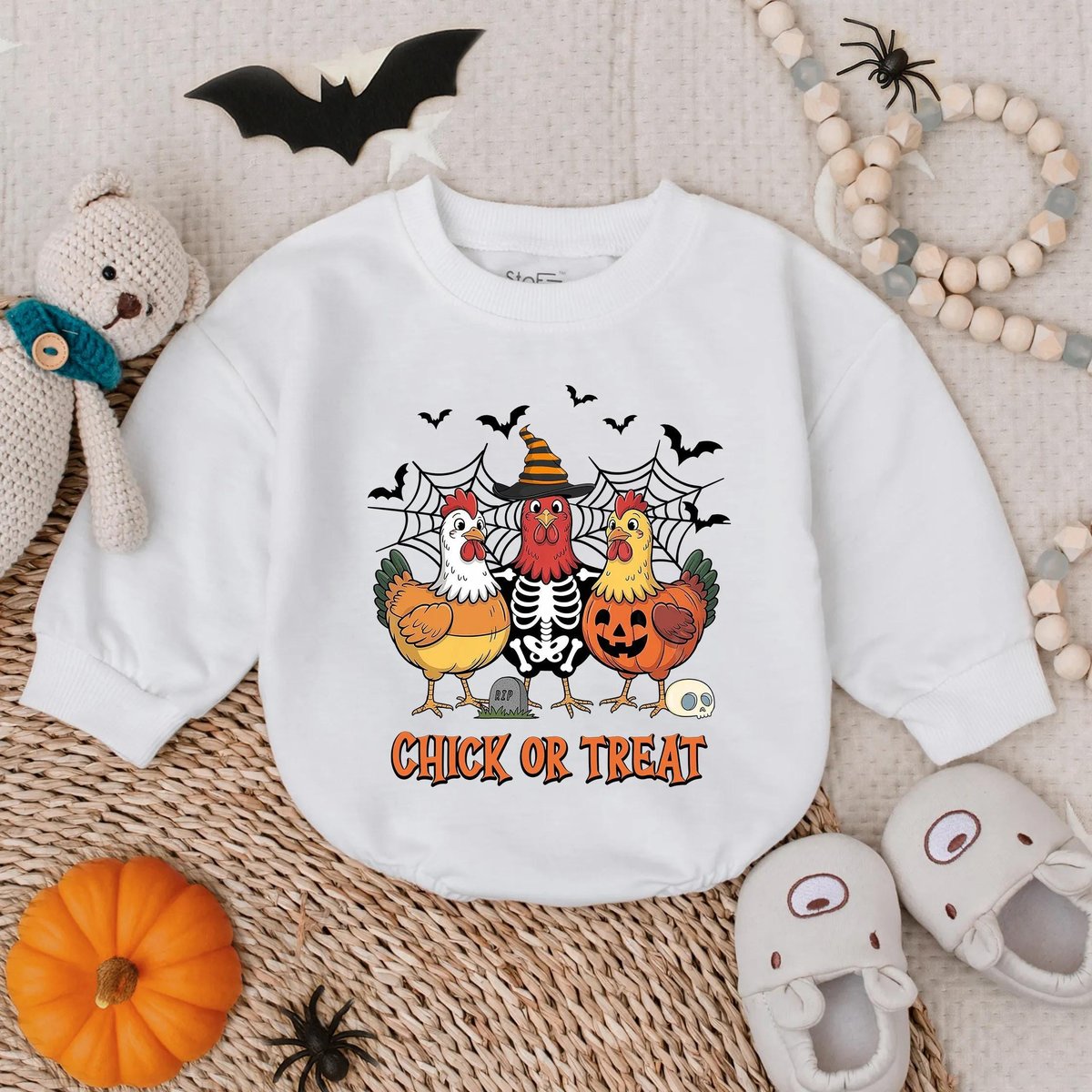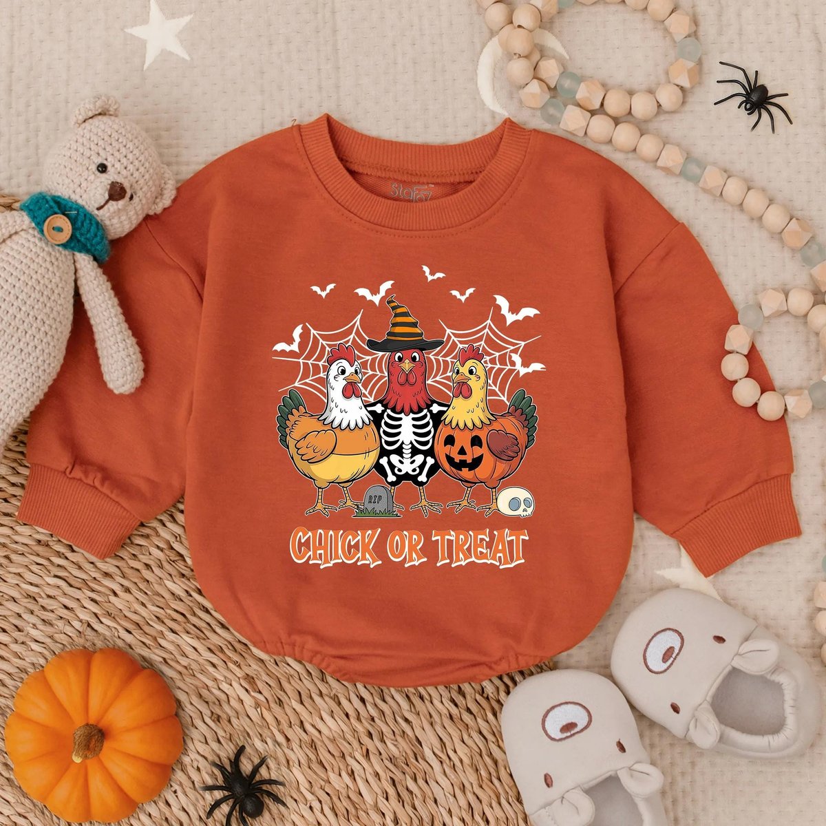 Chick or Treat Halloween Baby Bubble Romper Funny Chicken Fall Outfit Cute Infant Clothes Toddler Tr