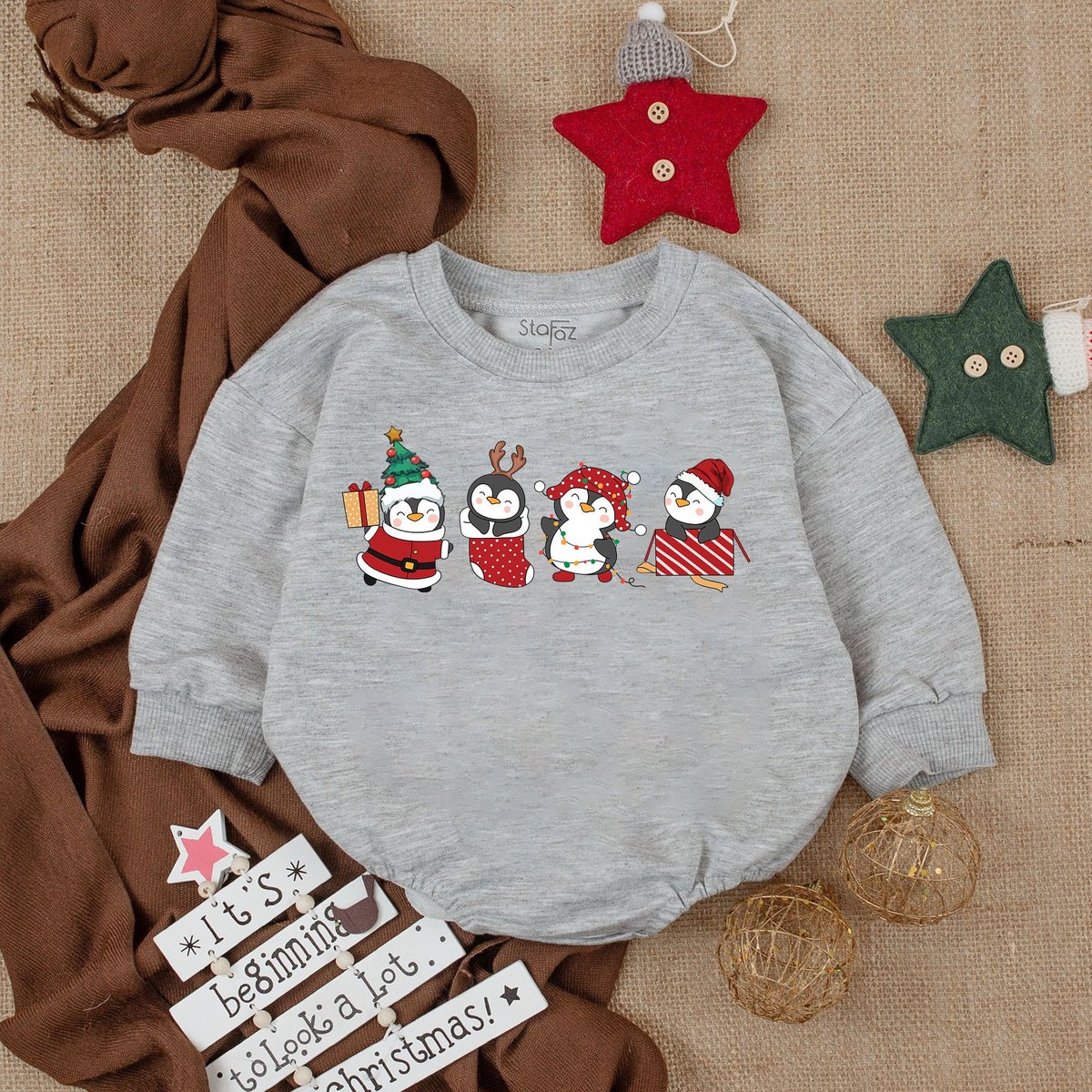 Christmas Baby Romper Penguin Merry Christmas Bodysuit Baby Bubble Romper Christmas Outfit Baby Clot