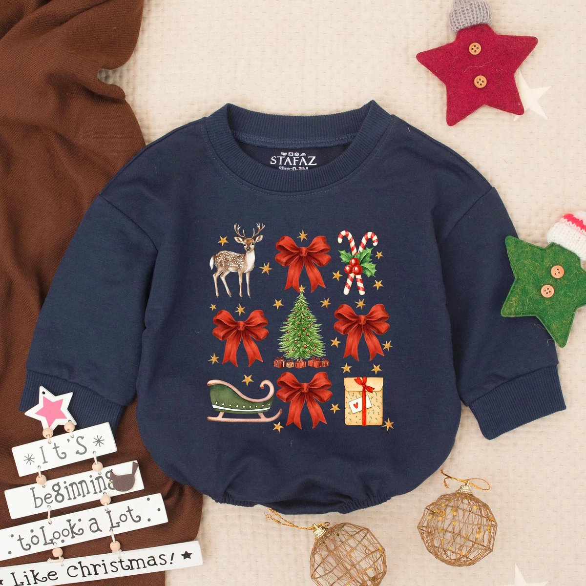 Christmas Bubble Romper Retro Christmas Baby Sweatshirt Christmas Baby Girl Outfits Candy Cane Chris