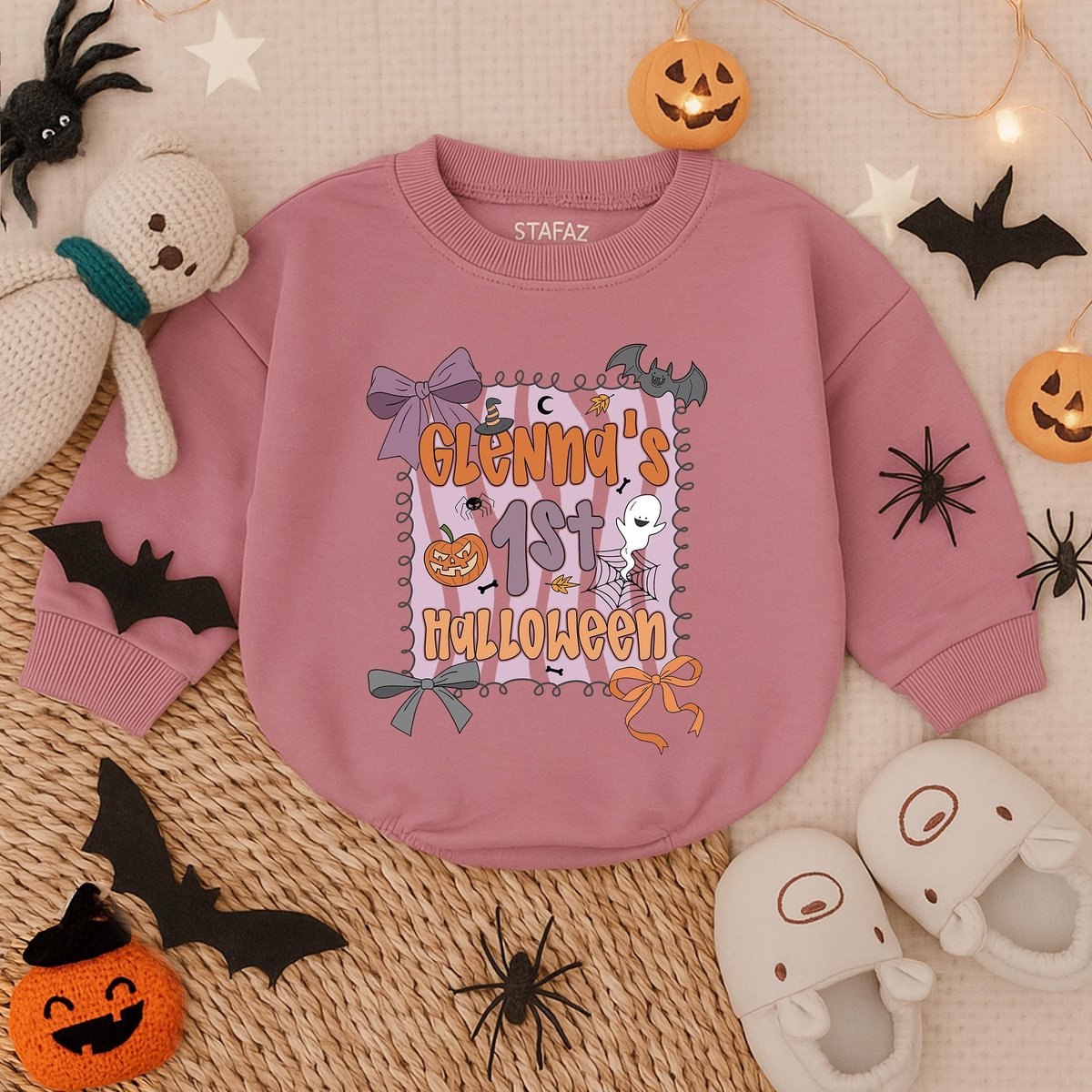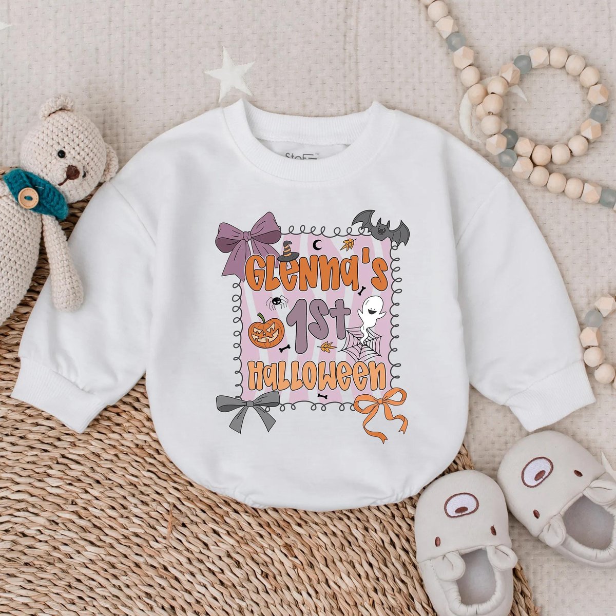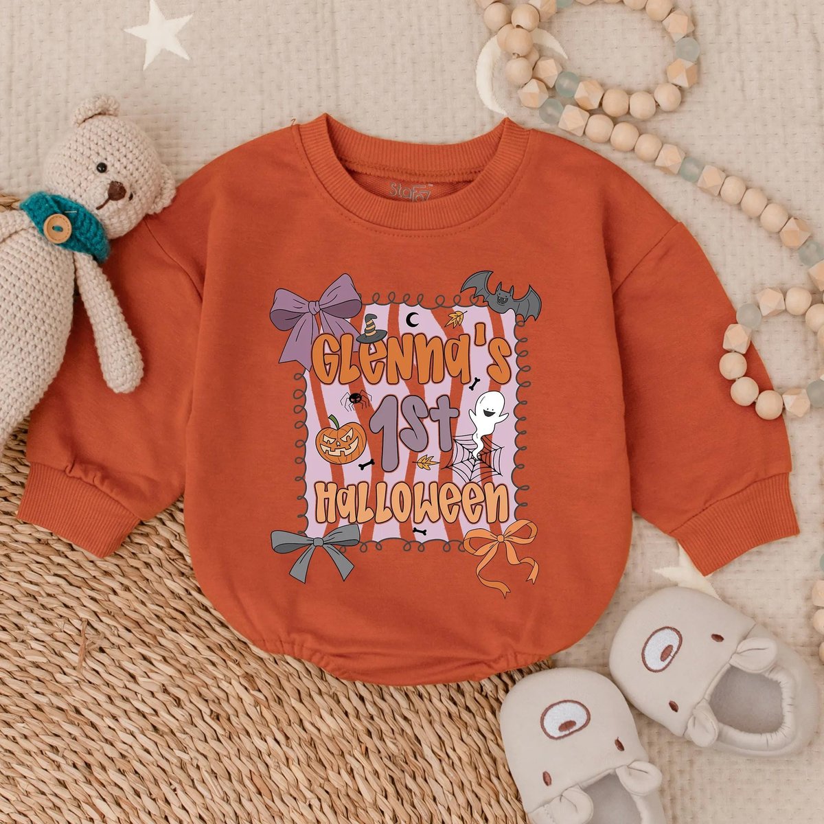 Custom Baby Girl First Halloween Romper1st Halloween Bubble Romper Personalized Name Outfit Infant G
