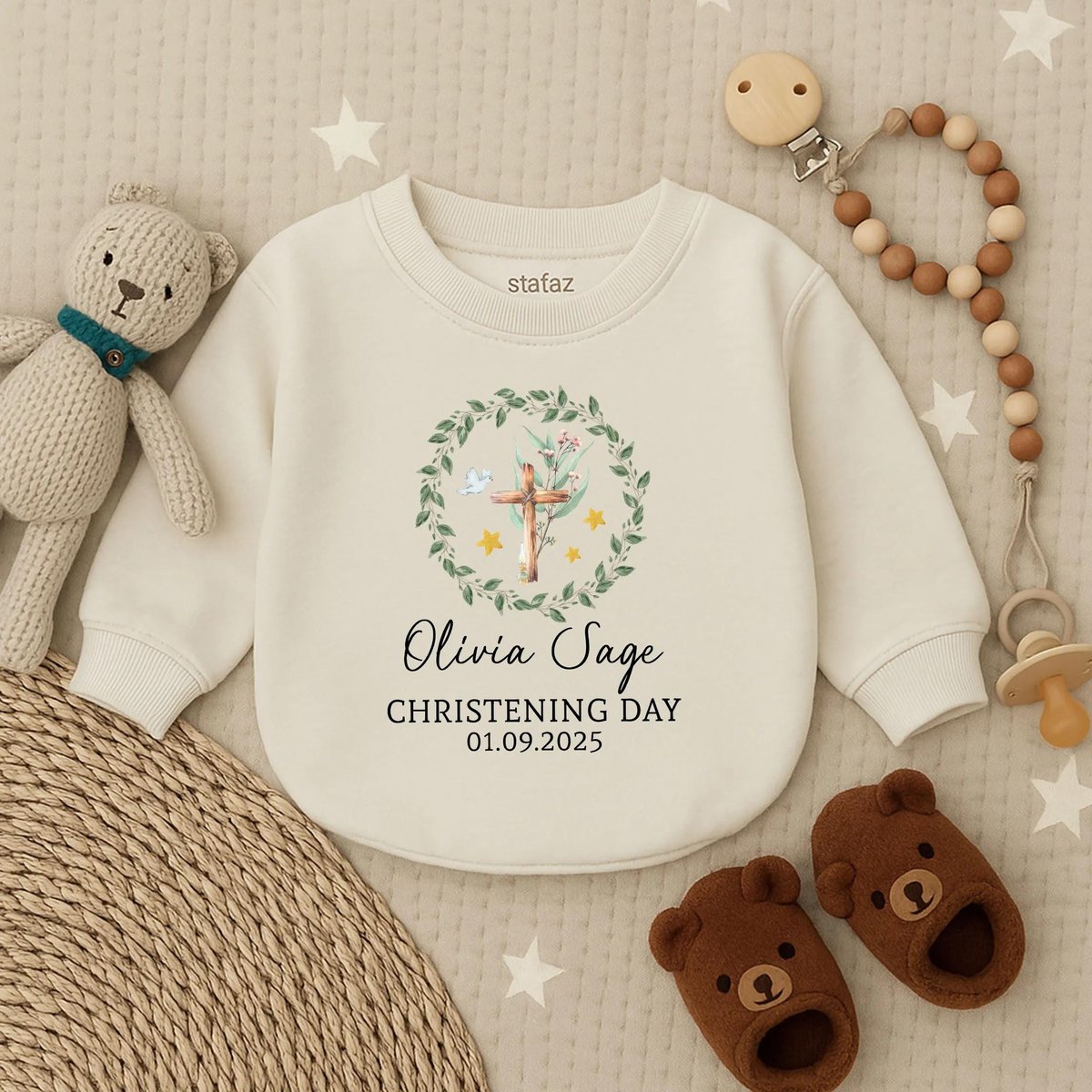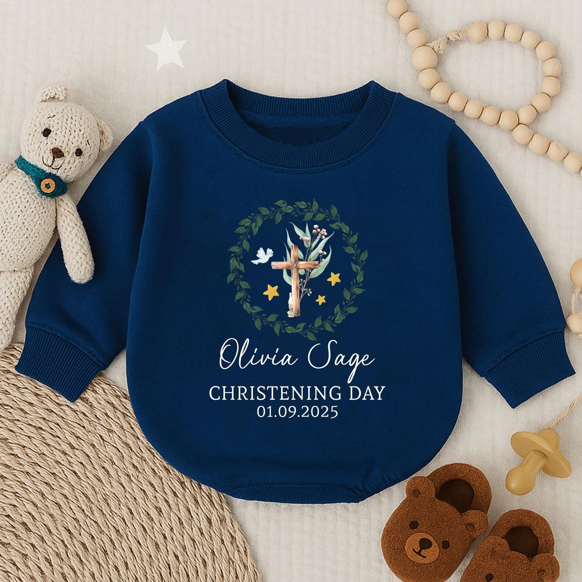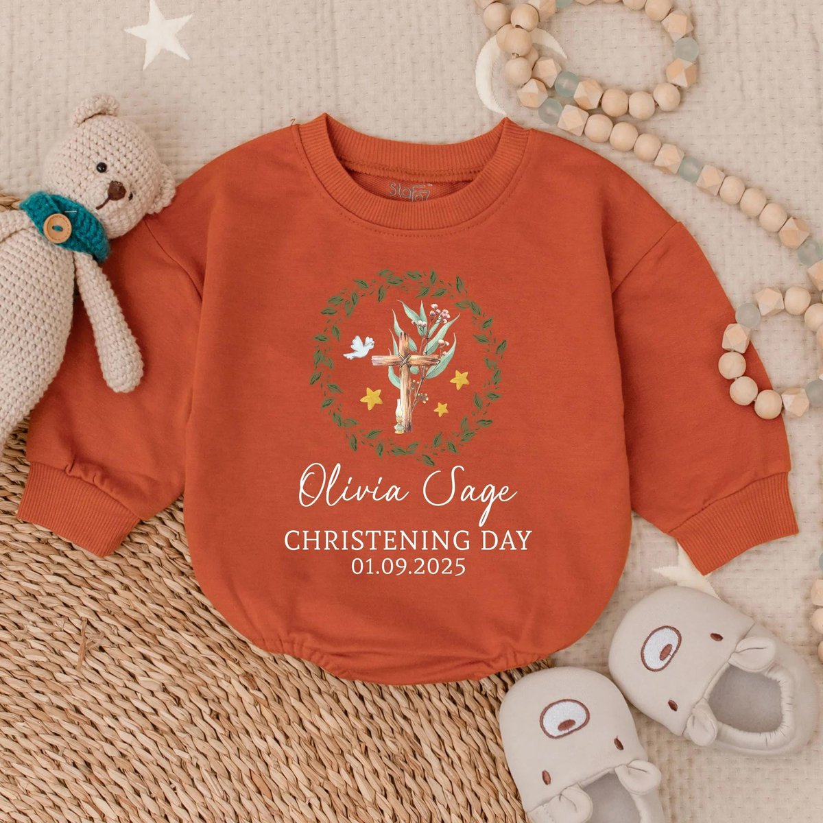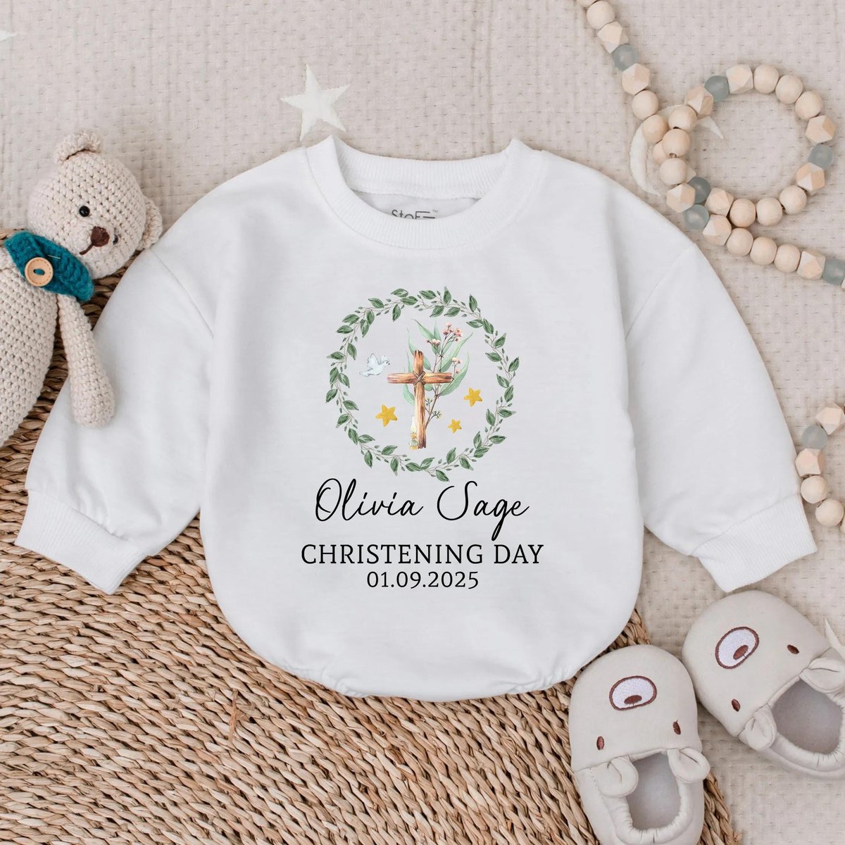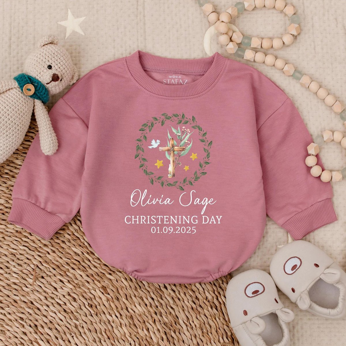 Custom Christening Long Sleeve Bubble Romper Personalized Baptism Baby Girl Outfit Baby Shower Gift