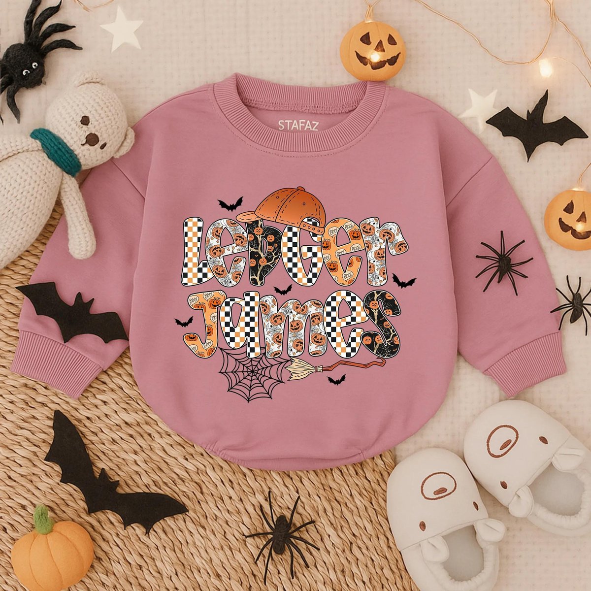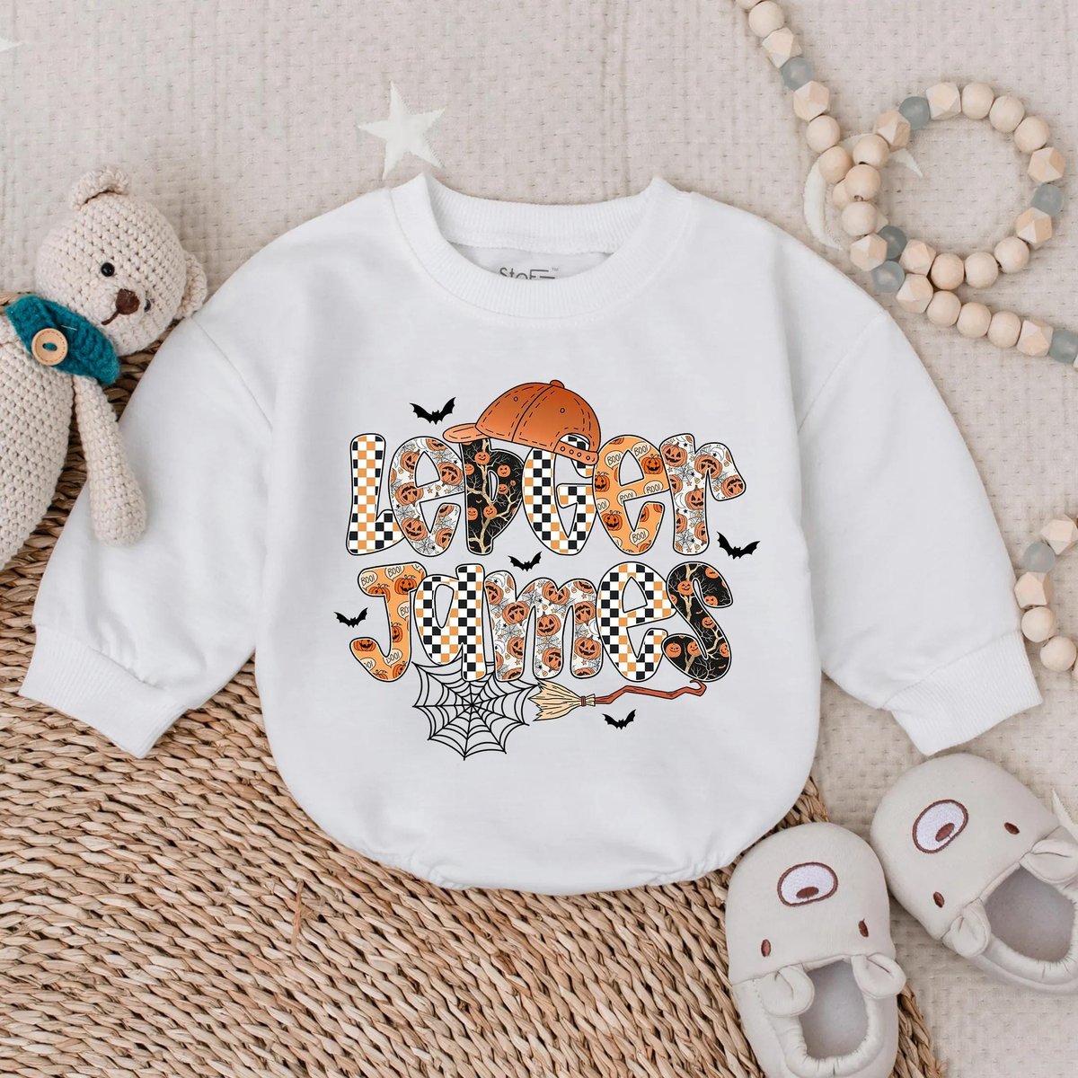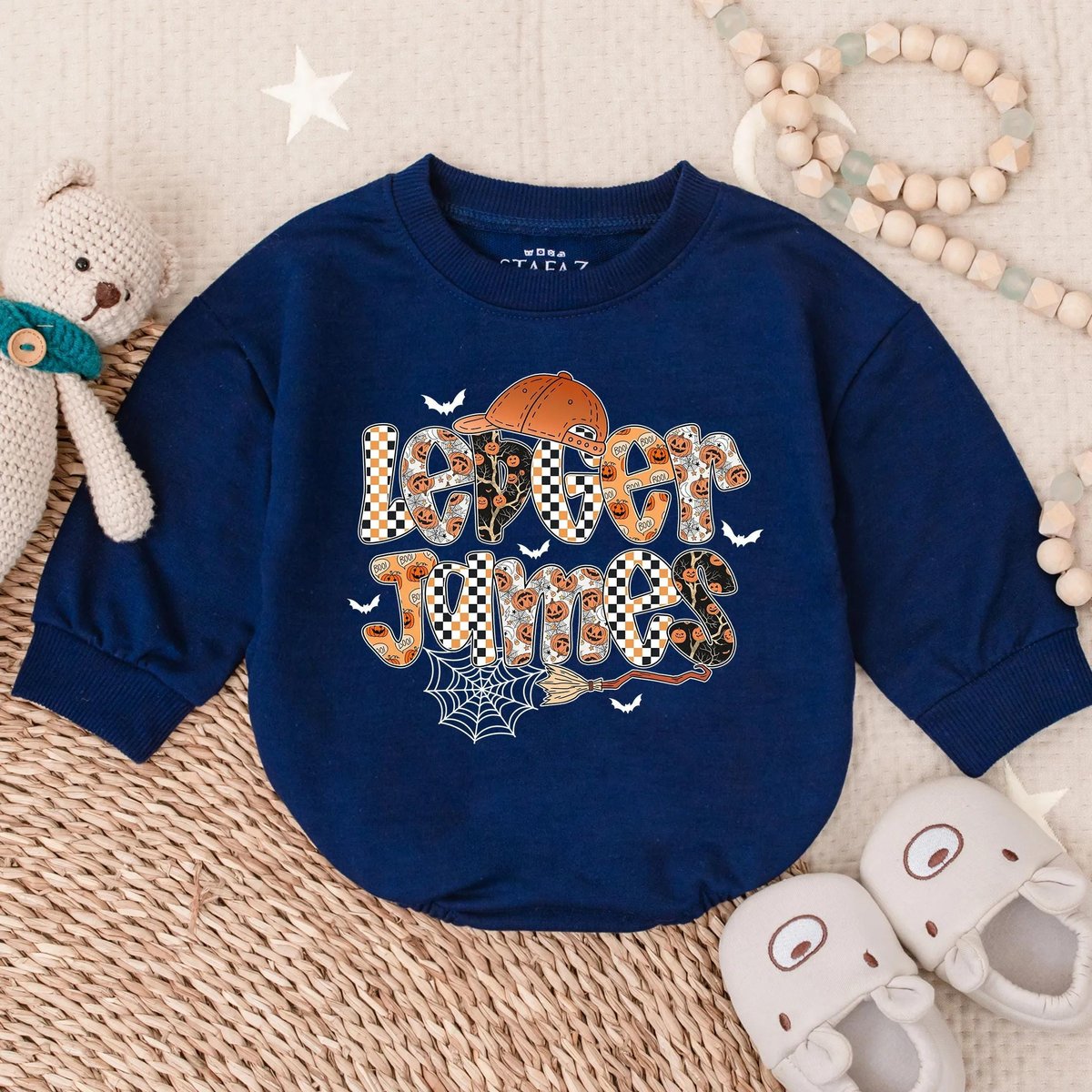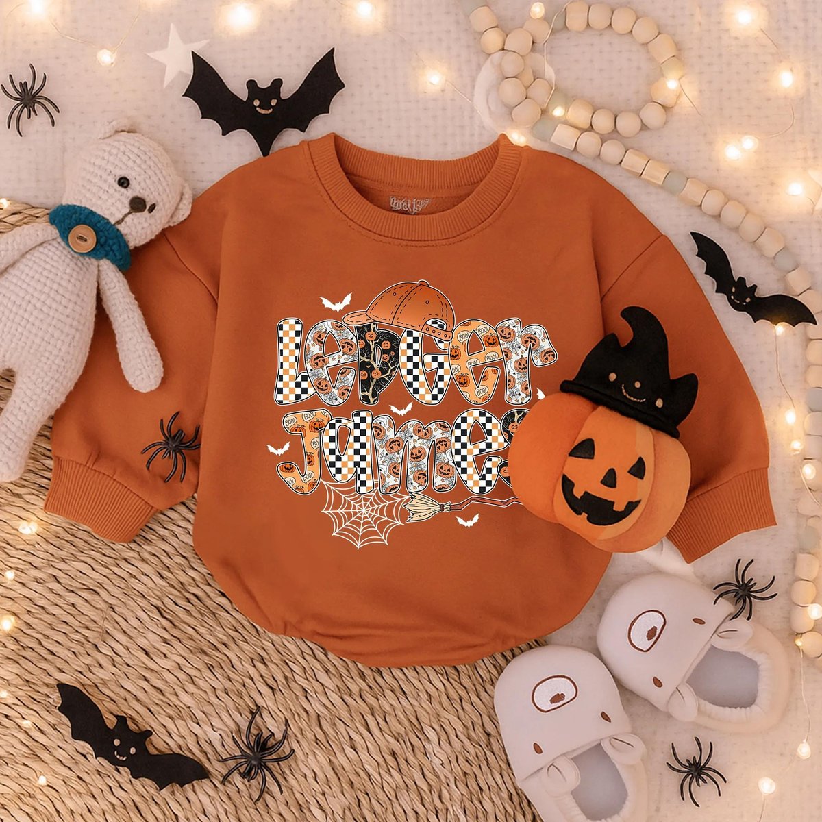 Custom Halloween Bubble Romper for Baby Boy Spooky Dude Outfit with Name Fall Pumpkin Ghost Bodysuit