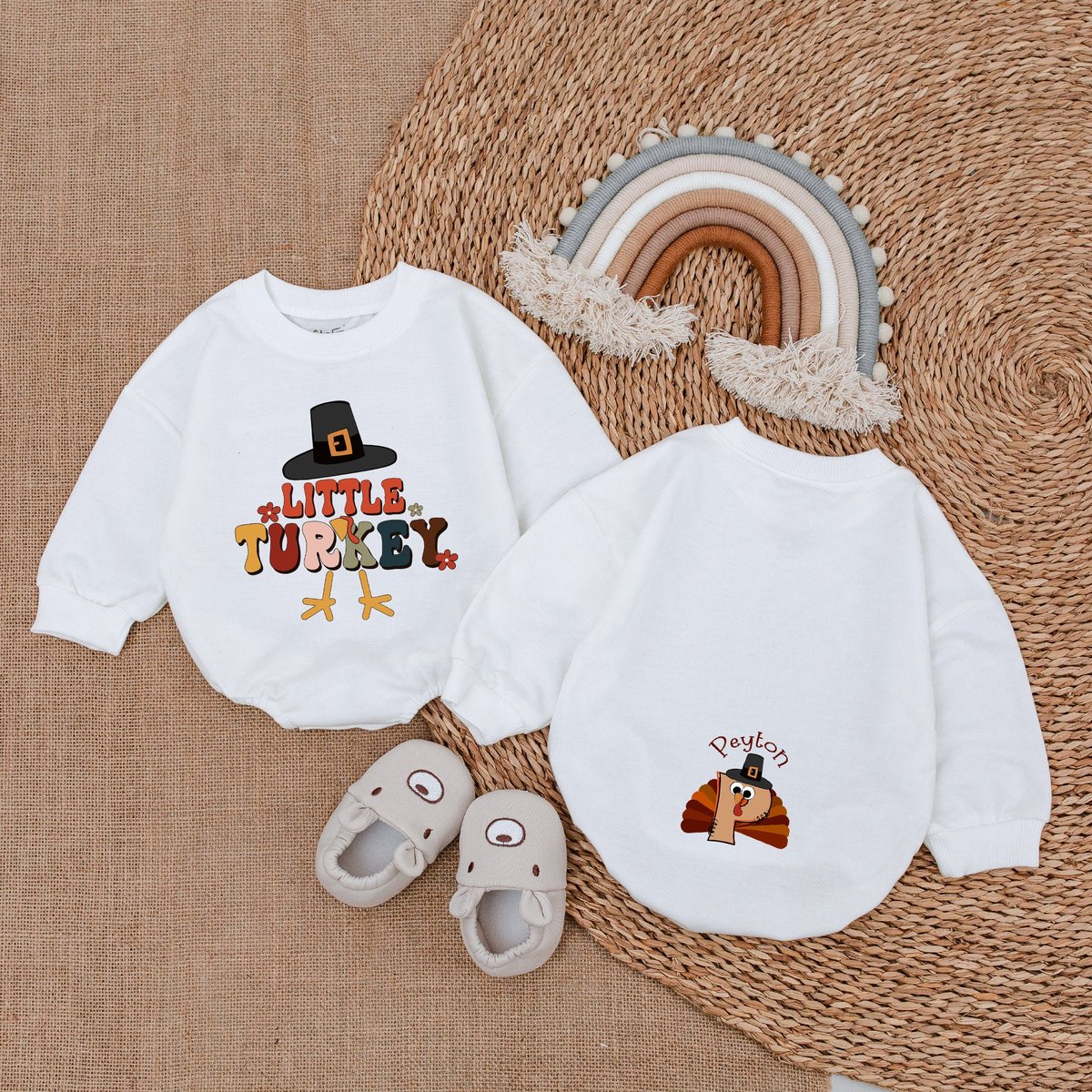 Custom Little Turkey Bubble Romper My First Thanksgiving Baby Outfit Thanksgiving Baby Clothes Turke