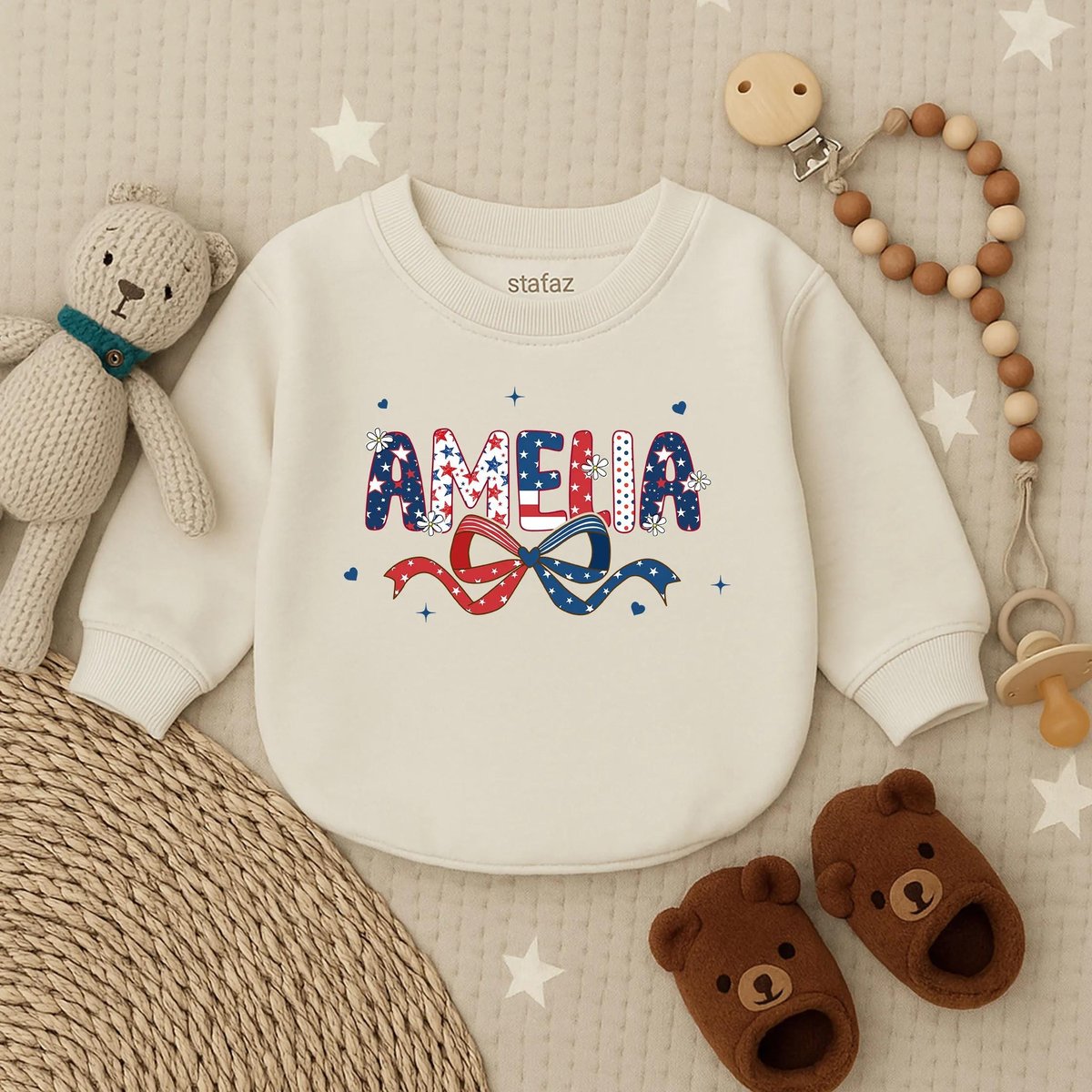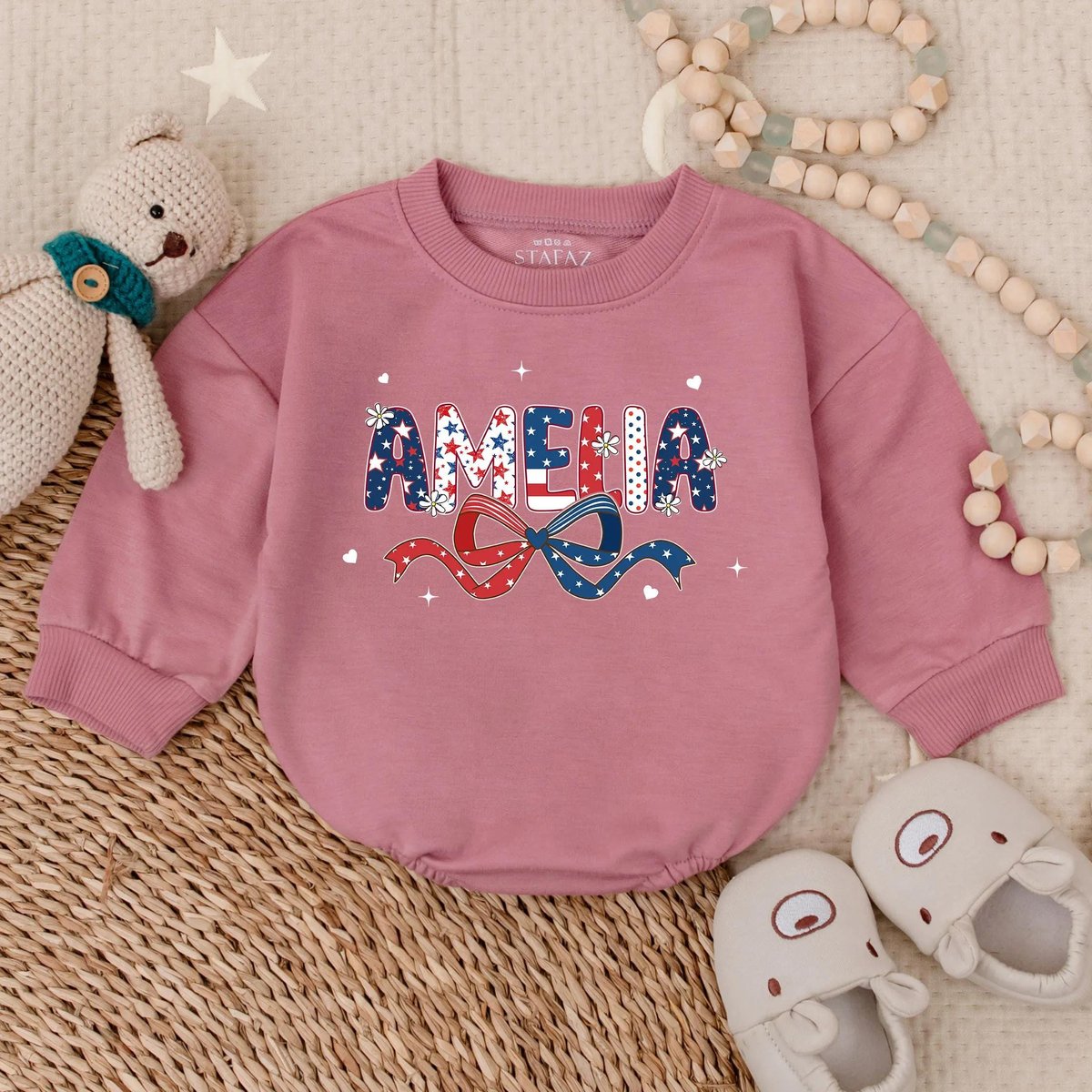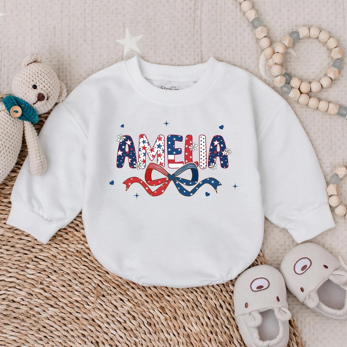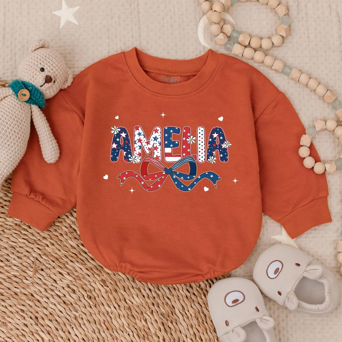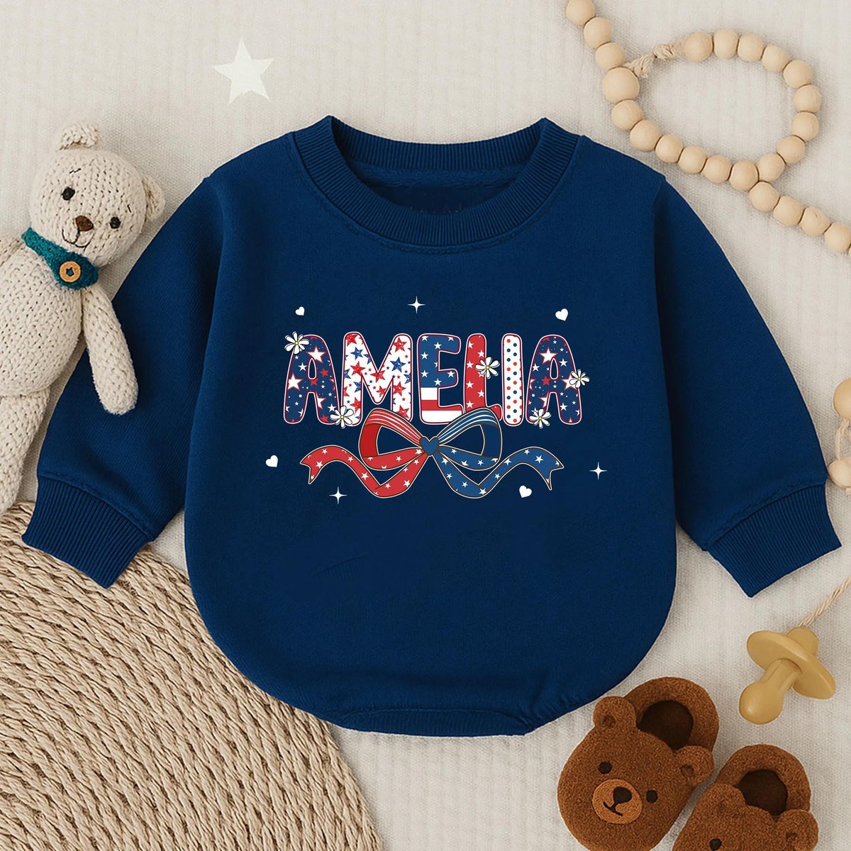 Custom Name Amelia Bubble Romper 4th Of July Long Sleeve Outfit Toddler Kid Clothes Cute Infant Clot