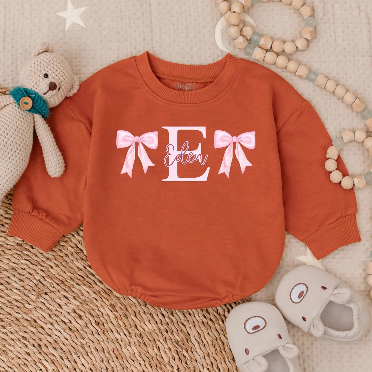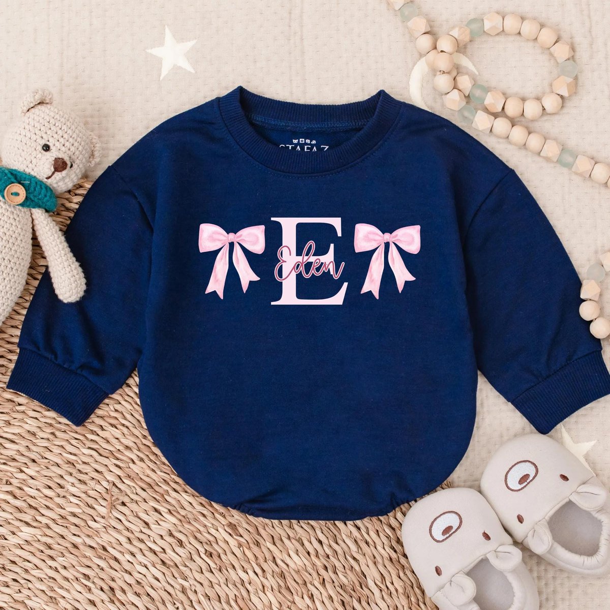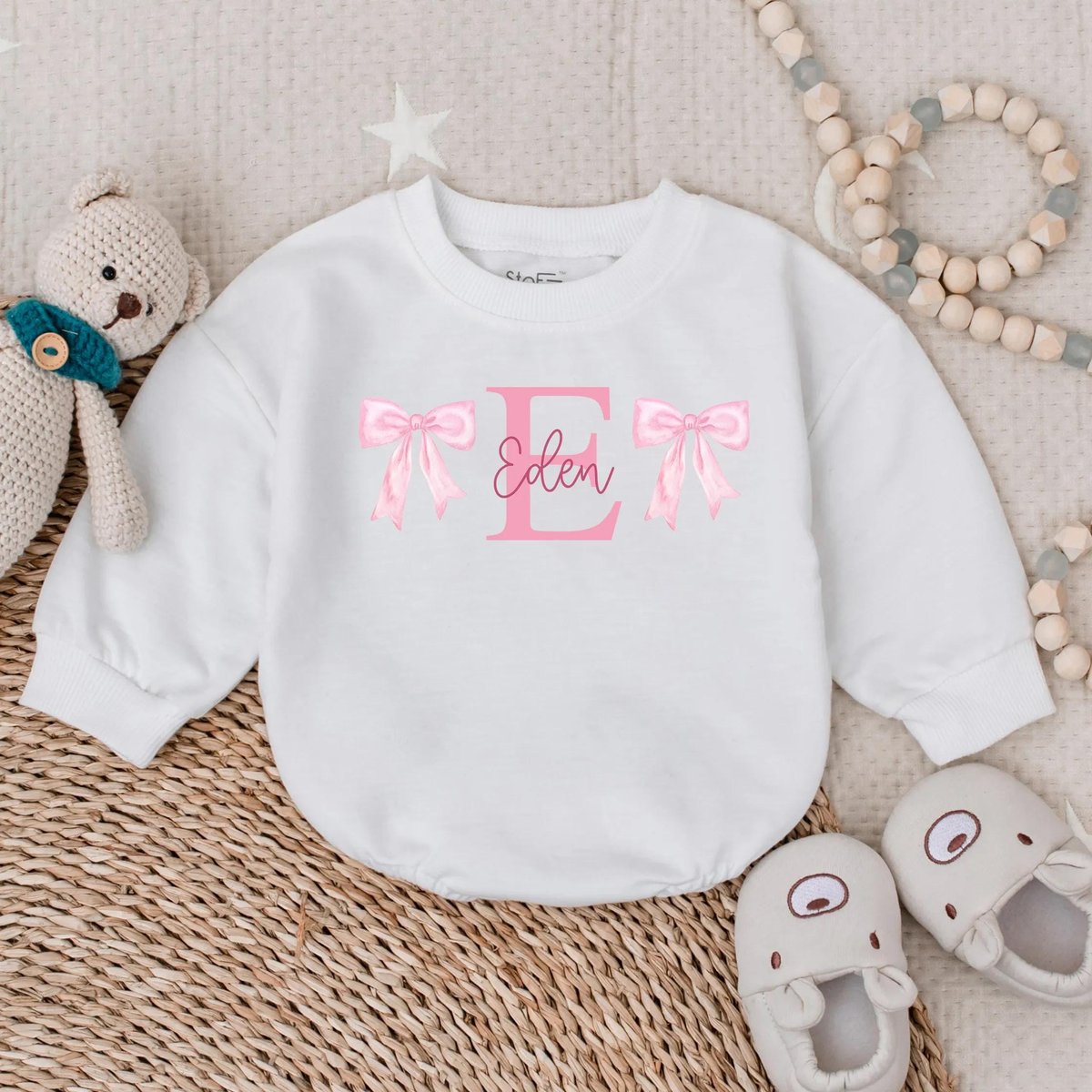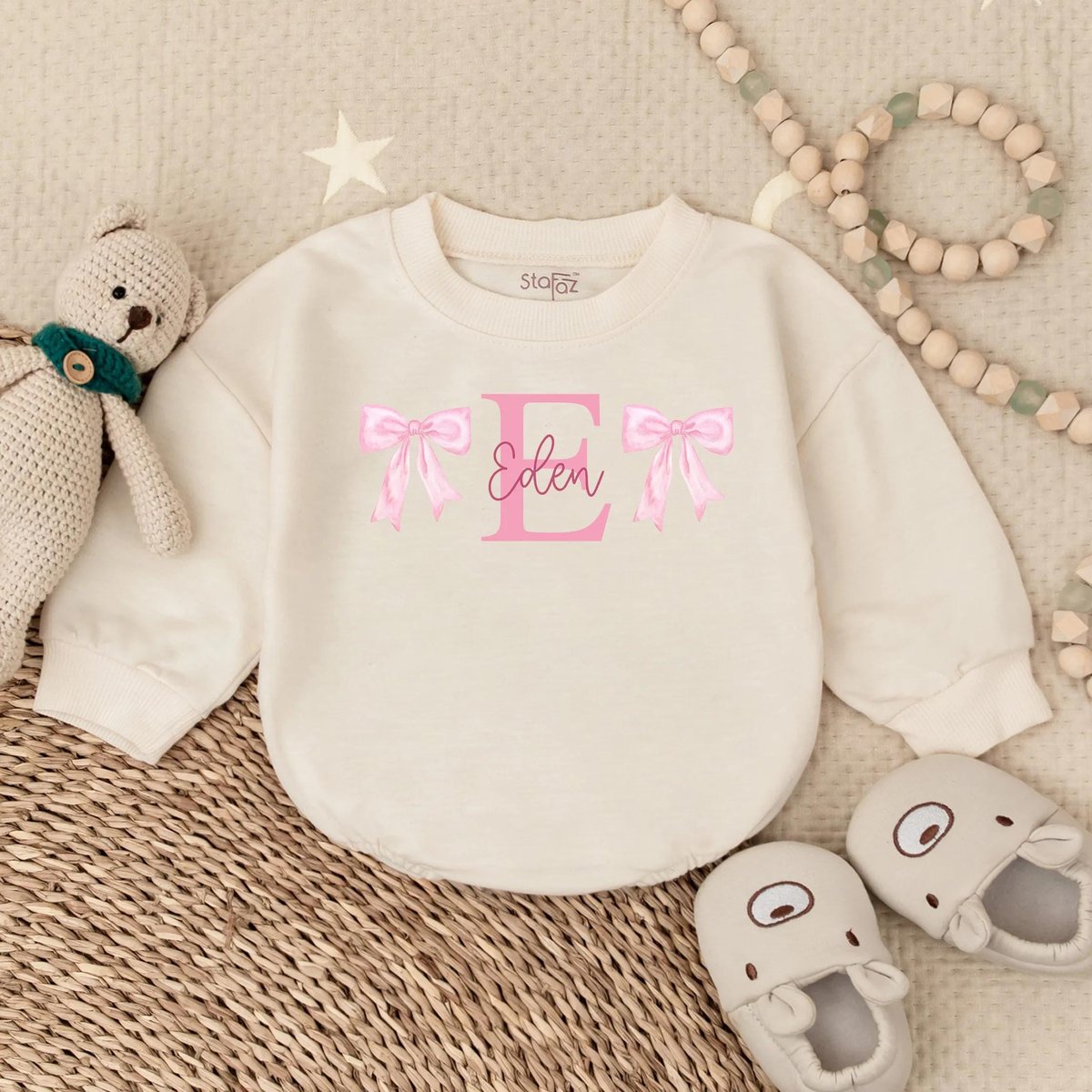 Custom Name Romper Sweatshirt Personalized Baby Bow Outfit Baby Shower Gift Cute Baby Girl Clothes