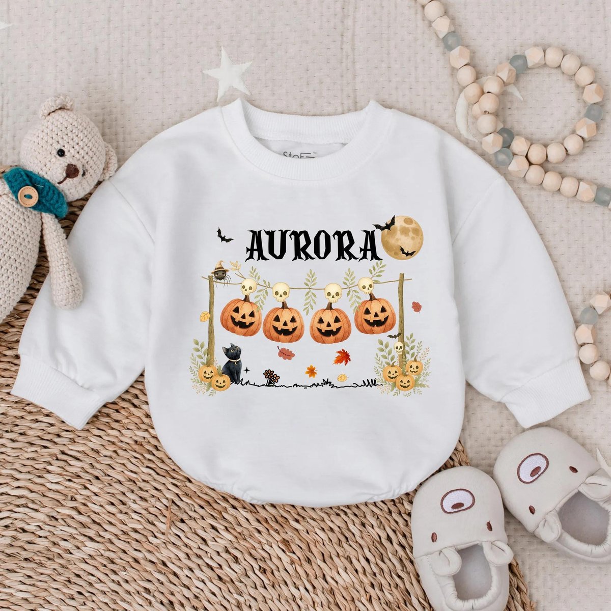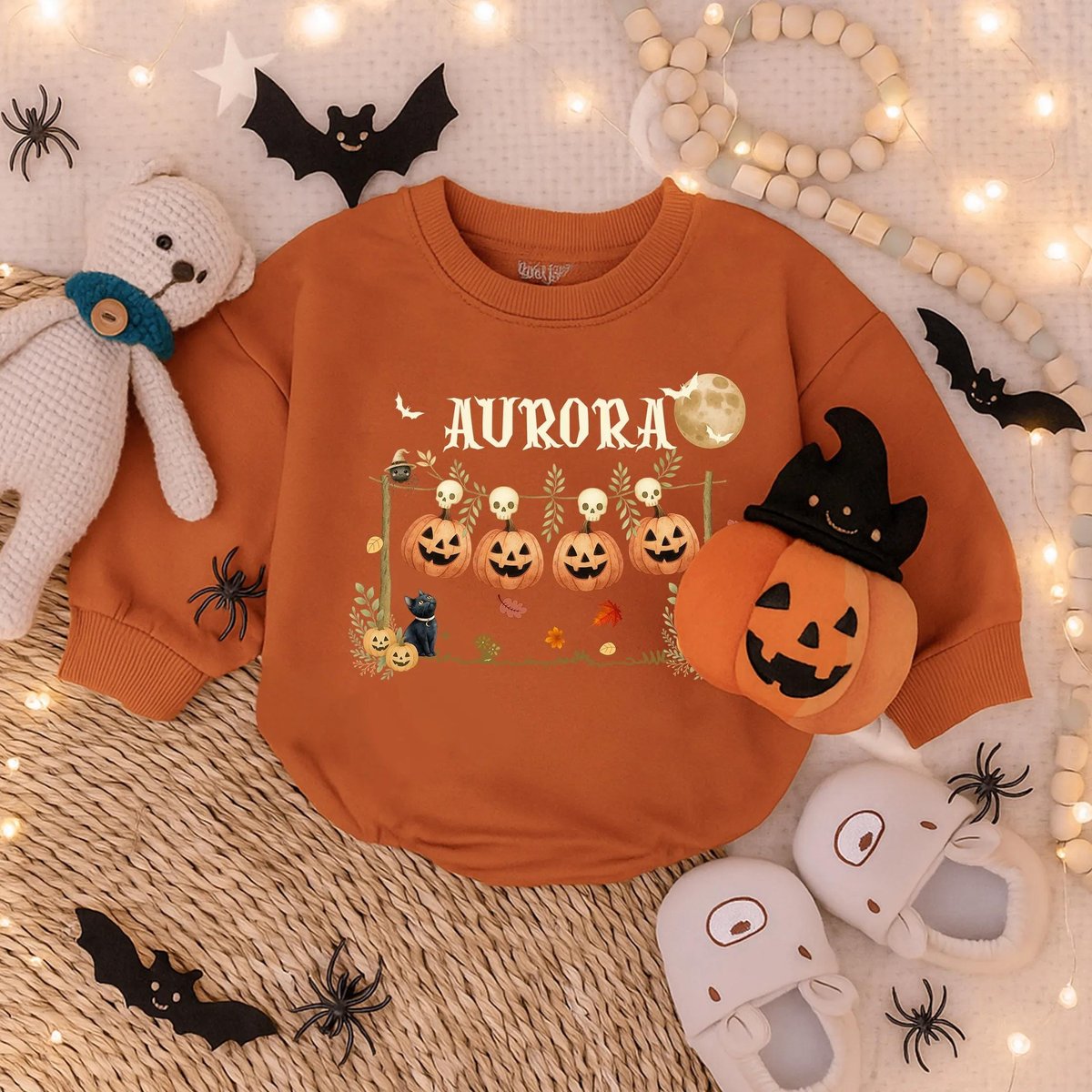Customized Horror Halloween Bubble Romper Spooky Girl Outfit Toddler Halloween Creepy Baby Clothes S