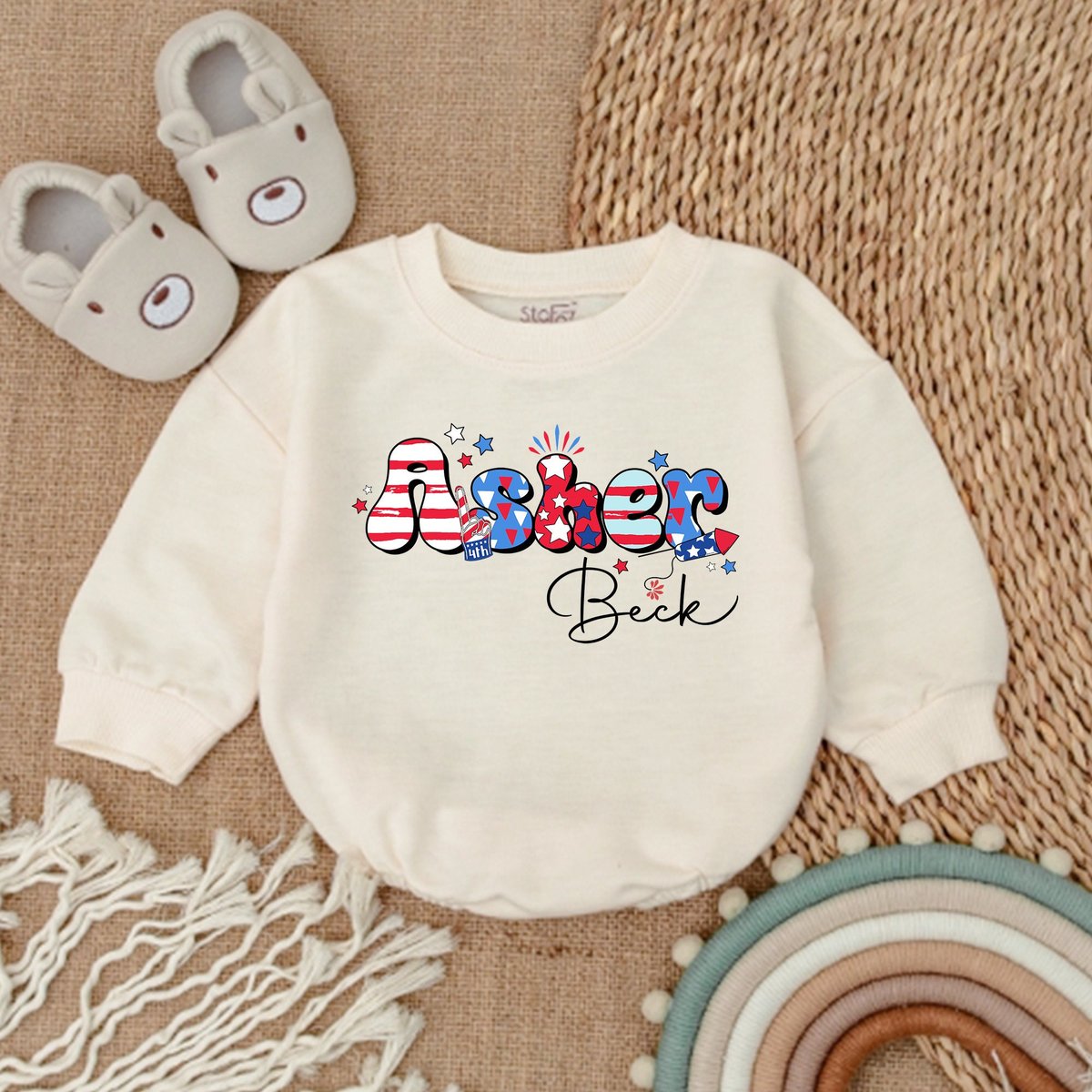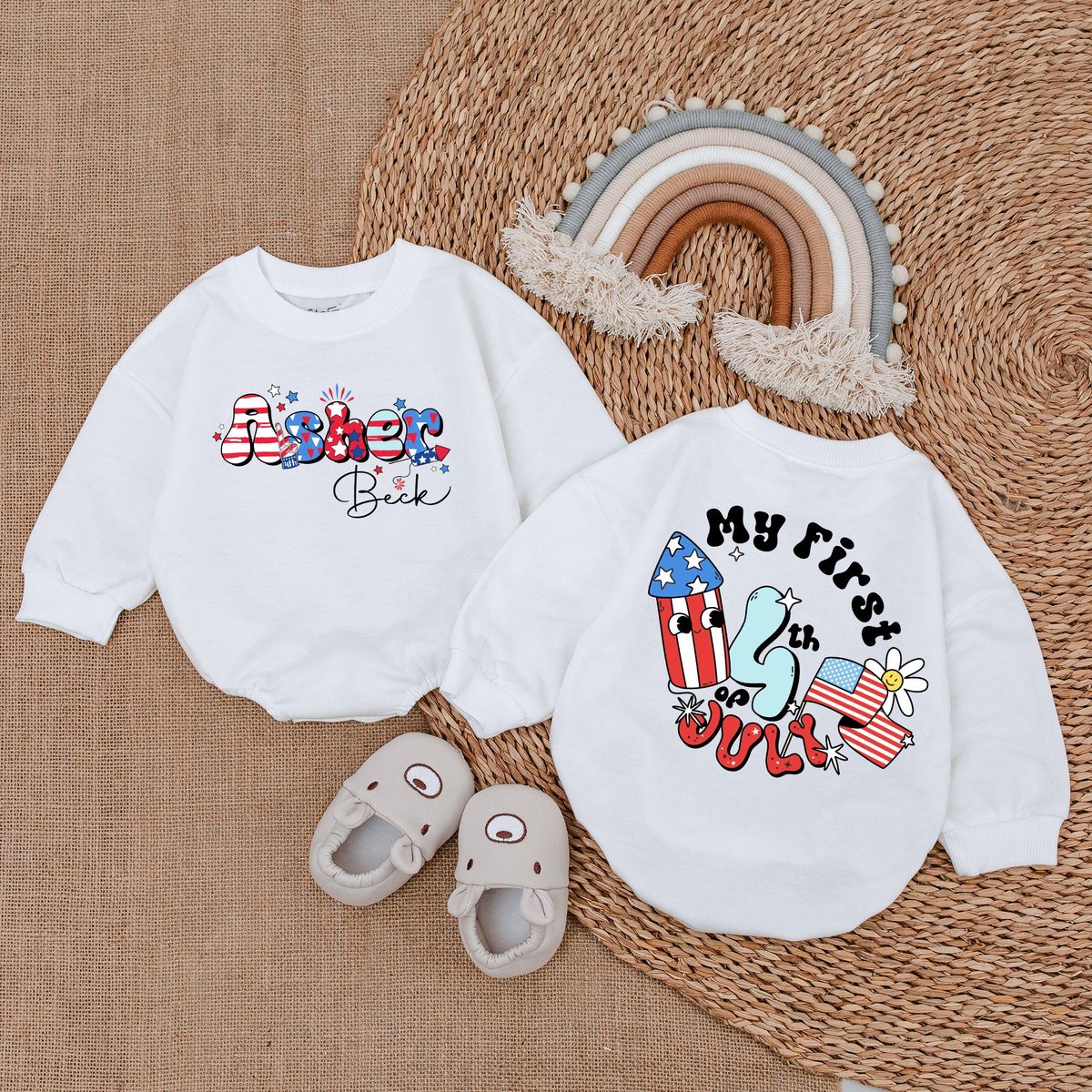 Customized July 4th Romper Retro 4th of July Baby Clothes Patriotic Baby Outfit Baby Clothes Baby