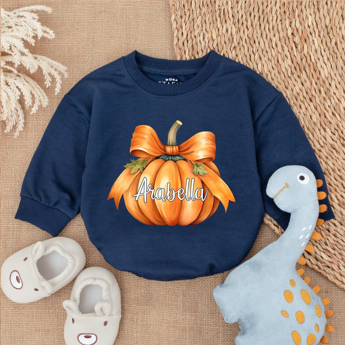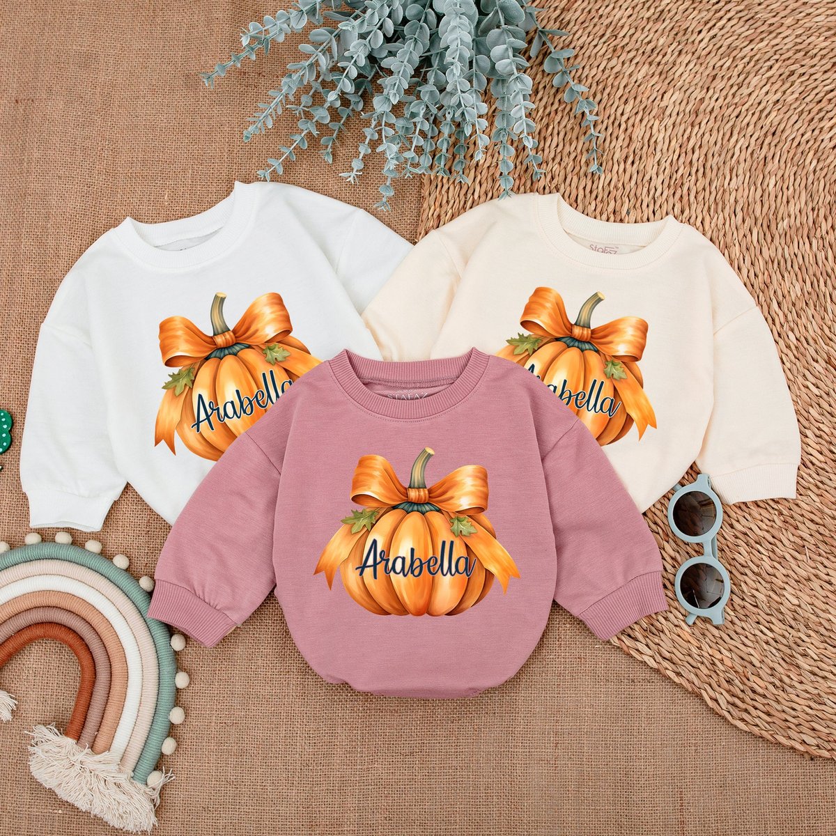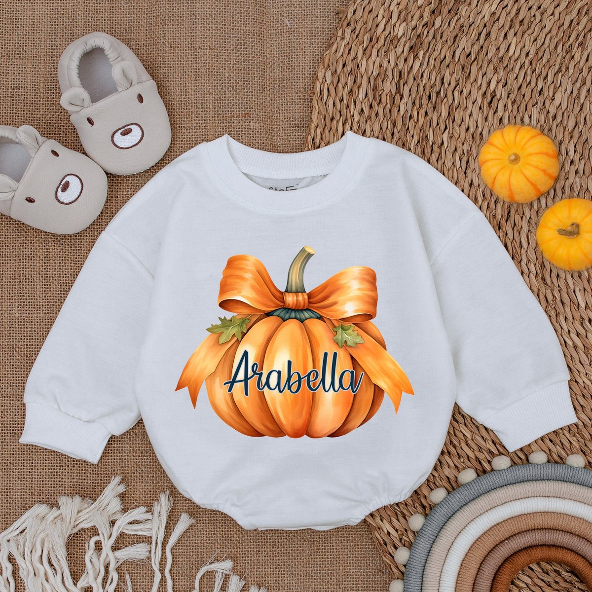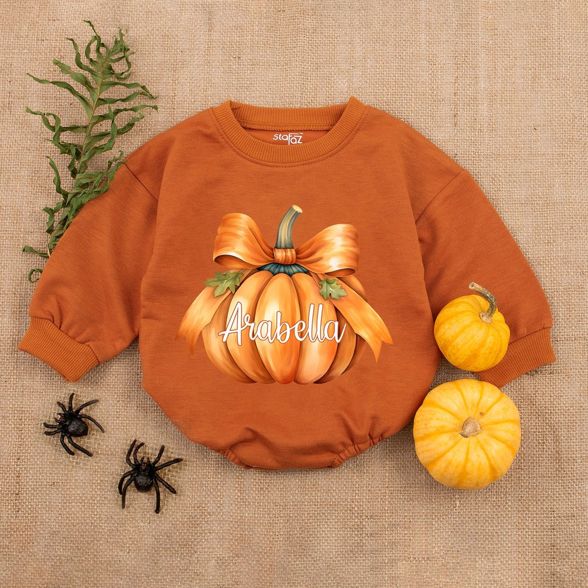 Customized Pumpkin Bow Baby Romper First Thanksgiving Outfit Thanksgiving Newborn Clothes Fall baby