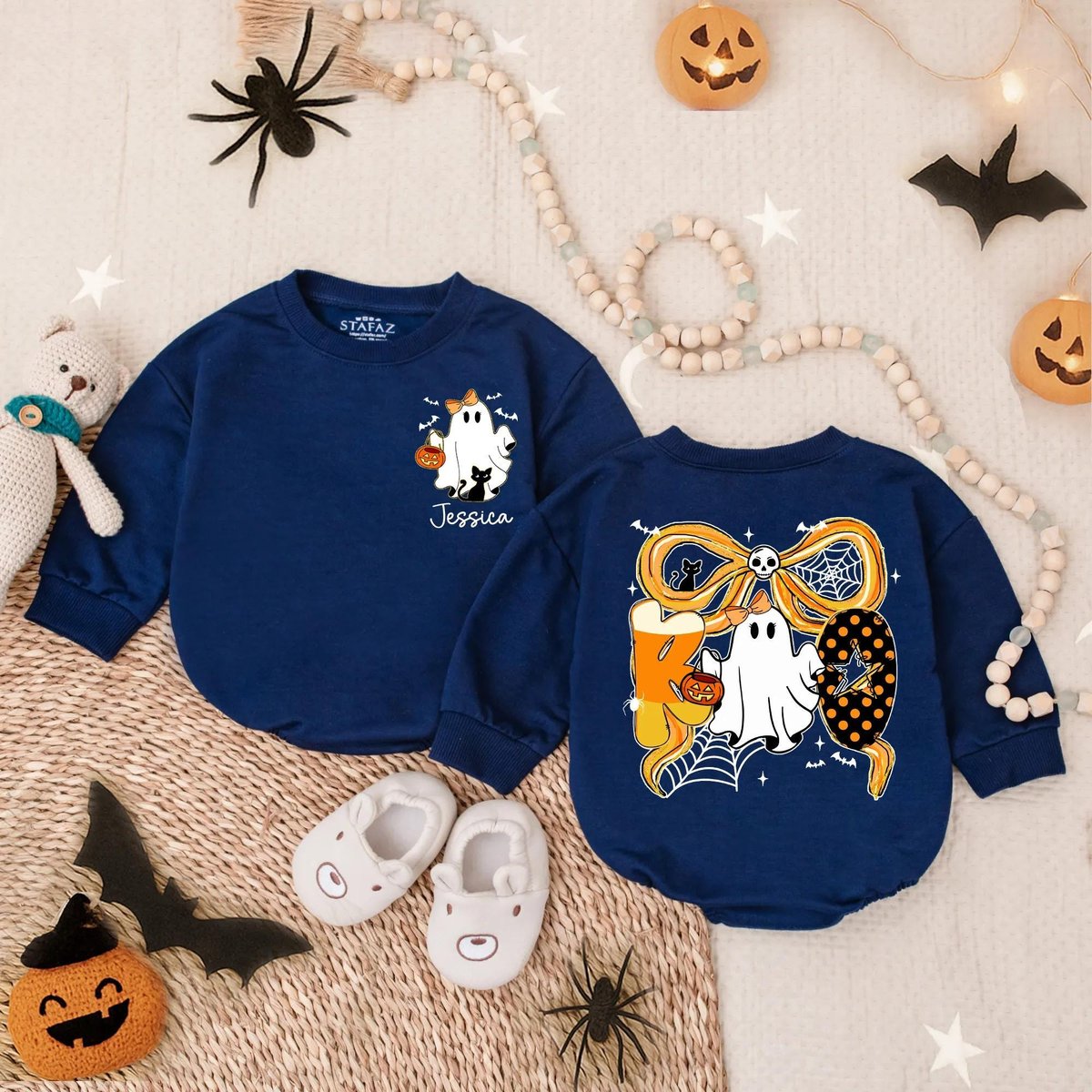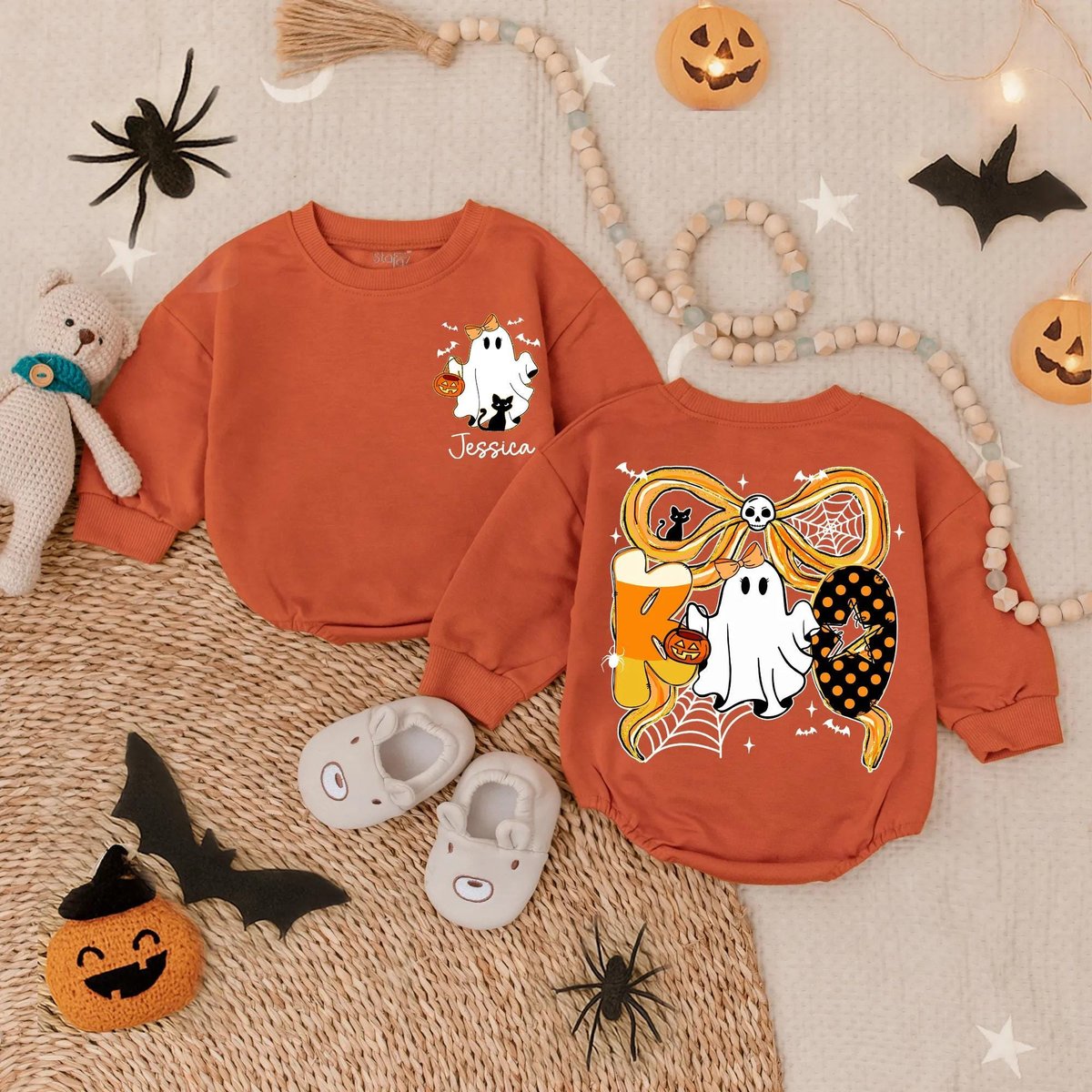 Customized Spooky Boo Halloween Romper for Girl Baby Girl Ghost Outfit My First Halloween Clothes Fa