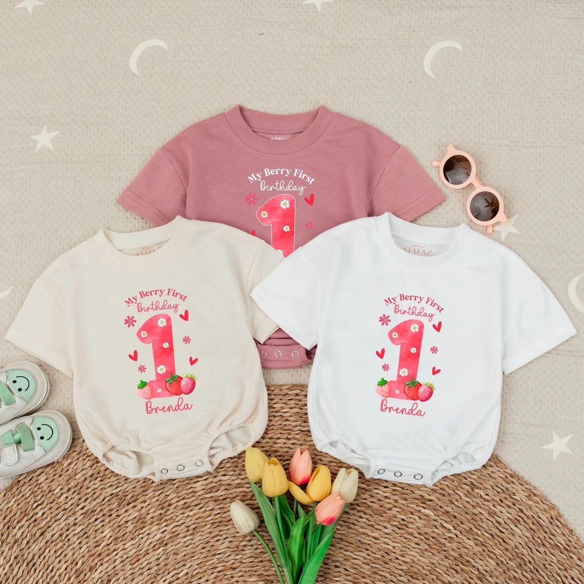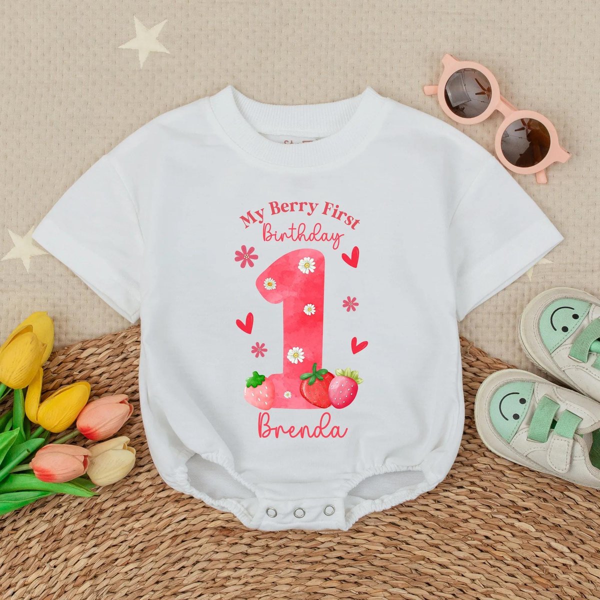 Customized Strawberry Baby Romper First Birthday Baby Outfit Strawberry 1st Birthday 1st Birthday Bo