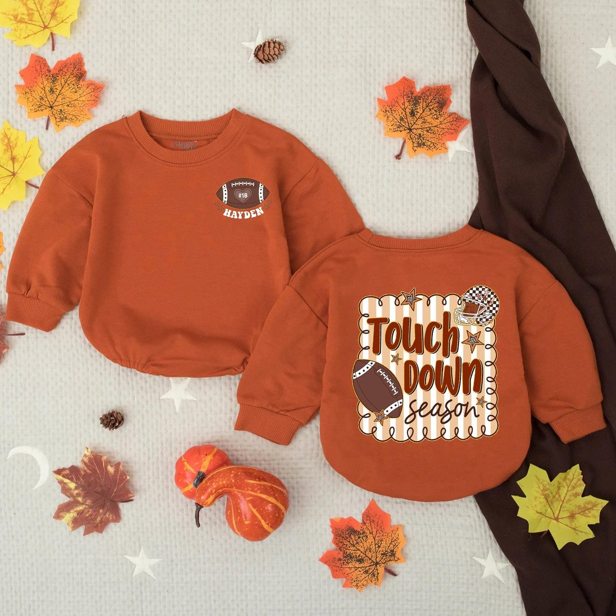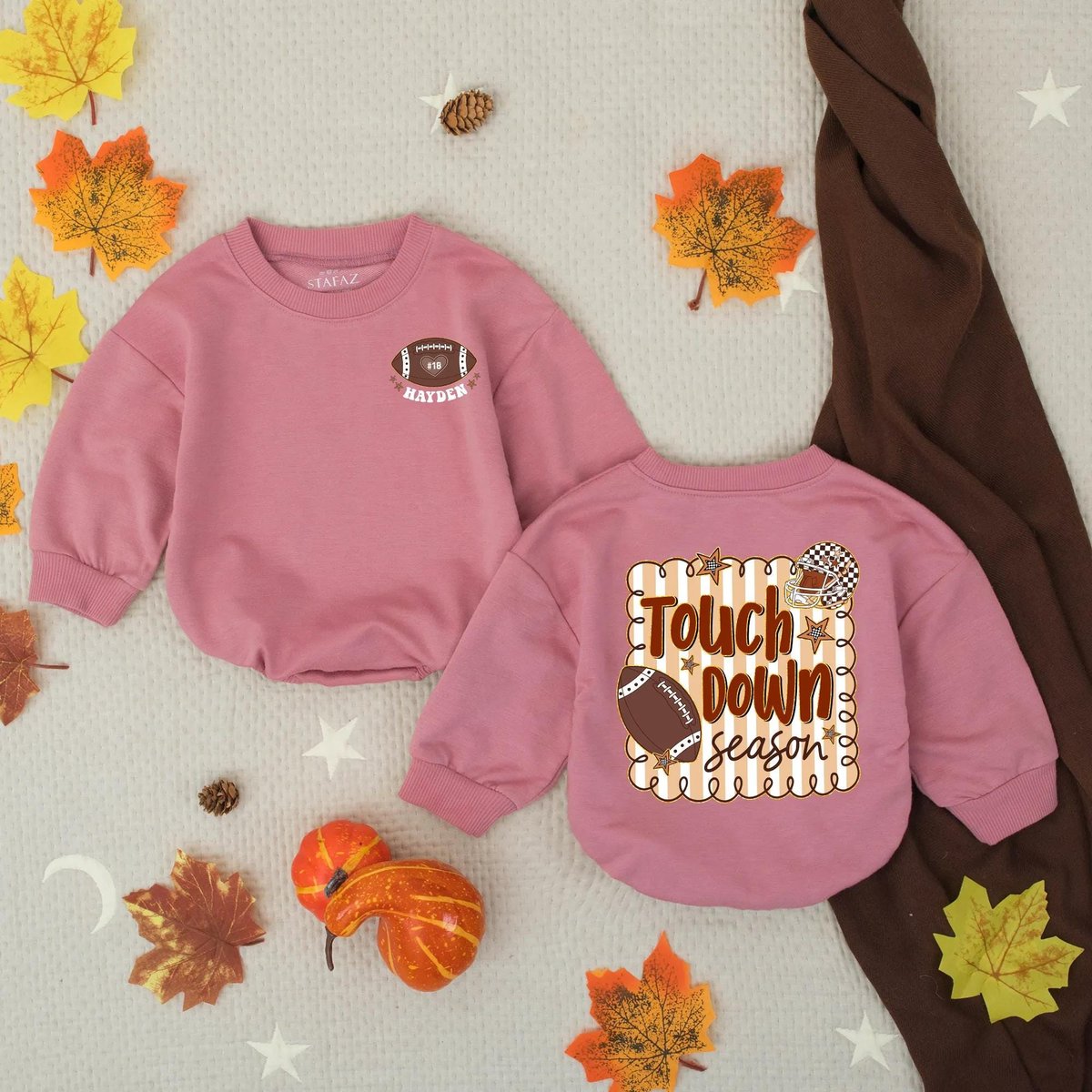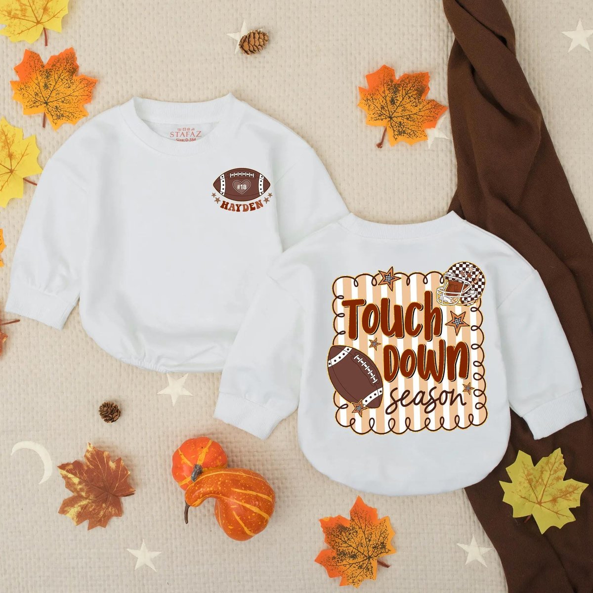 Customized Touchdown Season Bubble Romper Football Season Tee Football Game Day Toddler Sport Baby G