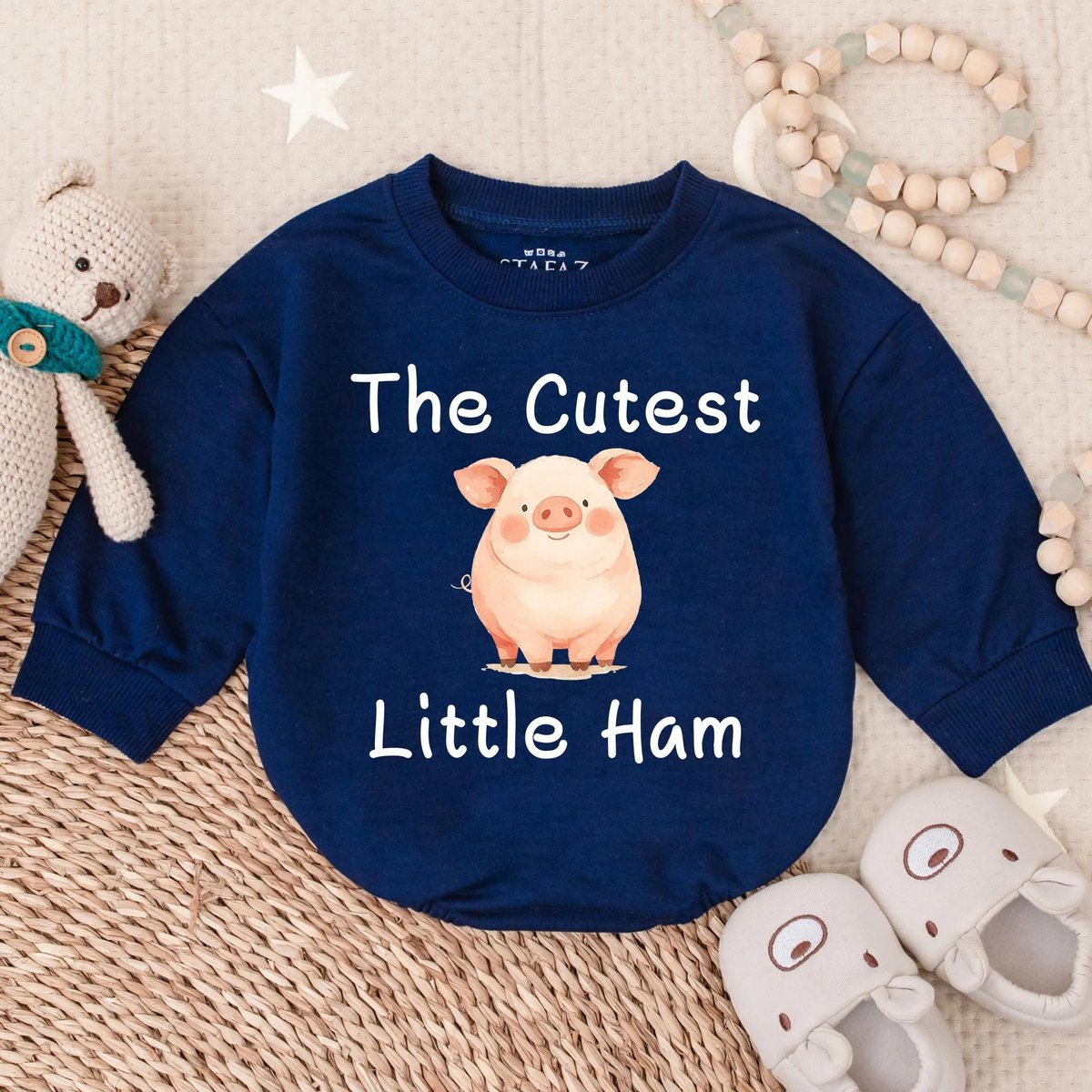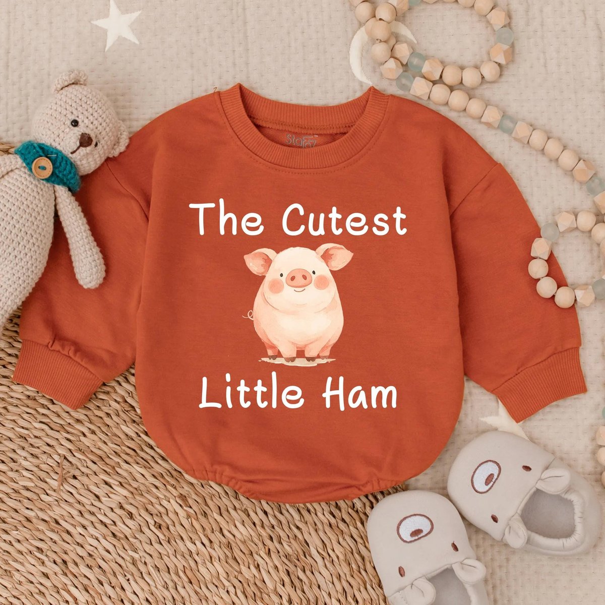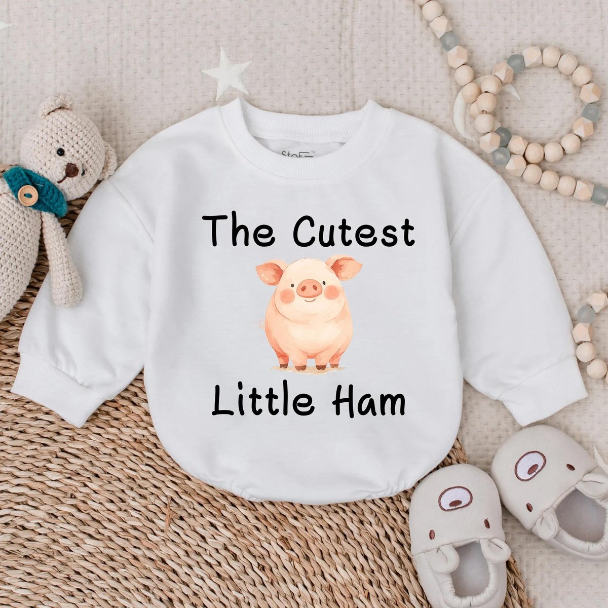 Cutest Little Ham Romper Sweatshirt Baby Pig Outfit Funny Farm Baby Clothes Toddler Animal Shirt Cut