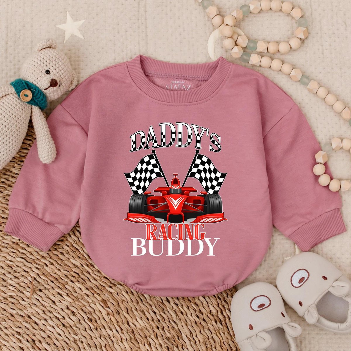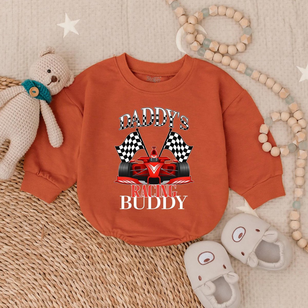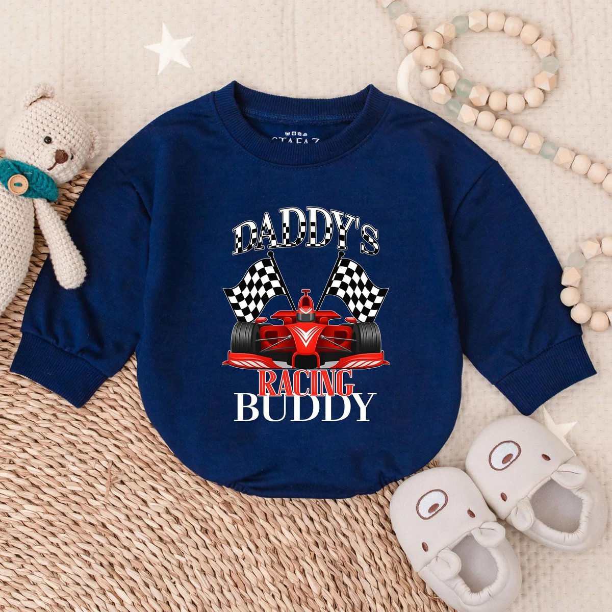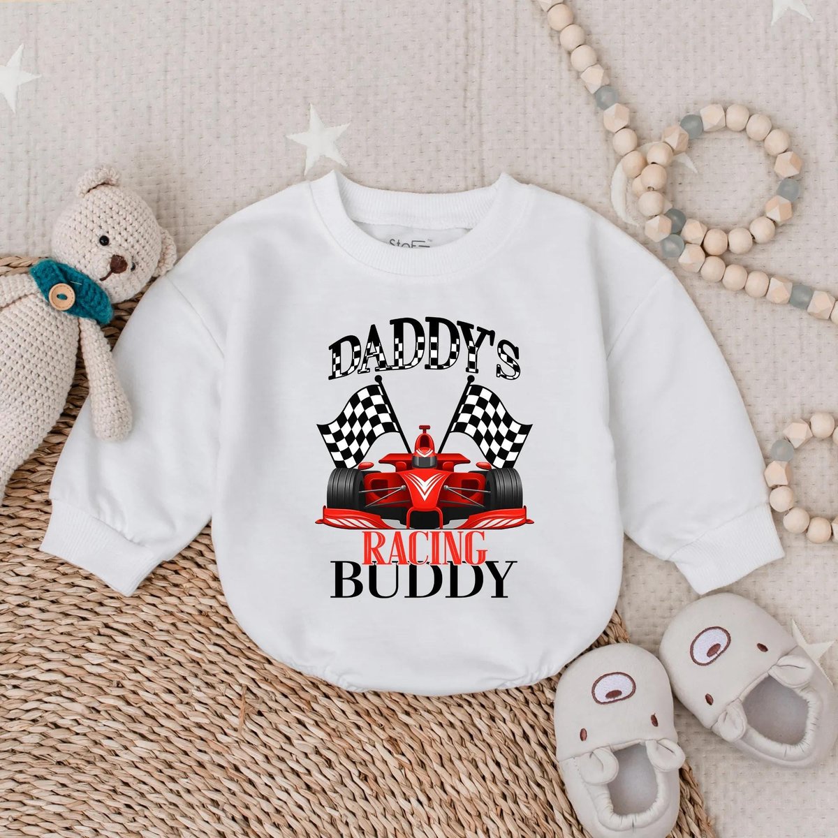 Daddy’s Racing Buddy Baby Romper Cute Race Car Infant Outfit Baby Boy Driver Sweatshirt Toddler Mot