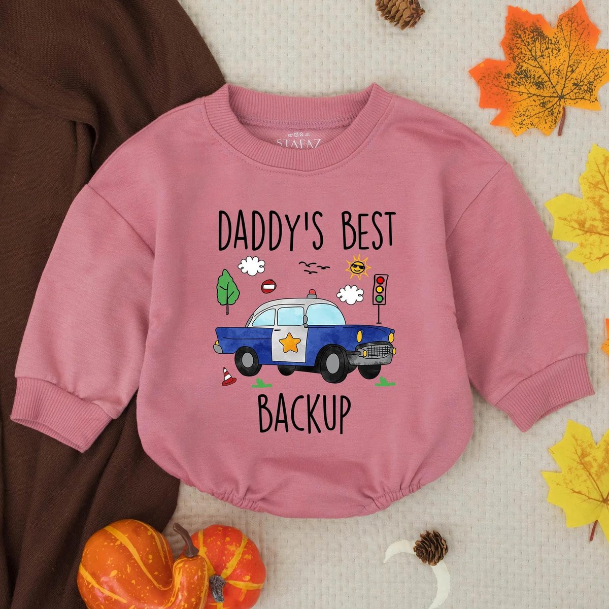 Daddys Best Backup Baby Bubble Romper Funny Baby Boy Outfit New Dad Gift Baby Shower Gift Baby Comin