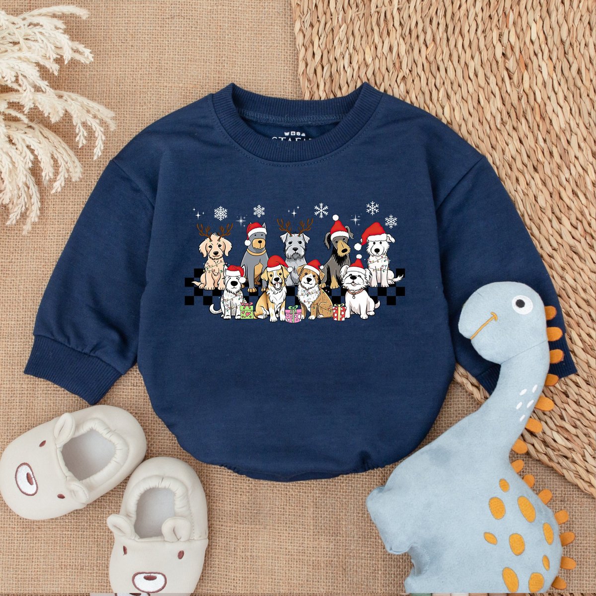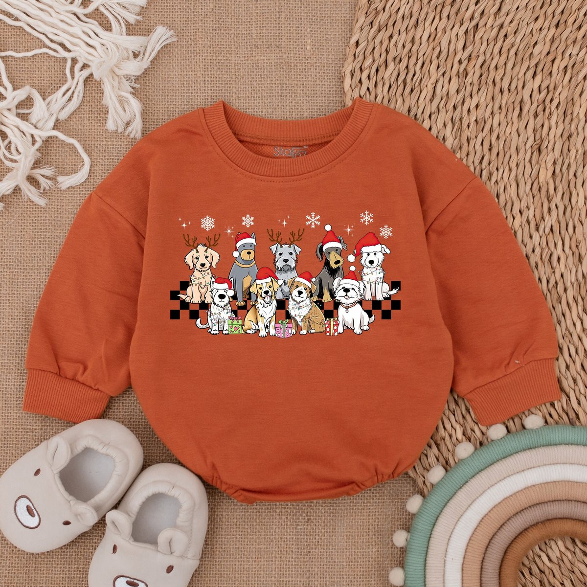 Dogs Xmas Baby Romper My First Christmas Christmas Bodysuit Baby Christmas OutfitOversized Long Slee