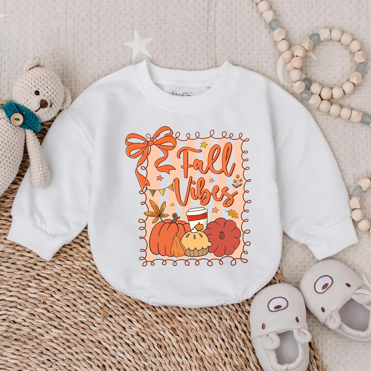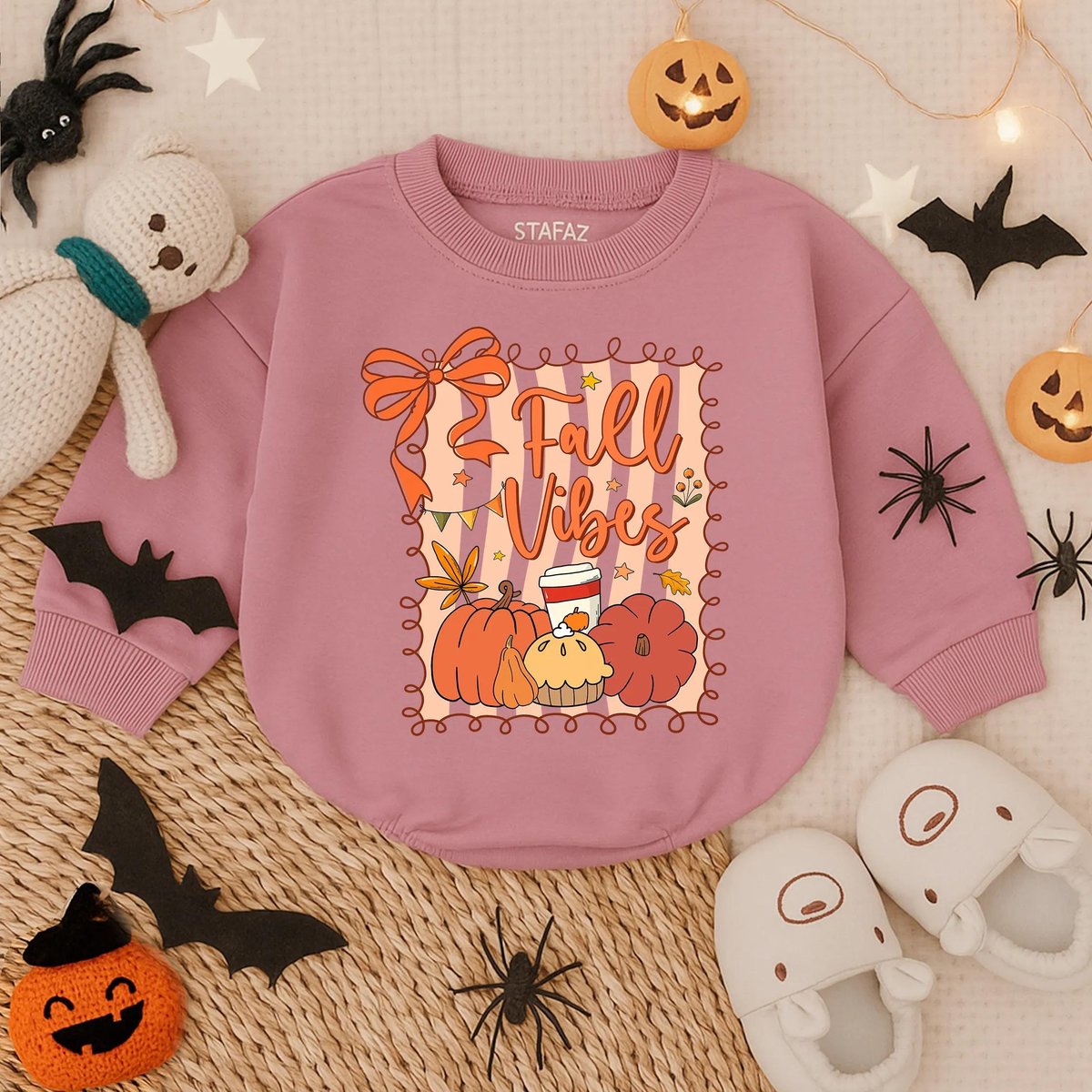Fall Vibes Baby Bubble Romper Autumn Pumpkin Long Sleeve Outfit Baby Girl Fall Clothes Thanksgiving