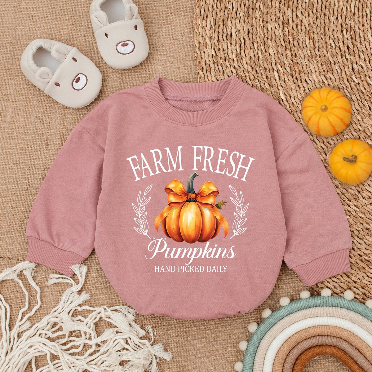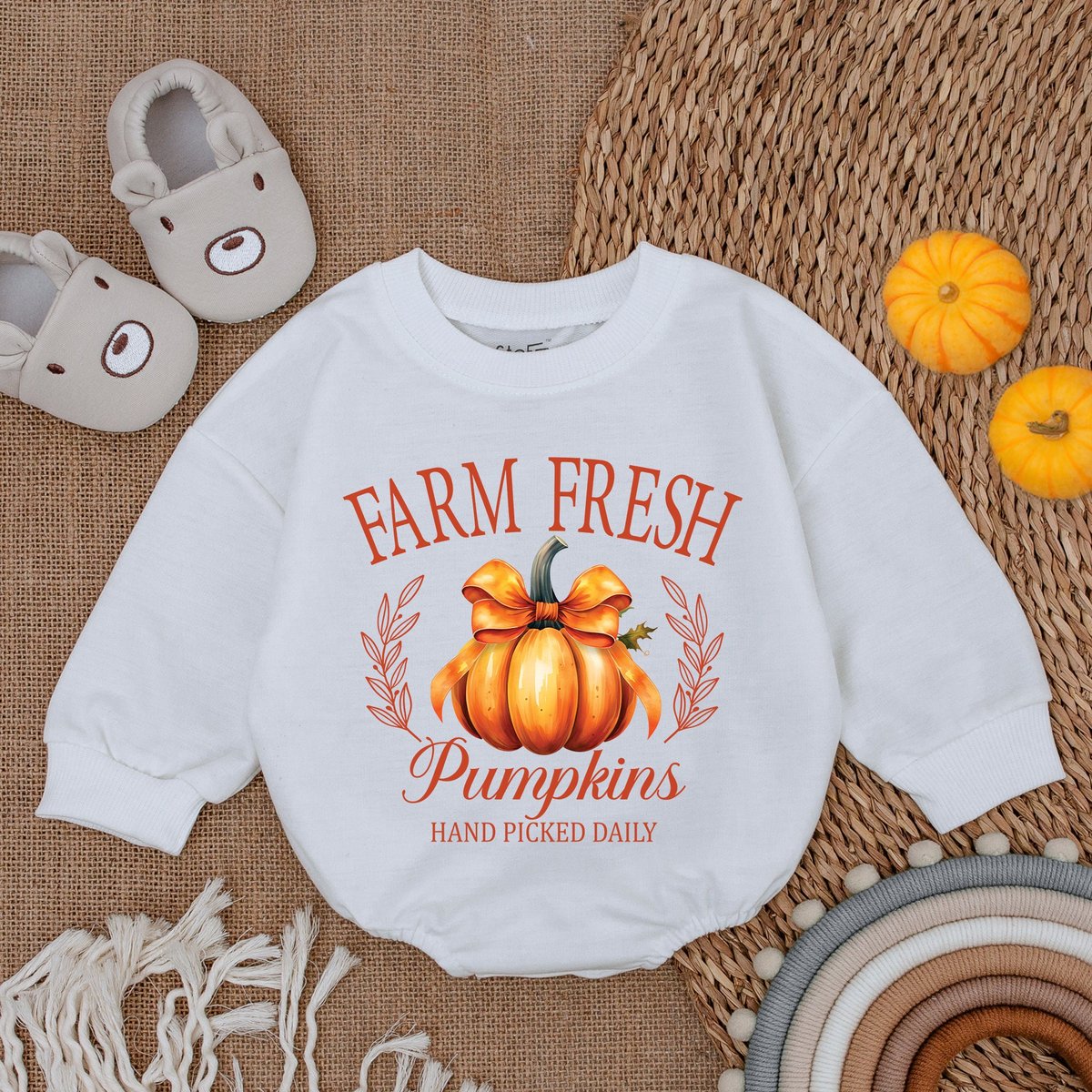 Farm Fresh Pumpkins Baby Romper First Thanksgiving Outfit Thanksgiving Gender Reveal Clothes Fall
