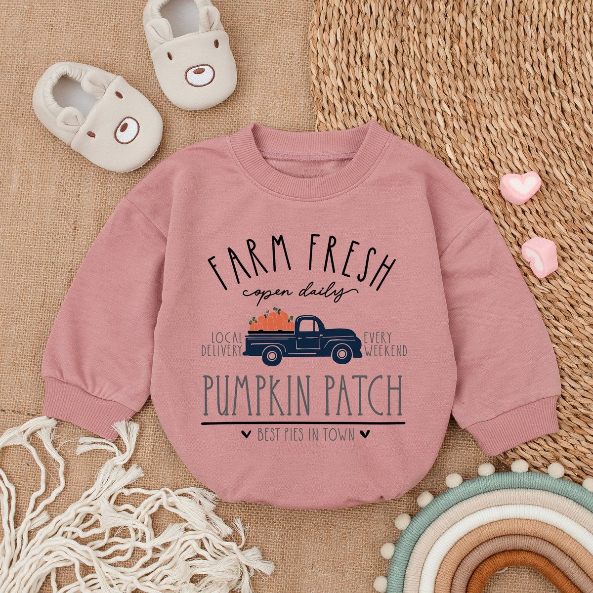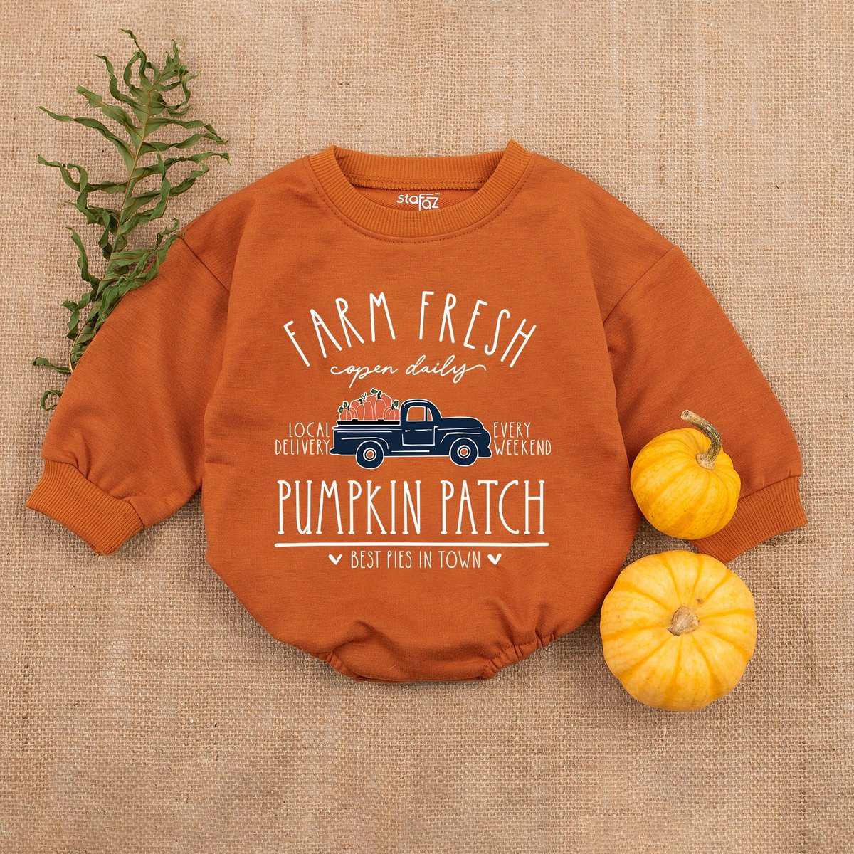 Farm Fresh Pumpkins Baby Romper Thanksgiving Infant Outfit Baby Girl Clothes Fall Baby Shower Gift