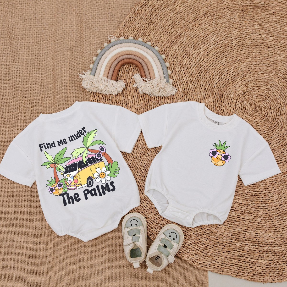 Find me under the palms Bubble RomperBaby Shower Gift Romper for Baby Girl Baby Girl Outfit Gift For