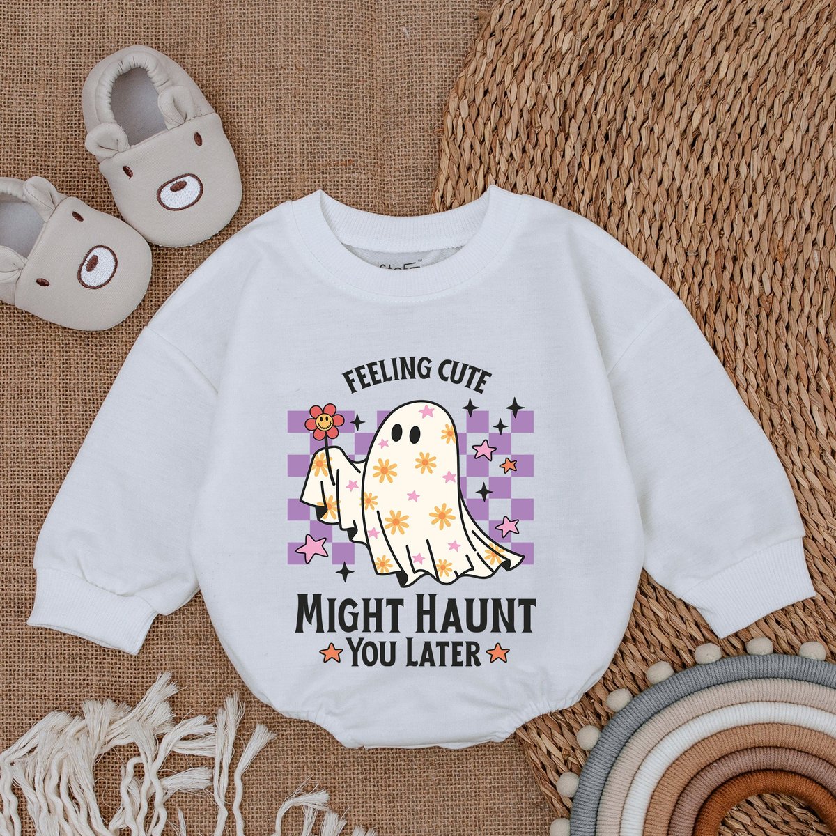 Feeling Cute Baby Ghost Bodysuit My First Halloween Baby Clothes Bubble Baby Romper Boy Clothes Ha