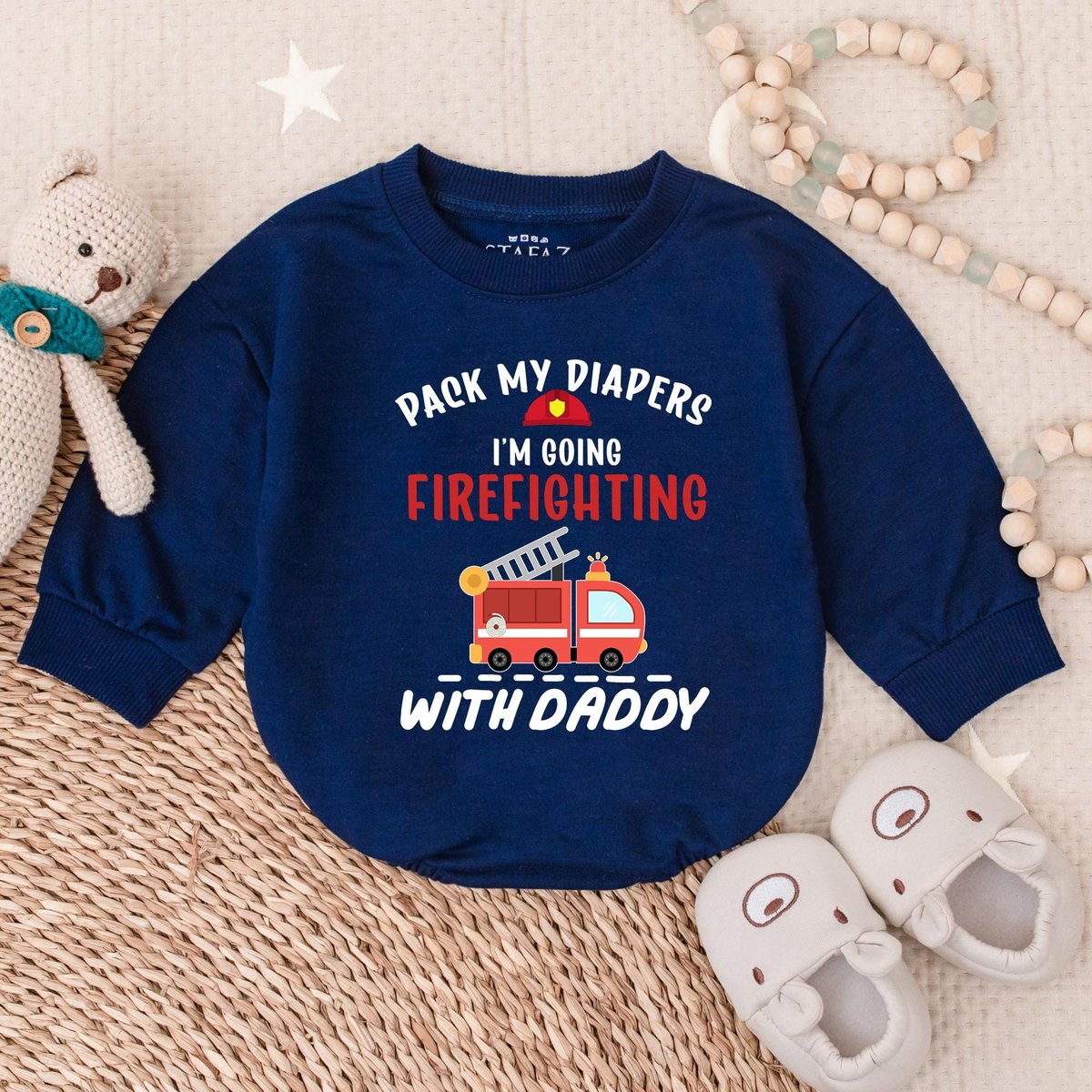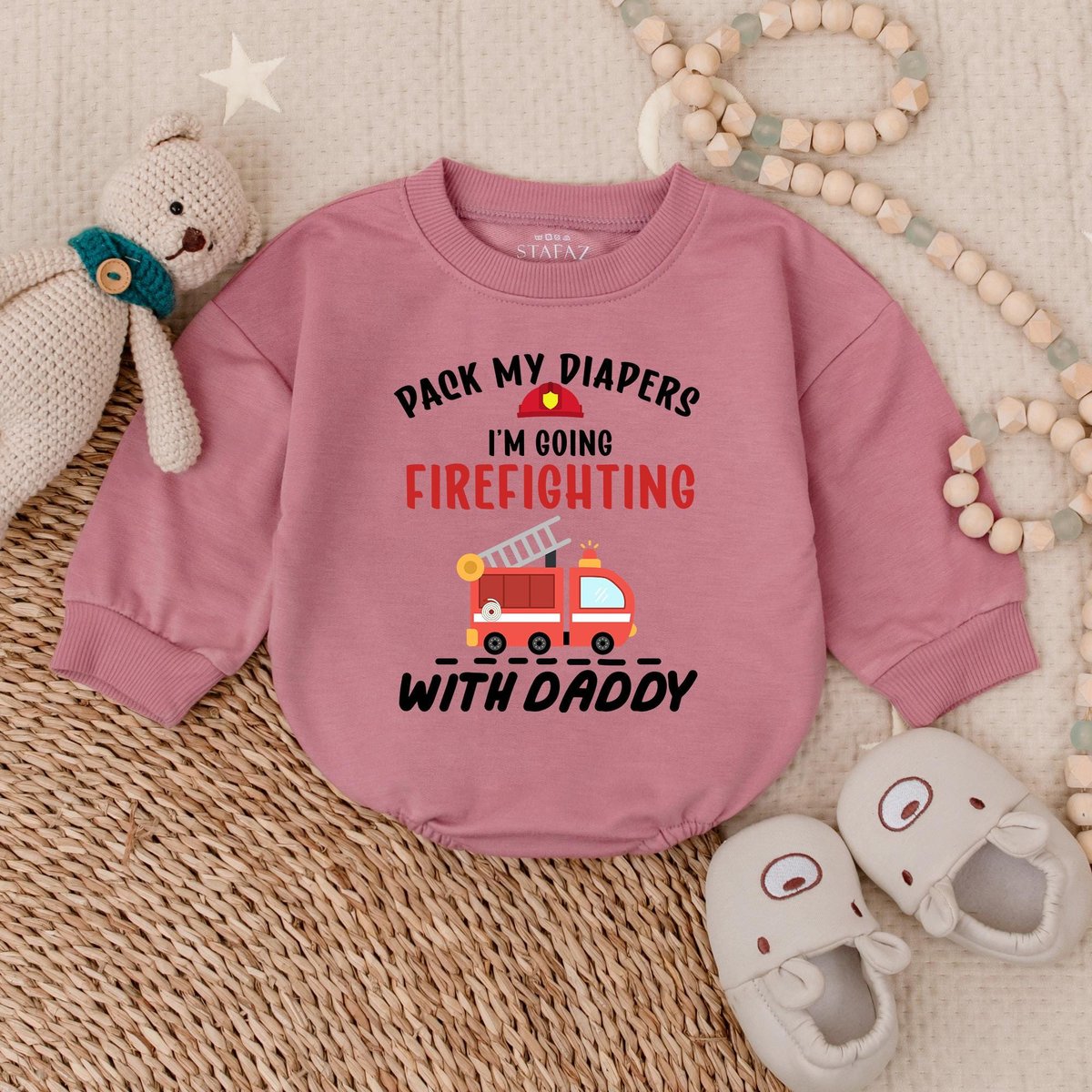 Firefighter Baby Bubble Romper Fire Department RomperPack My Diapers I’m Going Firefighting With Da