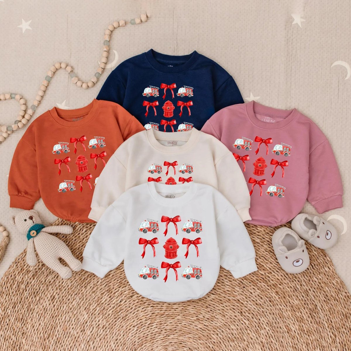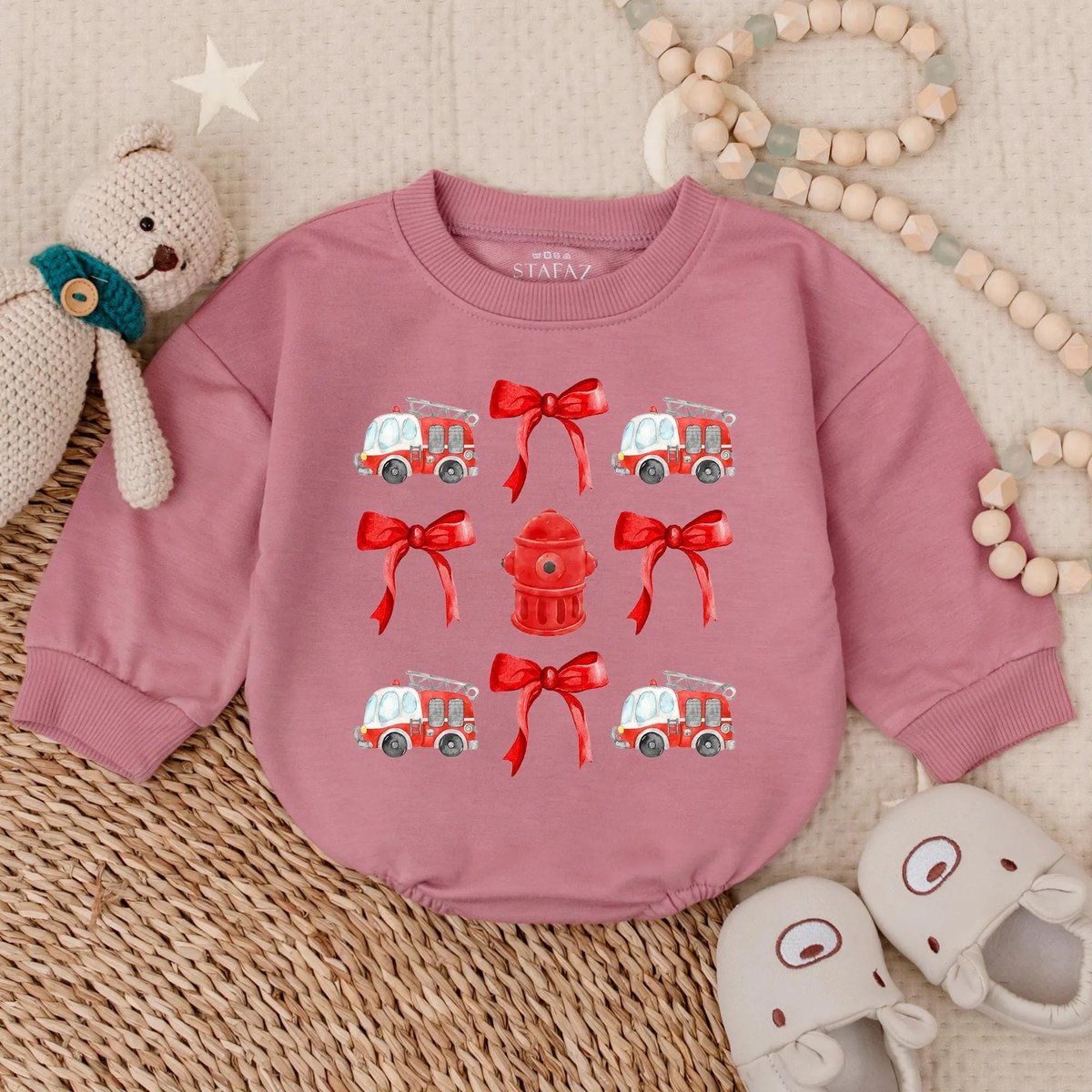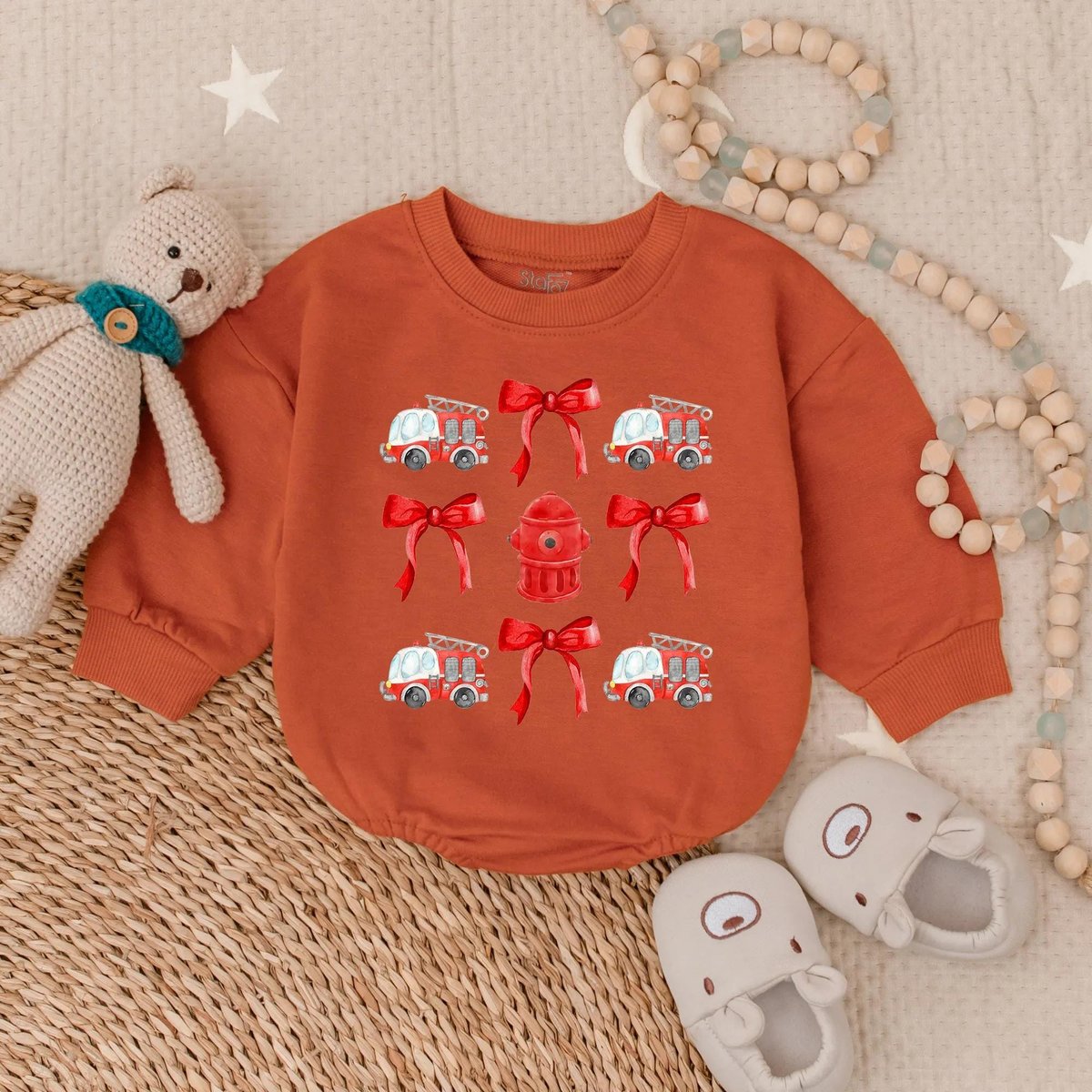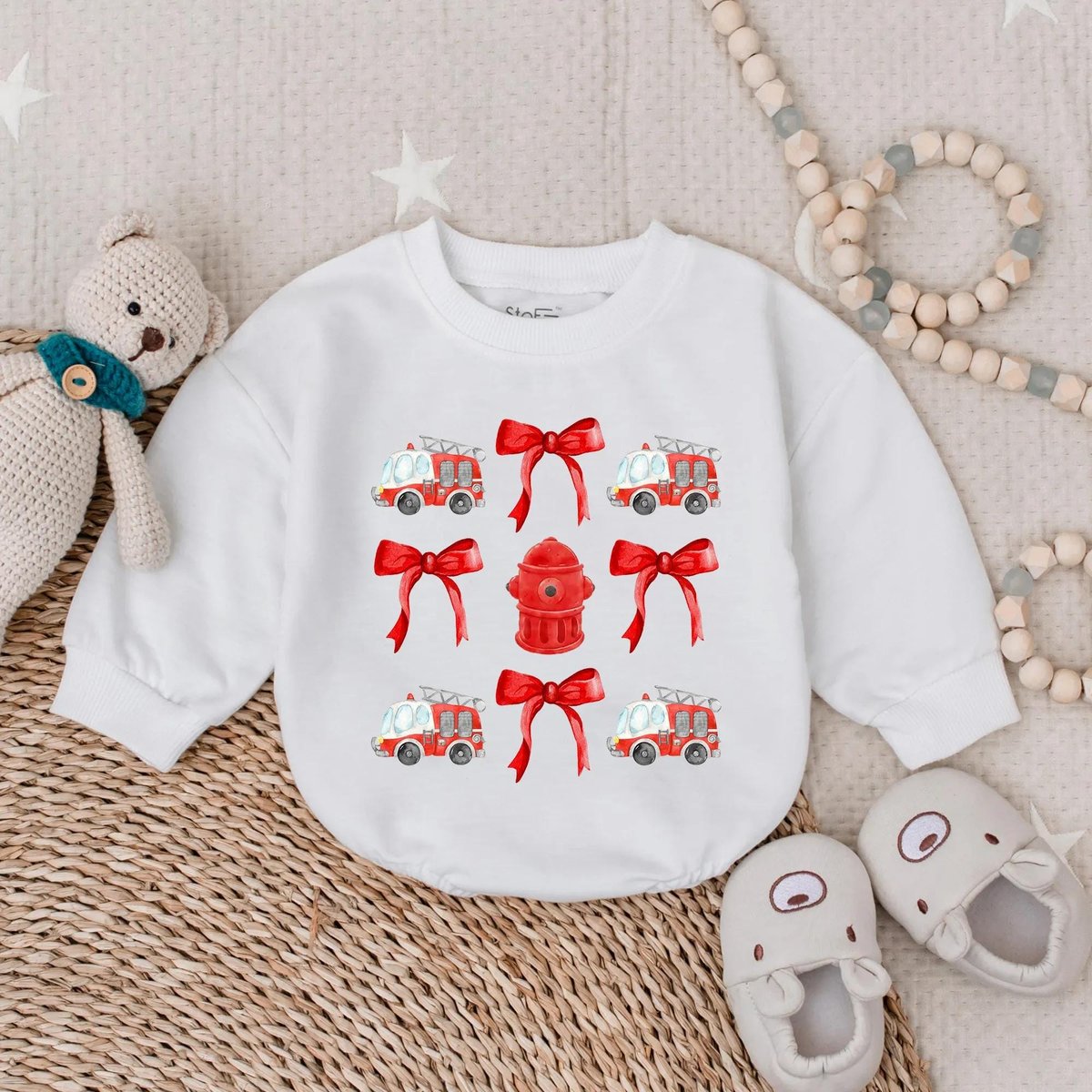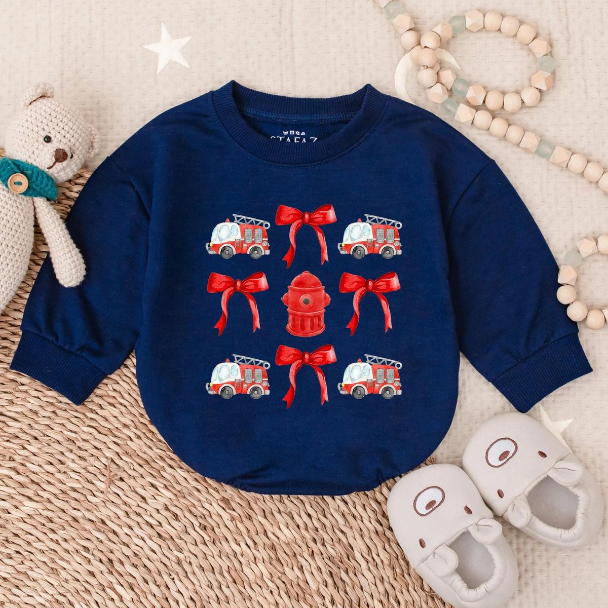 Firetruck Baby Romper Sweatshirt Cute Firefighter Baby Outfit Trendy Baby Boy Girl Bodysuit Hydrant