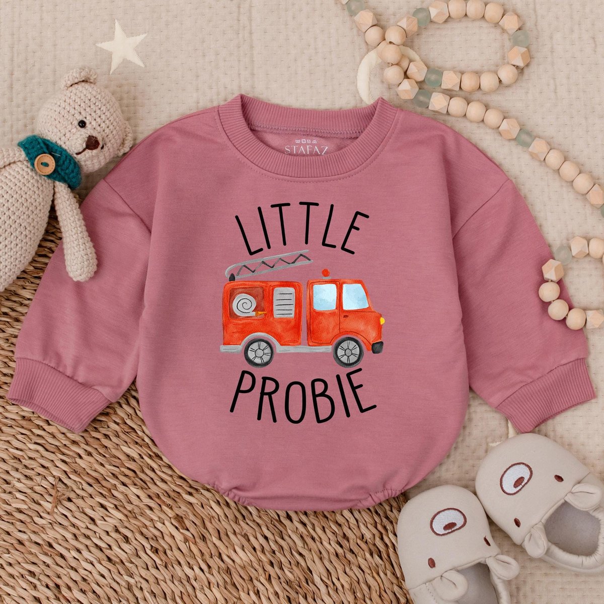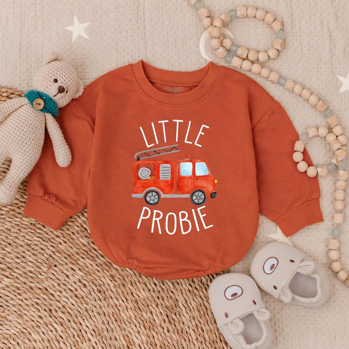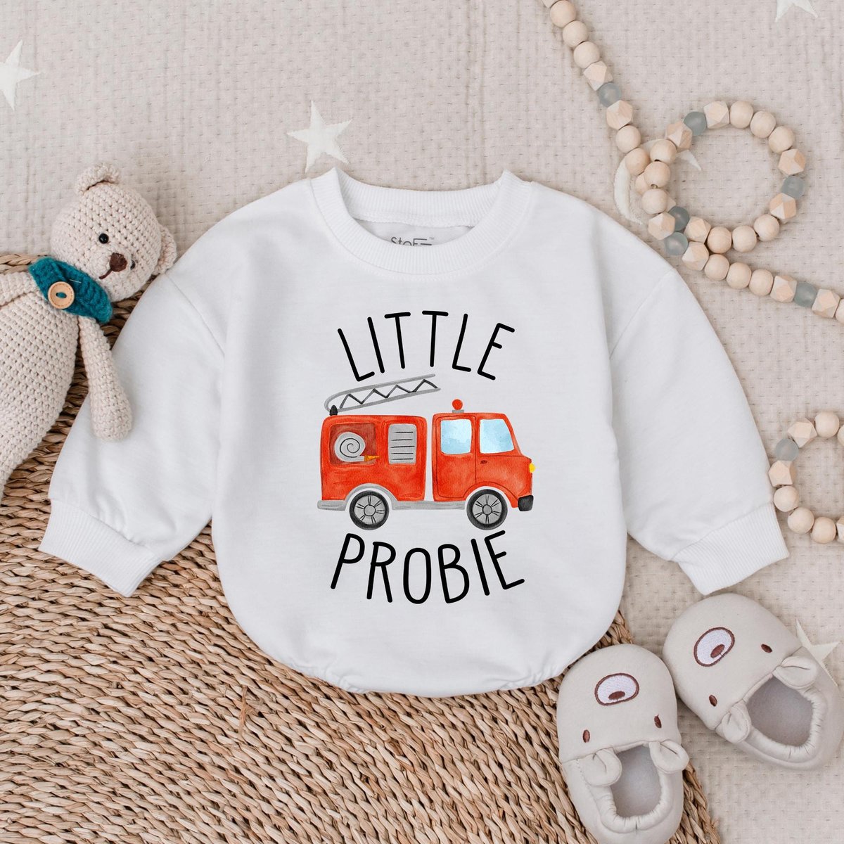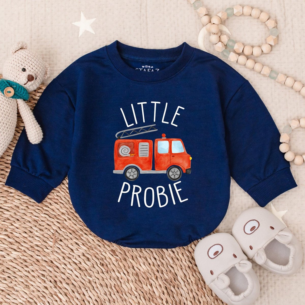 Firetruck T shirt Bubble Romper Little Probie Baby Bodysuit Firefighter Baby Outfit Baby Shower Gift