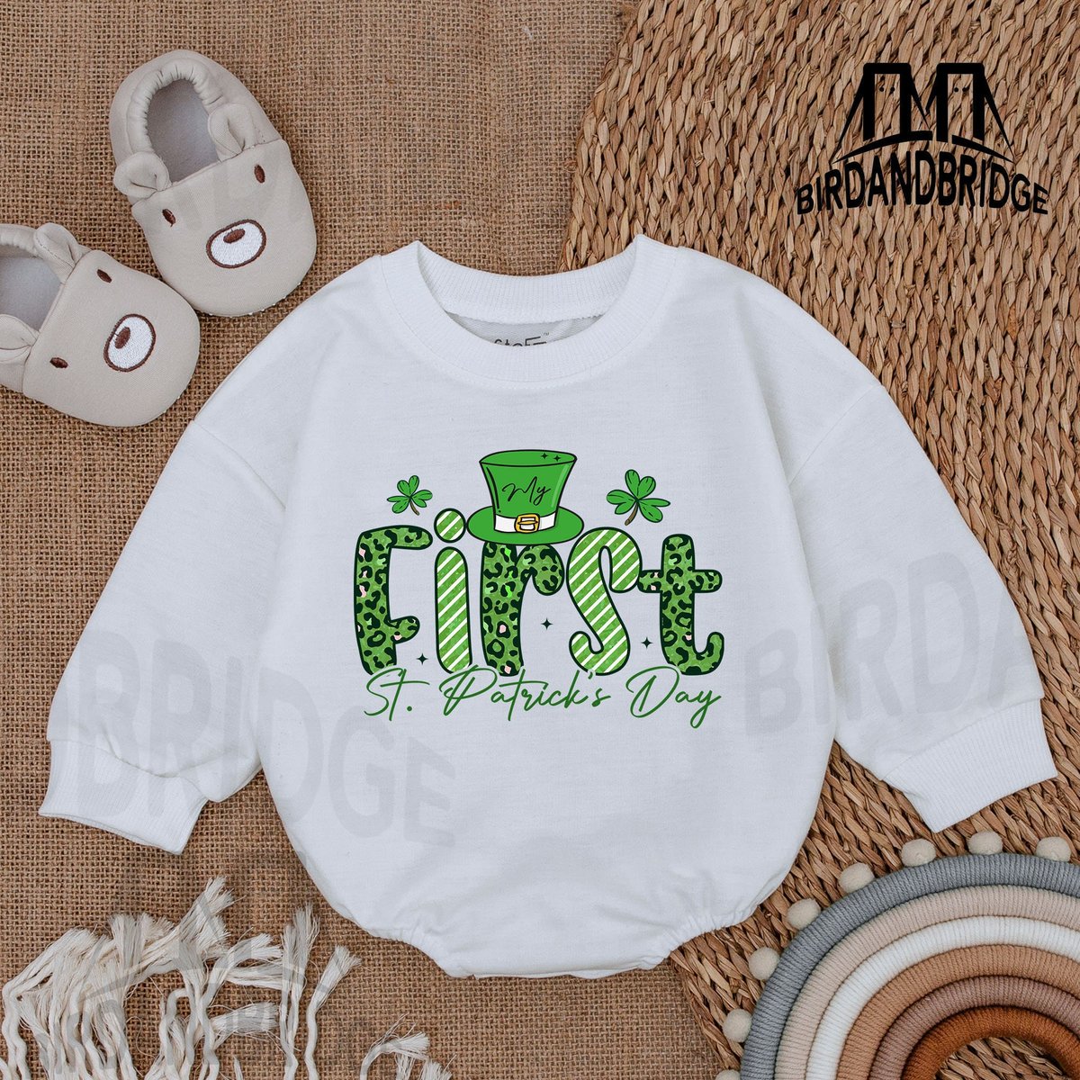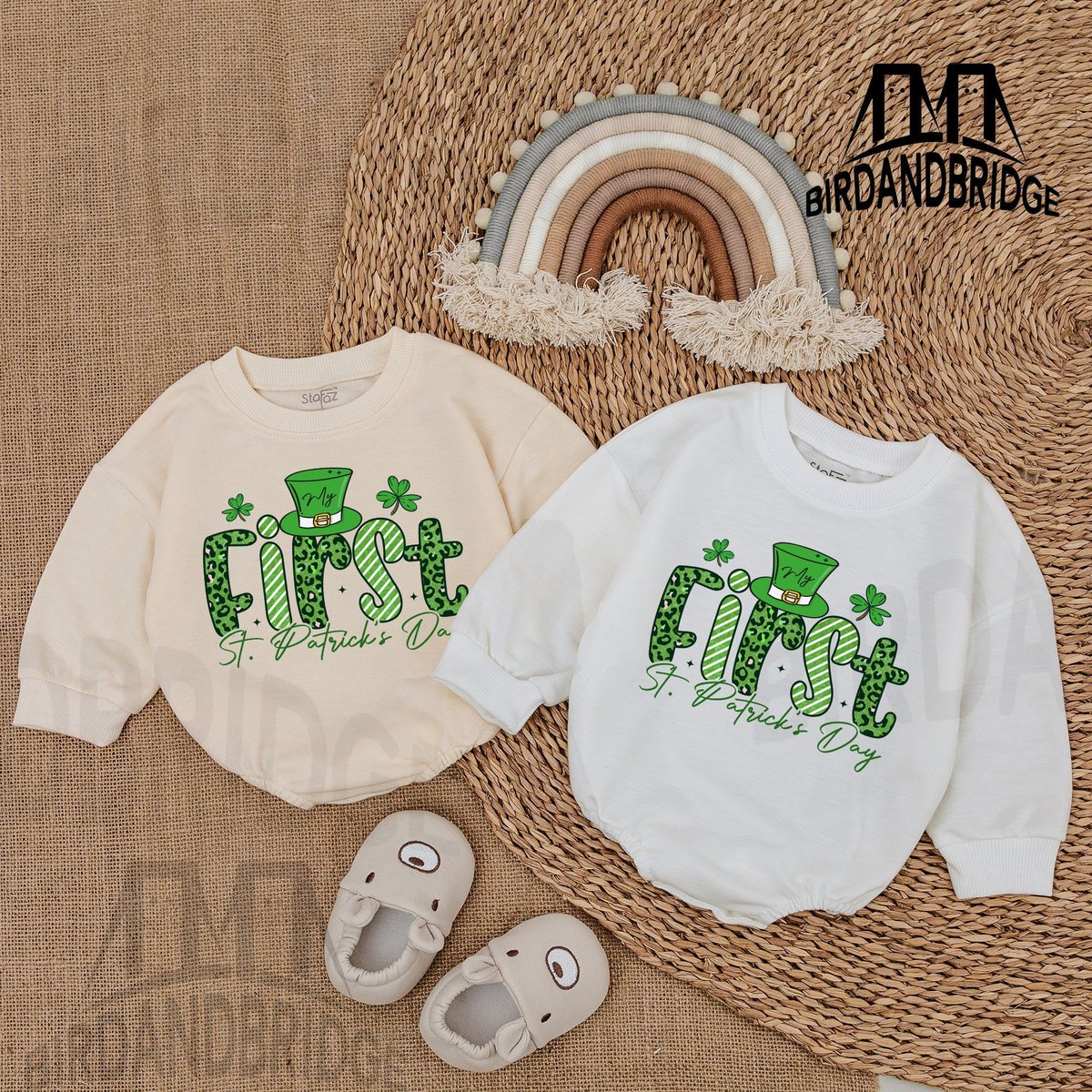 First Patrick Baby Romper St Patrick’s Day Bodysuit Natural Irish Baby Outfit Light Mauve