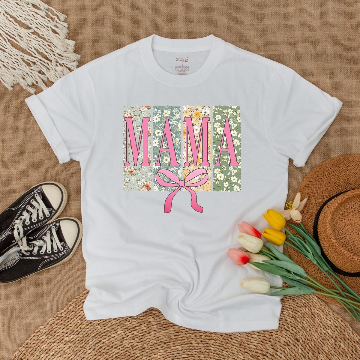 Floral Mama Bow T shirt Gift for Mom Mama Varsity Outfit Mothers Day Gift Mom Shirt Retro Mama Shirt