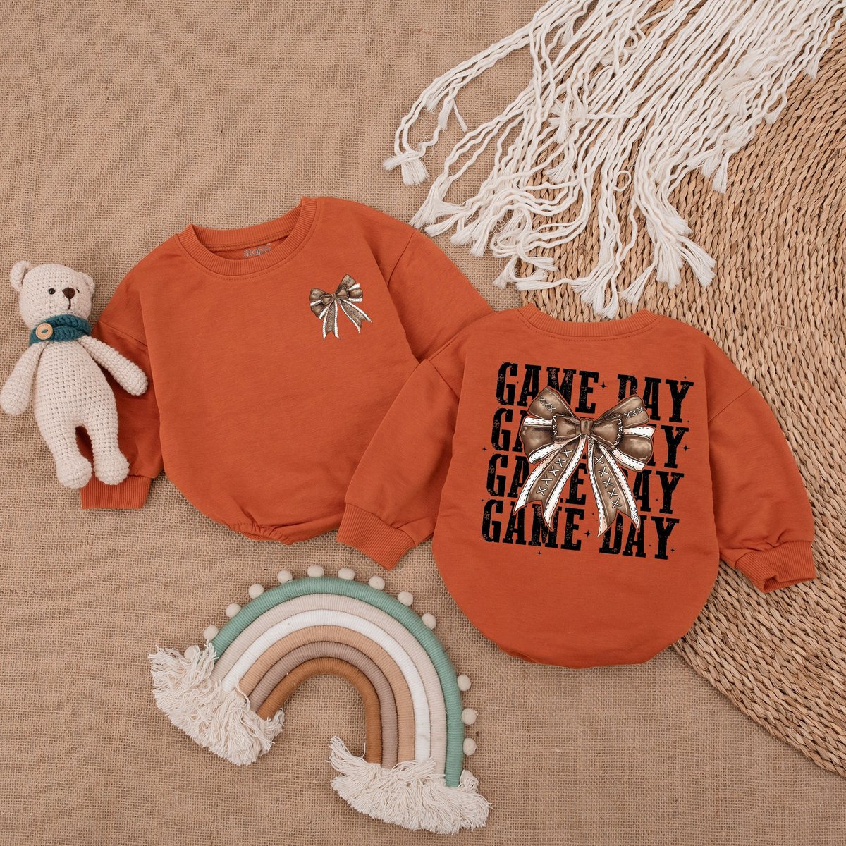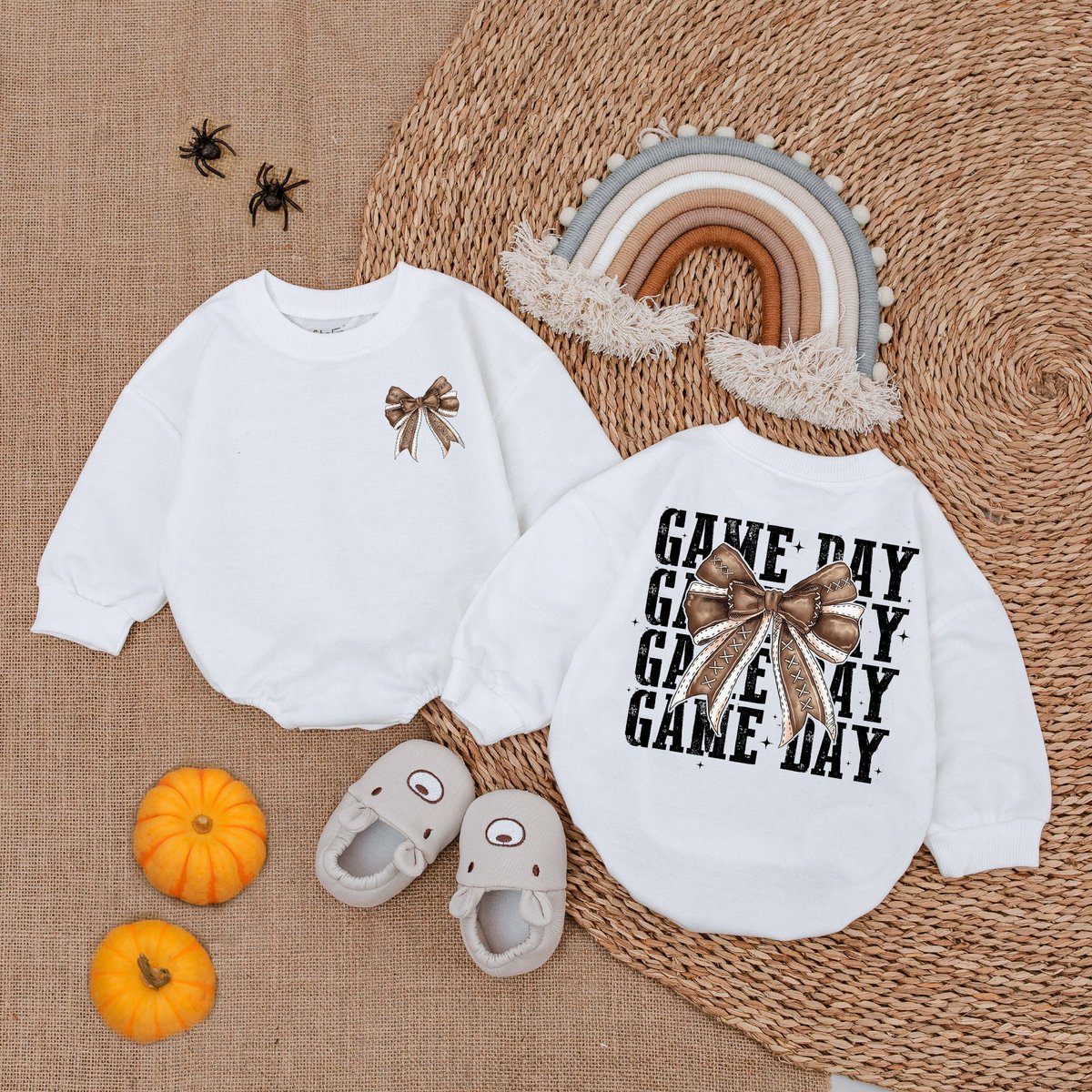 Football Season Baby Romper Football Bow Kid Jumpsuit for kid Football Baby Shower Bow Gameday kid S