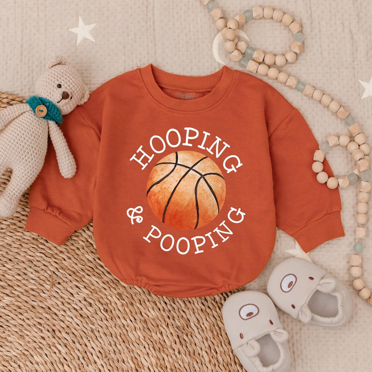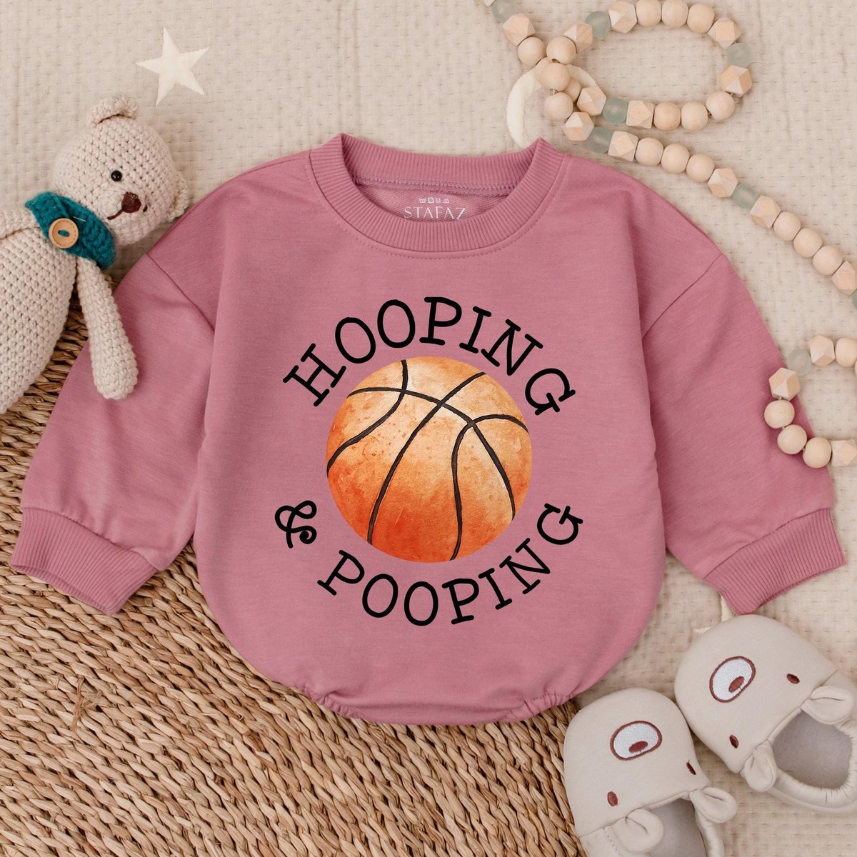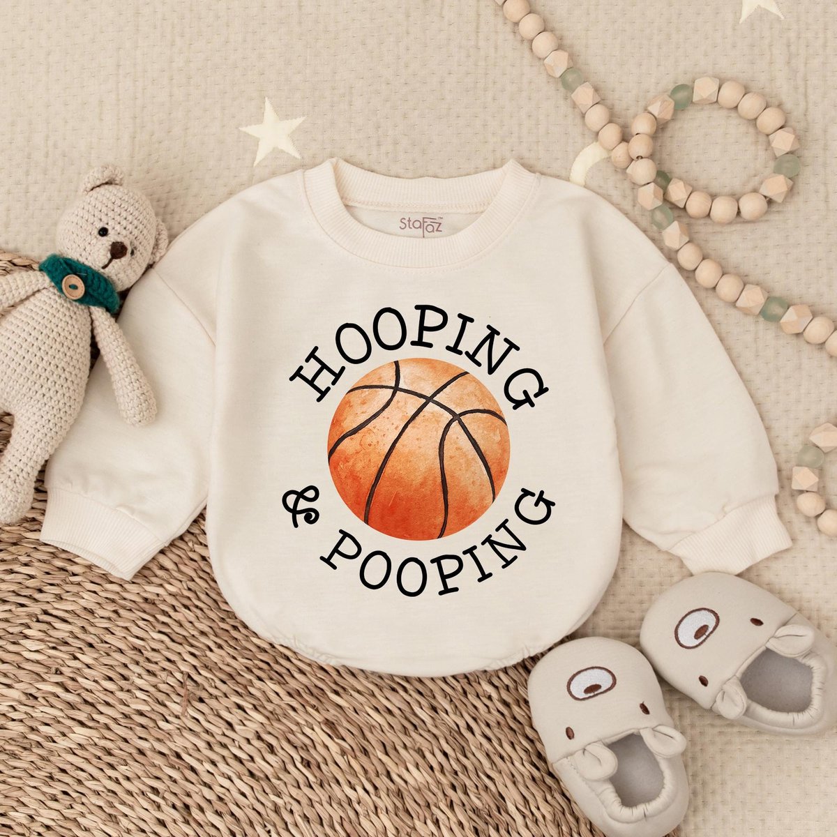 Funny Basketball Bubble Romper Hooping and Pooping Baby Bodysuit Cotton Baby Shower Gift for Sports