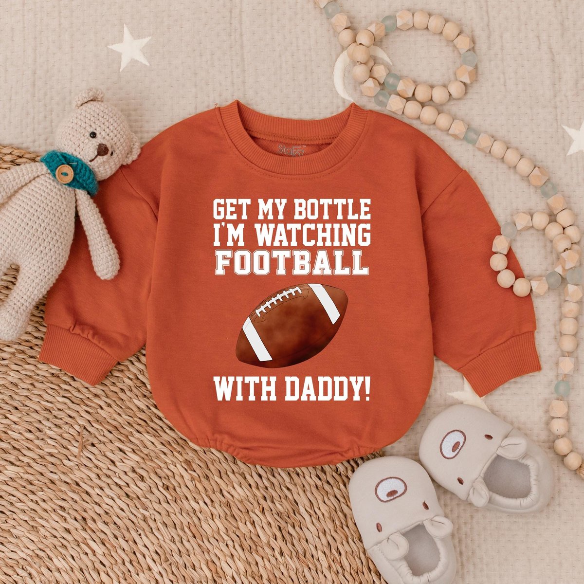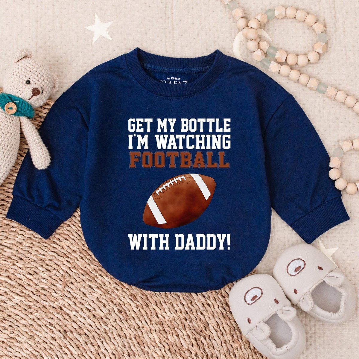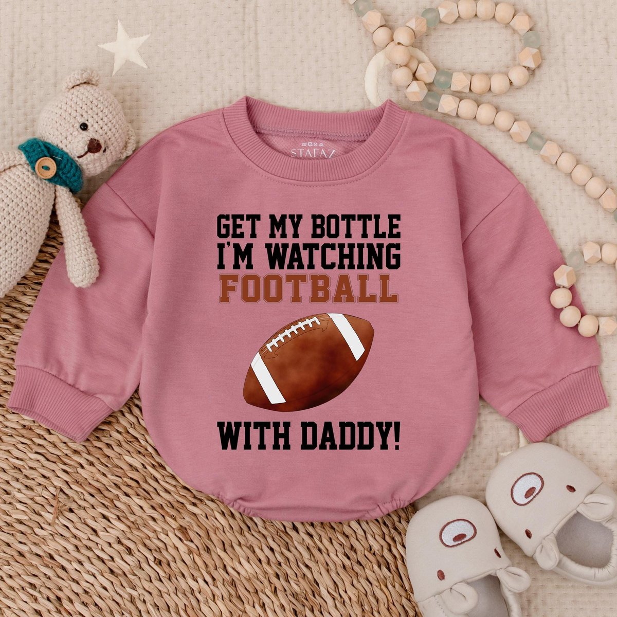 Get My Bottle I’m Watching Football with Daddy Bubble Romper Football Baby Bodysuit Game Day Outfit