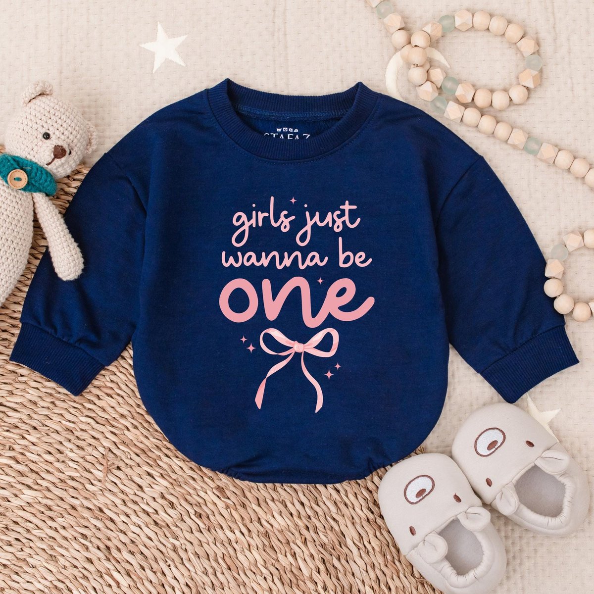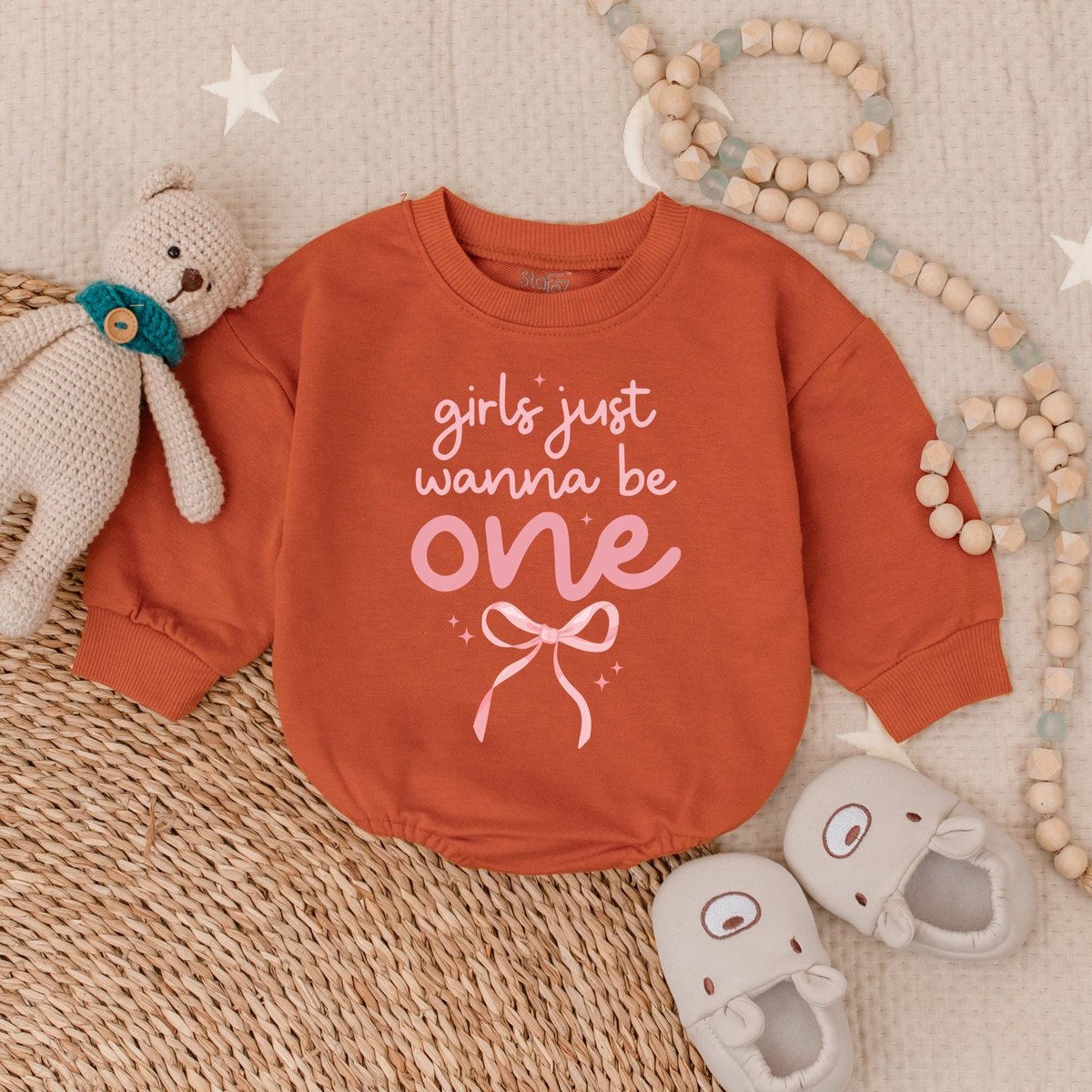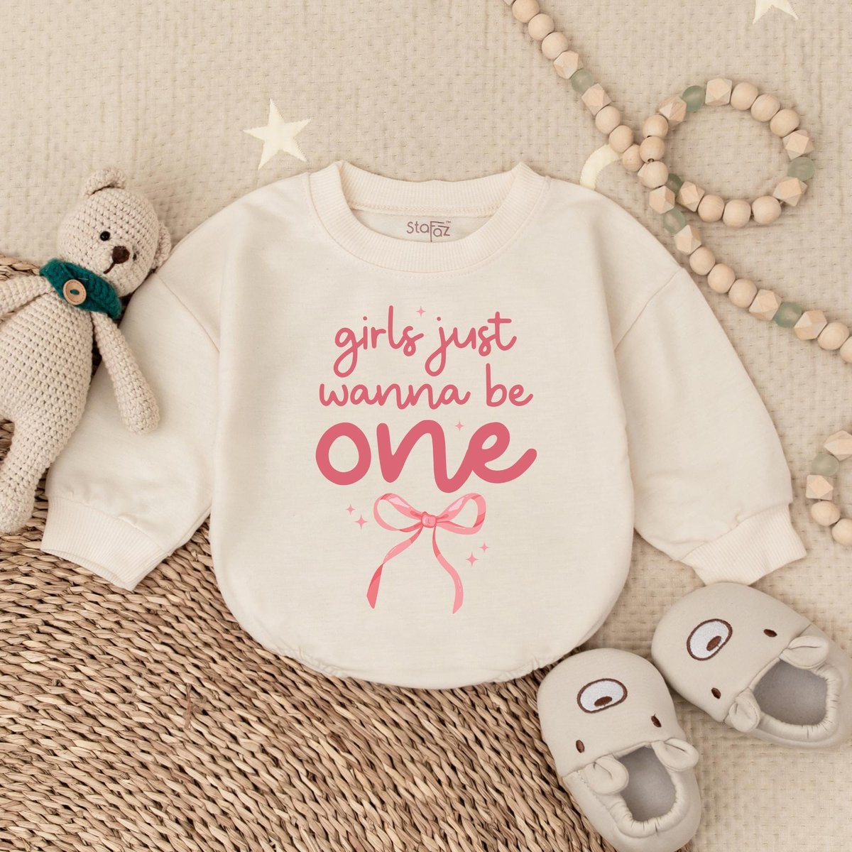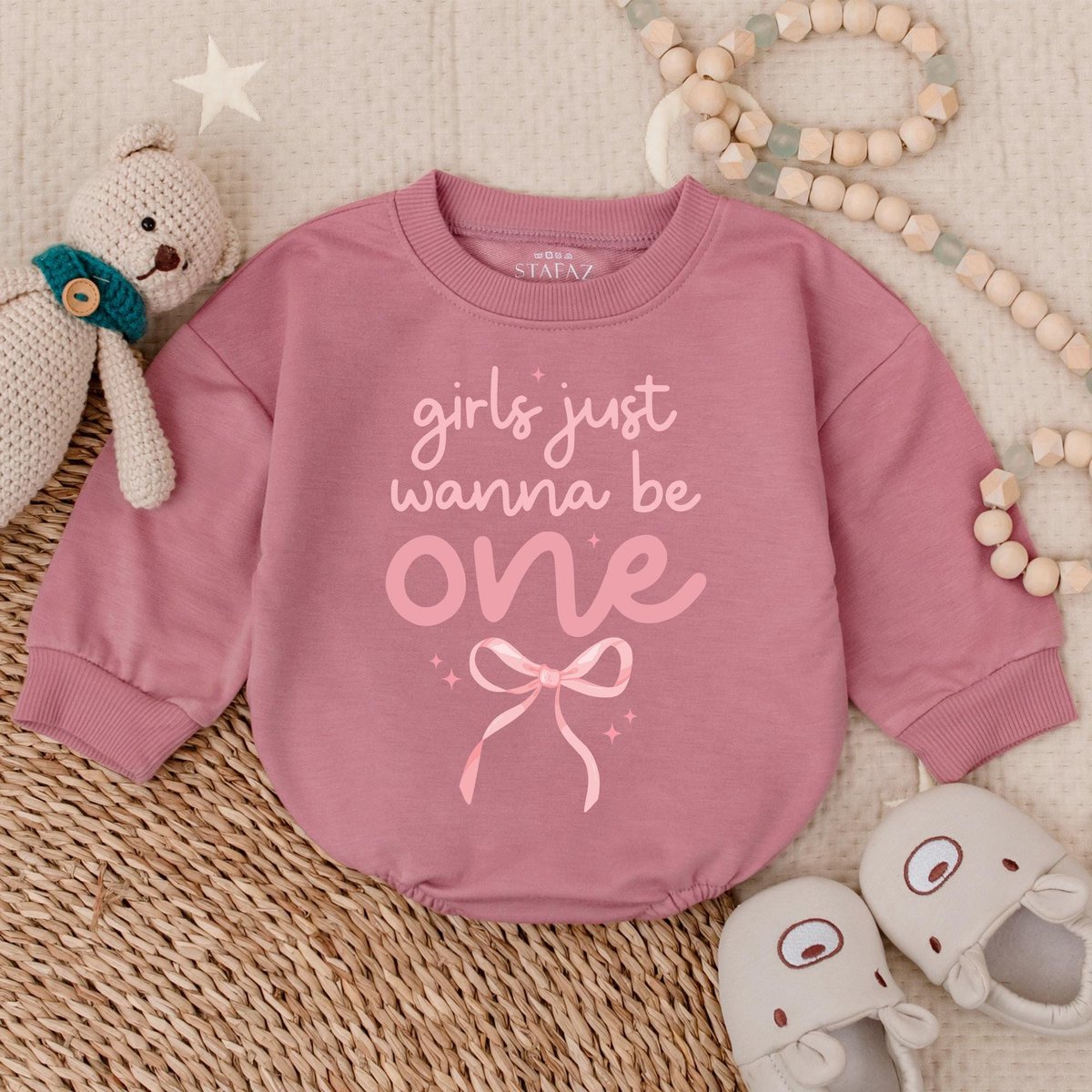 Girls Just Wanna Be One Bubble Romper Bow First Birthday Shirt 1st Birthday Party Pink bow One birth