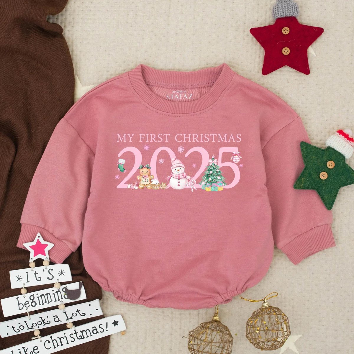 Girly Pink My First Christmas Bubble Romper Christmas Clothes Santa Christmas Tree Sweatshirt Newbor