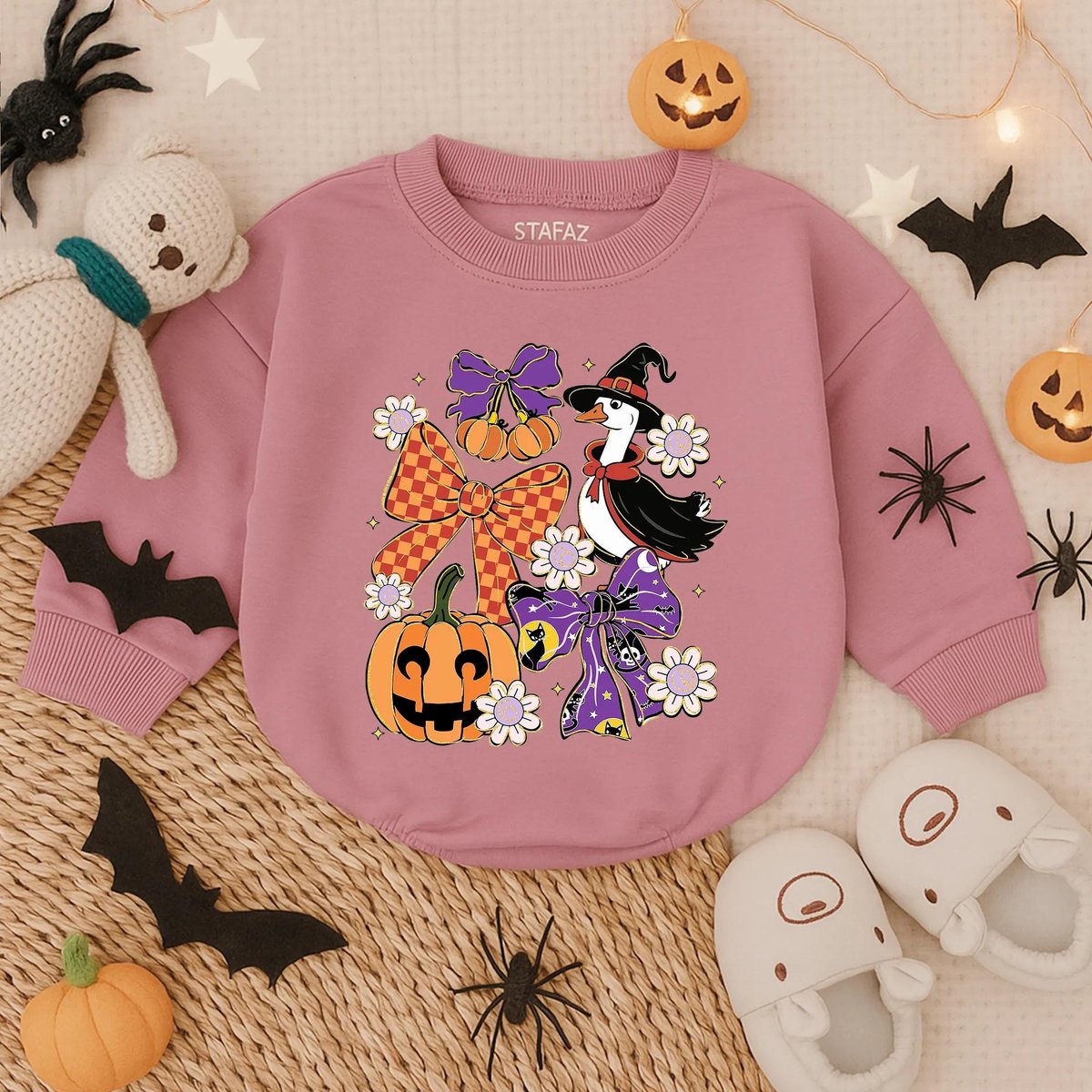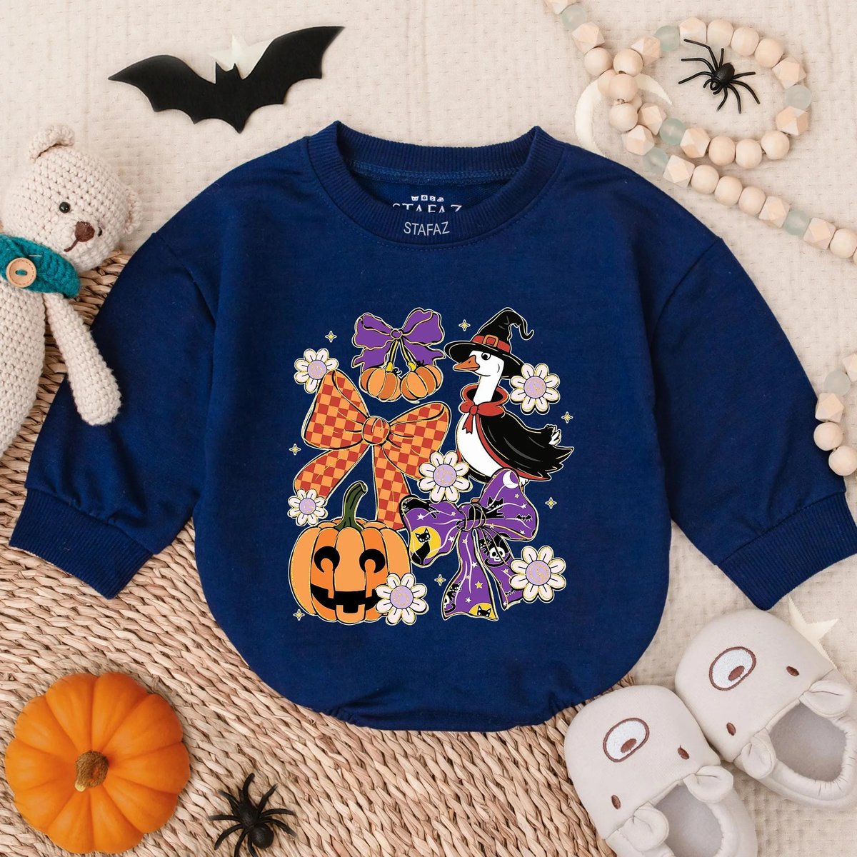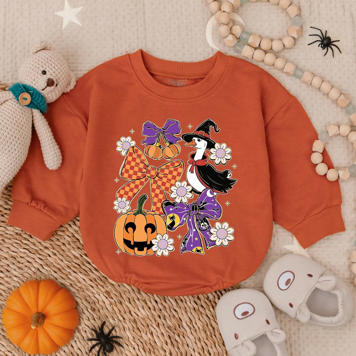 Glitter Spooky Goose Halloween Bubble Romper Cute Baby Girl Fall Outfit Sparkle Pumpkin Costume My F